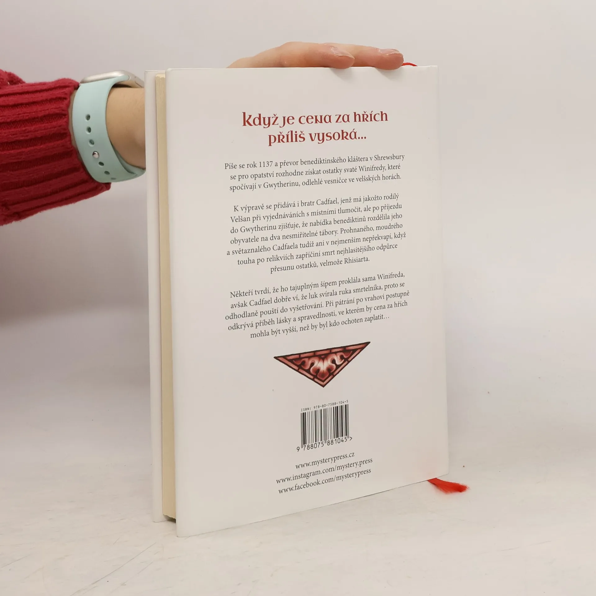 KDYŽ JE CENA ZA HŘÍCH PŘÍLIŠ VYSOKÁ… Píše se rok 1137 a převor benediktinského kláštera v Shrewsbury se pro opatství rozhodne získat ostatky svaté Winifredy, které spočívají v Gwytherinu, odlehlé vesničce ve velšských horách. K výpravě se přidává i bratr Cadfael, jenž má jakožto rodilý Velšan při vyjednáváních s místními tlumočit, ale po příjezdu do Gwytherinu zjišťuje, že nabídka benediktinů rozdělila jeho obyvatele na dva nesmiřitelné tábory. Prohnaného, moudrého a světaznalého Cadfaela tudíž ani v nejmenším nepřekvapí, když touha po relikviích zapříčiní smrt nejhlasitějšího odpůrce přesunu ostatků, velmože Rhisiarta. Někteří tvrdí, že ho tajuplným šípem proklála sama Winifreda, avšak Cadfael dobře ví, že luk svírala ruka smrtelníka, proto se odhodlaně pouští do vyšetřování. Při pátrání po vrahovi postupně odkrývá příběh lásky a spravedlnosti, ve kterém by cena za hřích mohla být vyšší, než by byl kdo ochoten zaplatit…