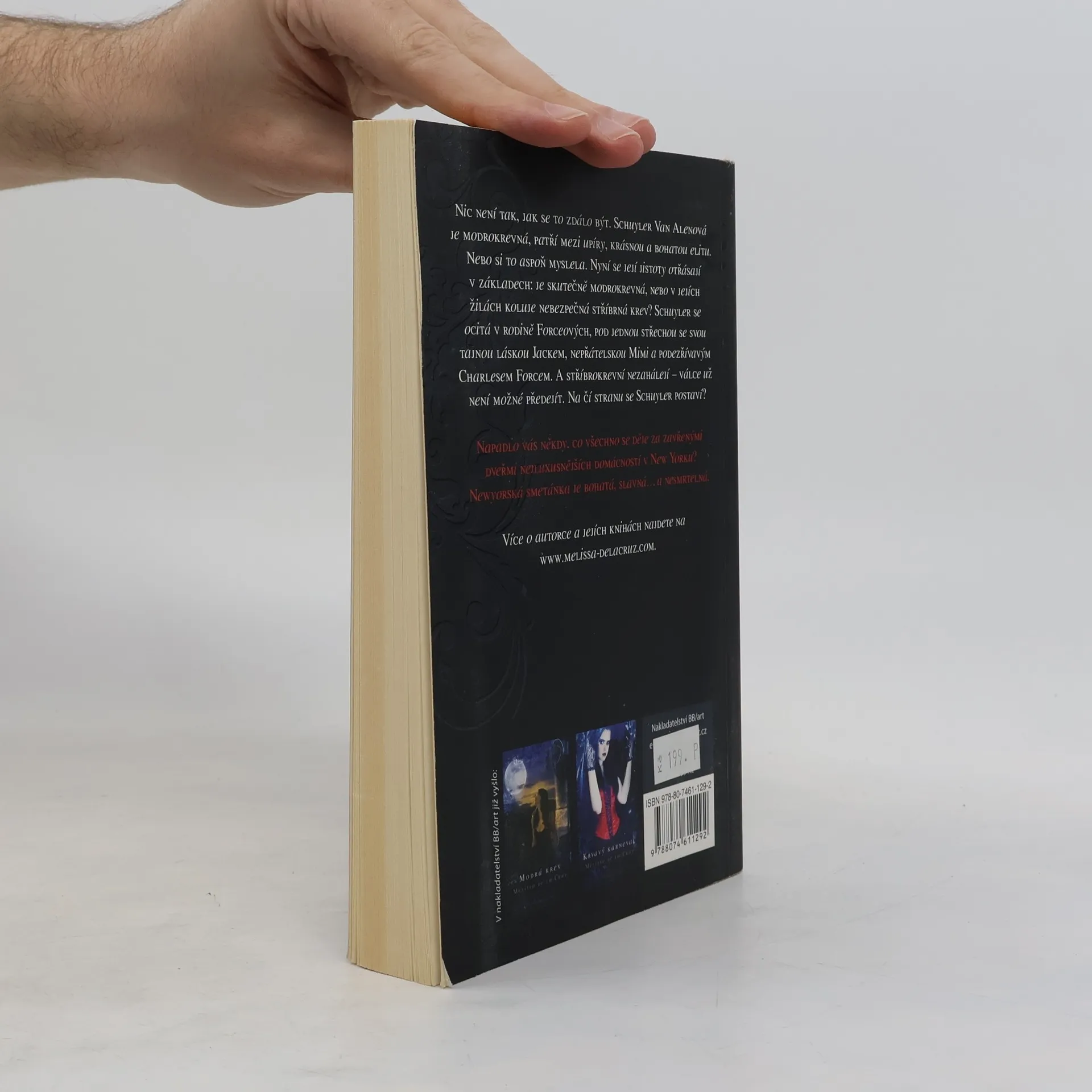Mladí, krásní, bohatí… nesmrtelní Nic není tak, jak se to zdálo být. Schuyler Van Alenová je modrokrevná, patří mezi upíry, krásnou a bohatou elitu. Nebo si to aspoň myslí. Její jistoty se otřásají v základech: je skutečně modrokrevná, nebo v jejích žilách koluje nebezpečná stříbrná krev? Schuyler se ocitá v rodině Forceových, pod stejnou střechou se svou tajnou láskou Jackem, nepřátelskou Mimi a podezřívavým Charlesem Forcem. A stříbrokrevní nezáhalejí – válce už není možné předejít. Na čí stranu se Schuyler postaví? -- 1. vydání. -- zdroj: www.legie.info --