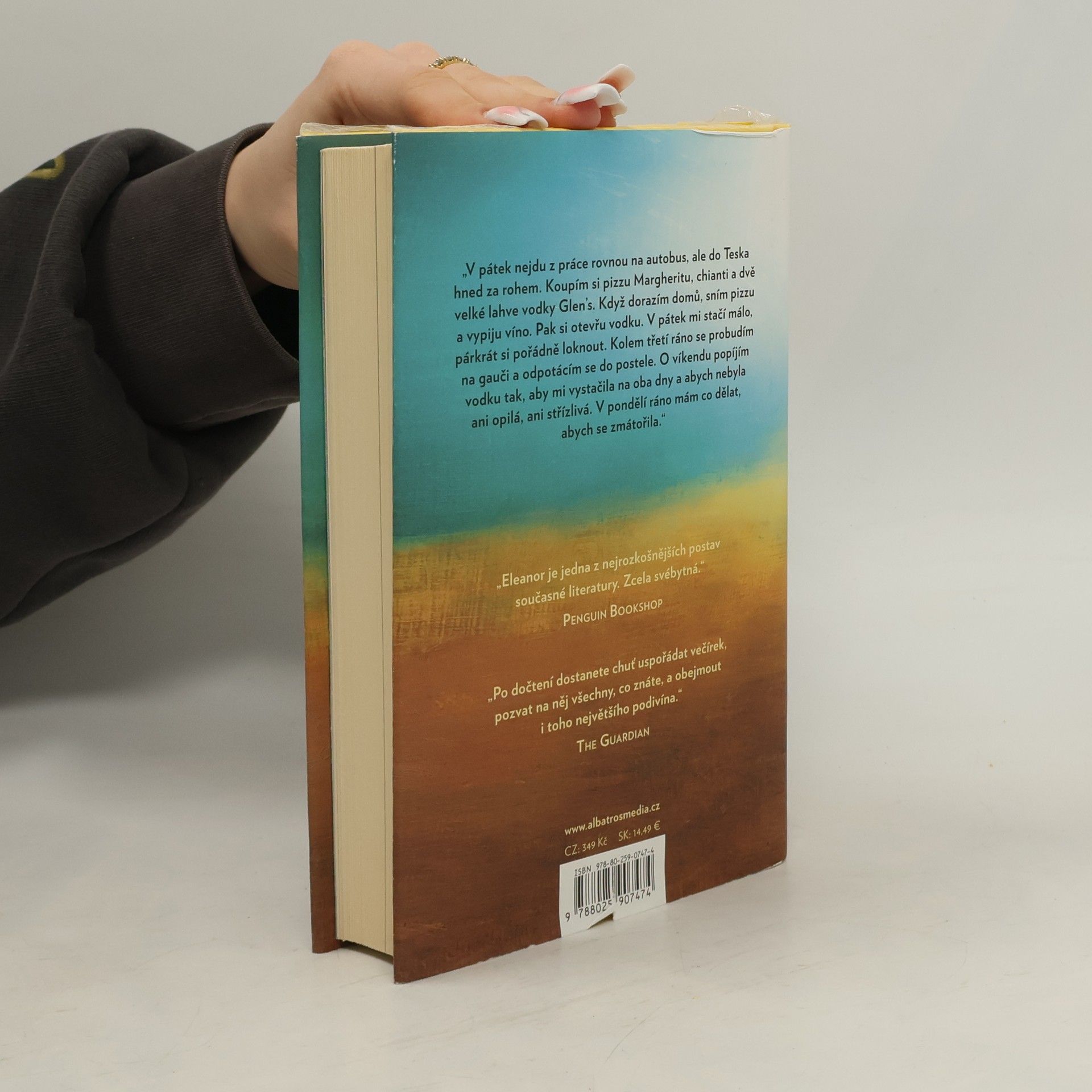 Nikdy není pozdě změnit svůj život. Svérázná, asociální Eleanor Oliphantová všechno zvládá sama. Vystudovala klasickou literaturu, ale pracuje jako účetní a je jí úplně jedno, co si o ní ostatní myslí. Po Glasgow chodí v kožené vestě a s taškou na kolečkách. Nemá žádné kamarády a víkendy tráví s lahví vodky, aby vytěsnila vzpomínky na otřesné dětství. Když ale naváže nečekané přátelství s kolegou Raymondem, začne jí docházet, že takhle to dál nejde a že musí vystoupit ze své ulity.