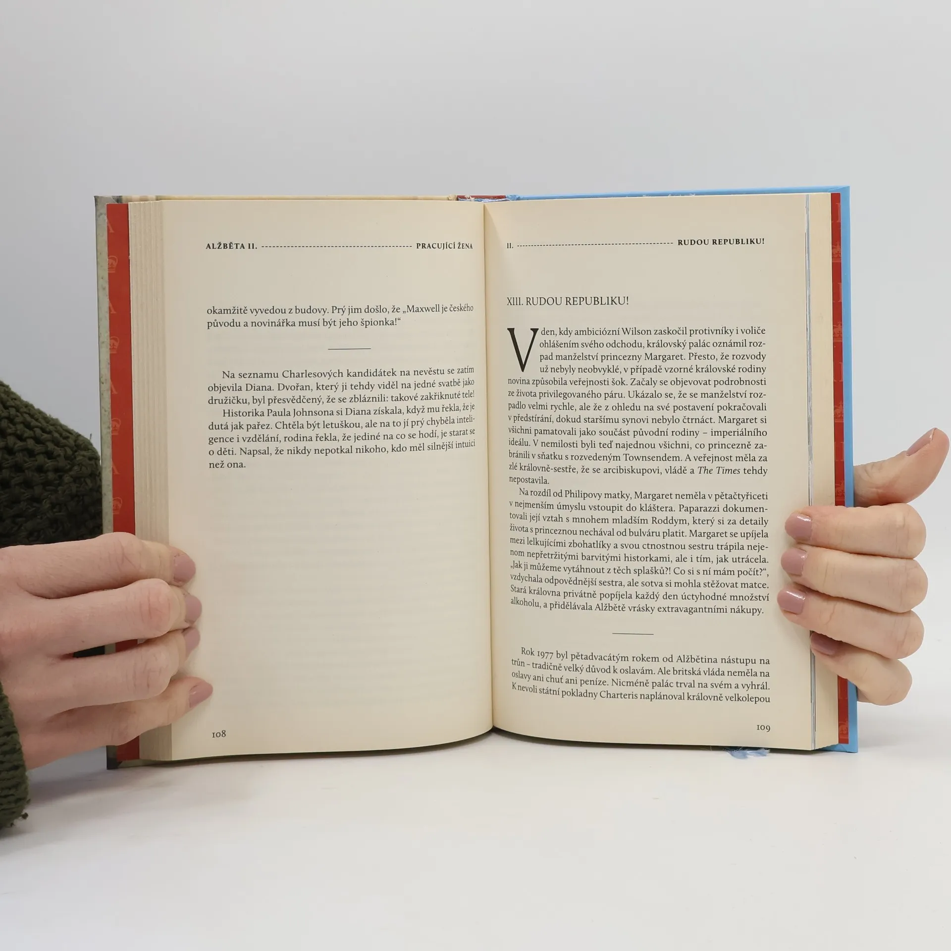 Alžběta II. čte tajné zprávy výzvědných služeb a jako jediná na této planetě se jimi zabývá už od dob Stalina. Vždycky když před Buckinghamským palácem zastaví vůz s novým premiérem, dotyčnému se nervozitou zrychlí dech. Nejde políbit ruce vetché prababičce. Jde se uctivě poklonit panovnici, která ho jedinou otázkou může zredukovat na politického zelenáče. Alžběta do svých deseti let snila o tom, že se provdá za farmáře a bude žít obklopená koňmi, krávami a psy. Zhroutil se jí svět, když se její plachý otec nečekaně stal králem a rodina musela do Buckinghamskeho paláce. „Bylo to jako bivakovat ve starém muzeu plném myší...“ Otci, s kterým do té doby skákala panáka, se musela začít klanět a i v zahradě mít naražený klobouk a chovat se způsobně. Alžběta v jednadvaceti přesvědčila nejhezčího oficíra v britském impériu, aby se do zlaté klece nechal zavřít s ní a společně zmodernizovali monarchii tak, že zůstala institucí, na kterou jsou všichni Britové pyšní. Alžběta odmítla být loutkou nebo filmovou hvězdou, tvrdě ve svém úřadu pracovala. Matka čtyř dětí si vysloužila v historii místo poslední skutečné a globálně uctívané královny.