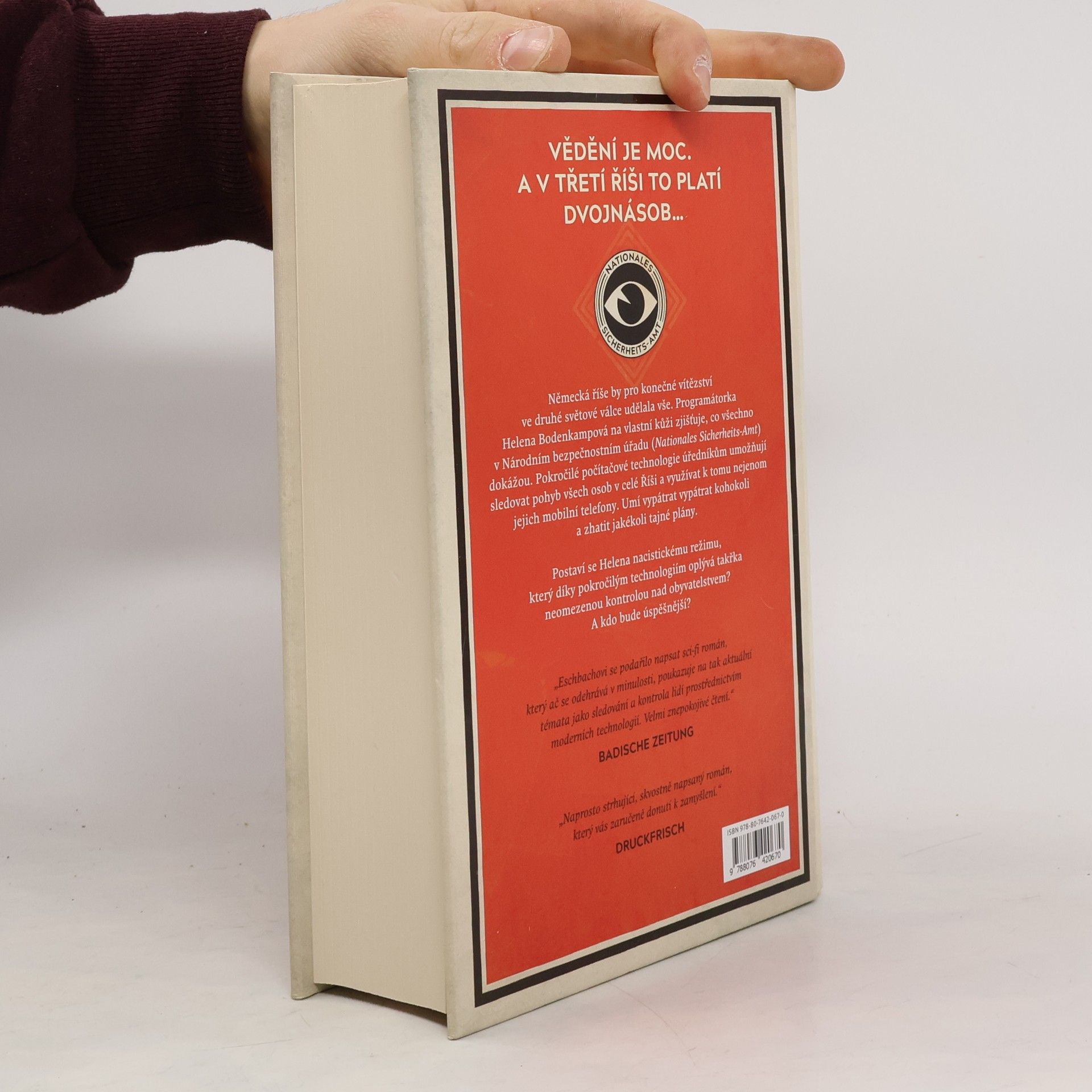 Německá říše v touze po vítězství ve válce v roce 1942 zapojuje veškeré možné prostředky do boje proti zbytku světa. Programátorka Helena Bodenkampová na vlastní kůži zjišťuje, co všechno v Národním bezpečnostním úřadu NBA dokážou. Díky pokročilé počítačové technologii sledují každý pohyb všech osob v celé Říši a využívají k tomu nejenom jejich mobilní telefony. Dokážou najít kohokoli a vyslídit jakékoli tajné plány. Podaří se Heleně zachránit svou životní lásku, nebo se až příliš zaplete do her svého nadřízeného Evžena Lettkeho, který touží po moci a neštítí se překročit žádnou hranici? Neobrátí se nakonec technika proti samotné Heleně? Postaví se Helena a Evžen nacistickému režimu, který si drží kontrolu nad svým obyvatelstvem díky pokročilým technologiím, nebo splní svou povinnost jako správní Němci? Nebude nakonec jejich vlastní počítač chytřejší než oni dva?
