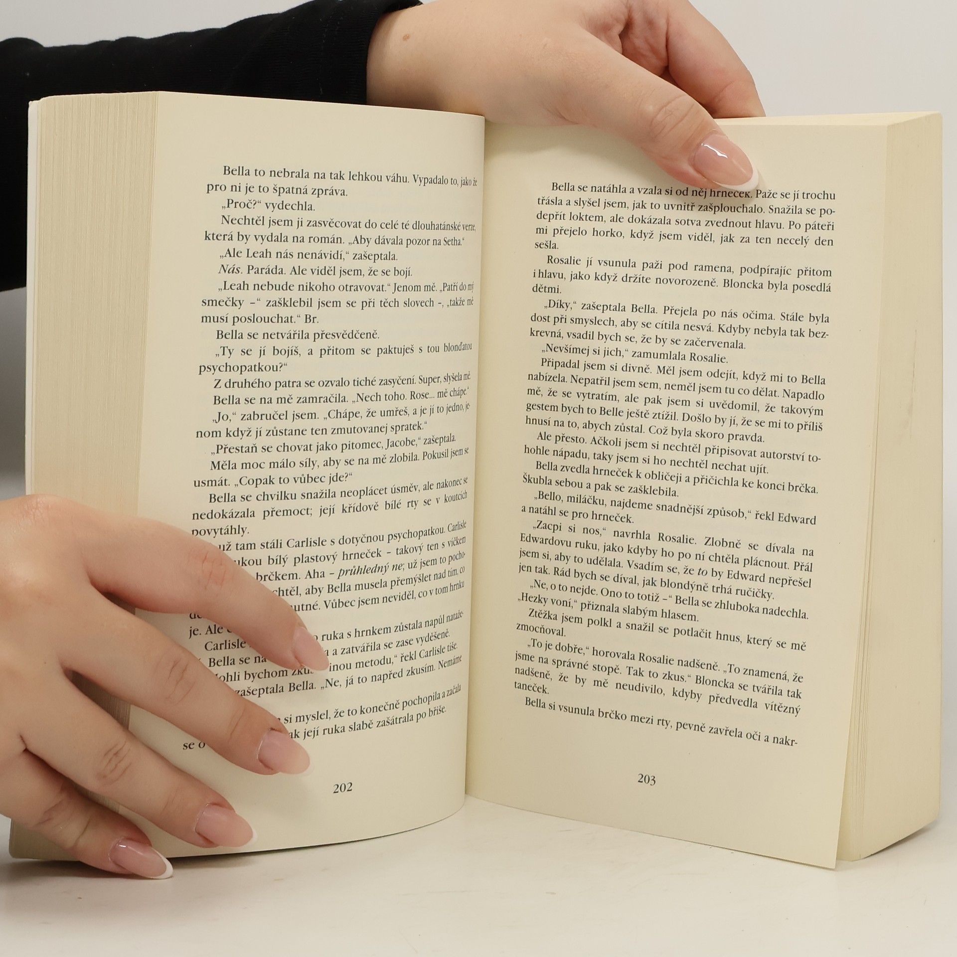 Z celé série se mi stejně nejvíc líbil první díl a mám to tak stejně i u filmu. Bylo to něco zajímavého a díky tomu vypukla mánie ohledně upírů (i když za jeho původ můžeme děkovat Draculovi). Já se většinou téhle mánii a hysterii vyhýbám a knihu si přečtu až po nějakém čase. Ze série Stmívání jsem měla pocit, že byla úplně zbytečně natahovaná. Milostný trojúhelník mezi Bellou, Edwardem a Jacobem byl naprosto zbytečný, protože již od začátku bylo jasné s kým nakonec skončí. Rozbřesk je jen další zbytečná natahovačka, která nenabízí nic, co by mě jako čtenáře dokázalo nějak uspokojit nebo potěšit. První polovina je o něco lepší než ta druhá. Jakmile se Bella promění jde to do kopru a stává se z toho filozofický blábol, kde každý nad něčím polemizuje. Prostě naprosto zbytečná kniha....