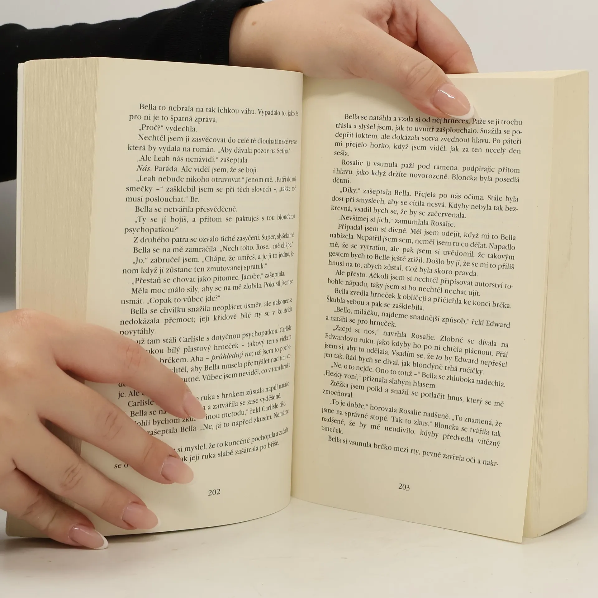 Z celé série se mi stejně nejvíc líbil první díl a mám to tak stejně i u filmu. Bylo to něco zajímavého a díky tomu vypukla mánie ohledně upírů (i když za jeho původ můžeme děkovat Draculovi). Já se většinou téhle mánii a hysterii vyhýbám a knihu si přečtu až po nějakém čase. Ze série Stmívání jsem měla pocit, že byla úplně zbytečně natahovaná. Milostný trojúhelník mezi Bellou, Edwardem a Jacobem byl naprosto zbytečný, protože již od začátku bylo jasné s kým nakonec skončí. Rozbřesk je jen další zbytečná natahovačka, která nenabízí nic, co by mě jako čtenáře dokázalo nějak uspokojit nebo potěšit. První polovina je o něco lepší než ta druhá. Jakmile se Bella promění jde to do kopru a stává se z toho filozofický blábol, kde každý nad něčím polemizuje. Prostě naprosto zbytečná kniha....