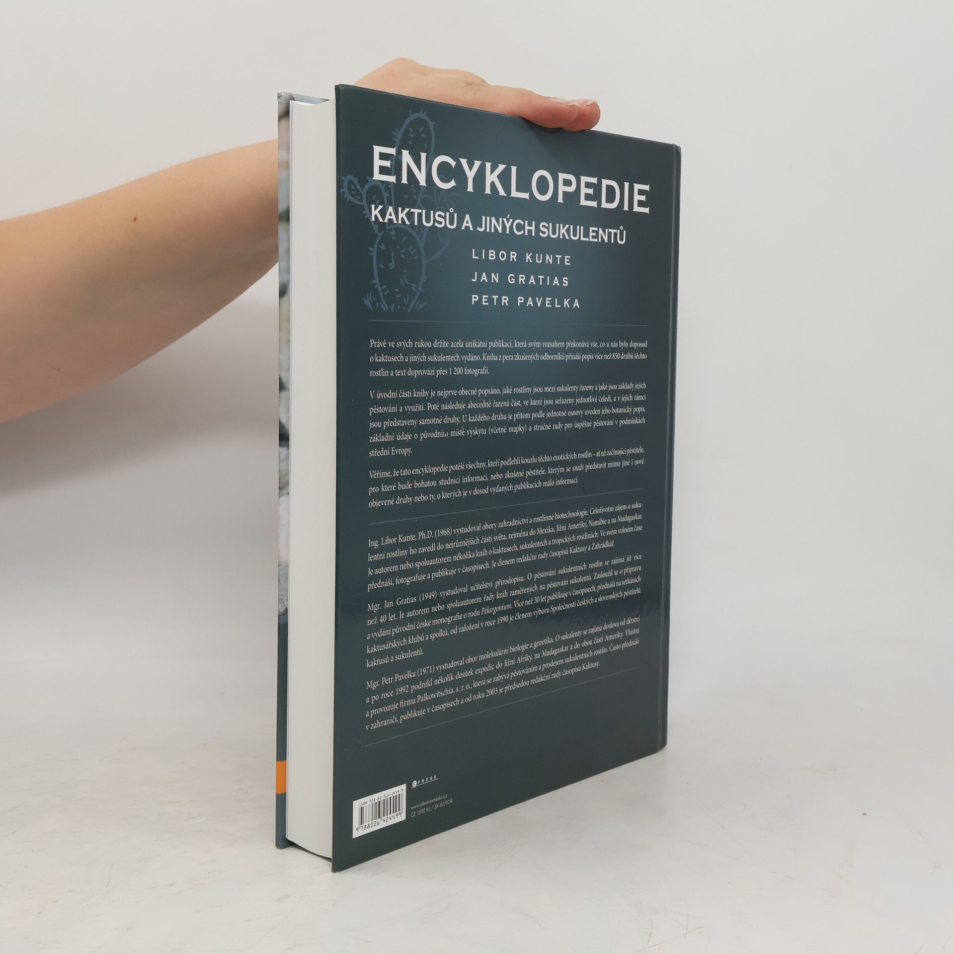 Právě ve svých rukou držíte zcela unikátní publikaci, která svým rozsahem překonává vše, co u nás bylo doposud o kaktusech a jiných sukulentech vydáno. Kniha z pera zkušených odborníků přináší popis více než 850 druhů těchto rostlin a text doprovází přes 1 200 fotografií. V úvodní části knihy je nejprve obecně popsáno, jaké rostliny jsou mezi sukulenty řazeny a jaké jsou základy jejich pěstování a využití. Poté následuje abecedně řazená část, ve které jsou seřazeny jednotlivé čeledí, a v jejich rámci jsou představeny samotné druhy. U každého druhu je přitom podle jednotné osnovy uveden jeho botanický popis, základní údaje o původním místě výskytu (včetně mapky) a stručné rady pro úspěšné pěstování v podmínkách střední Evropy. Věříme, že tato encyklopedie potěší všechny, kteří podlehli kouzlu těchto exotických rostlin – ať už začínající pěstitele, pro které bude bohatou studnicí informací, nebo zkušené pěstitele, kterým se snaží představit mimo jiné i nově objevené druhy nebo ty, o kterých je v dosud vydaných publikacích málo informací.