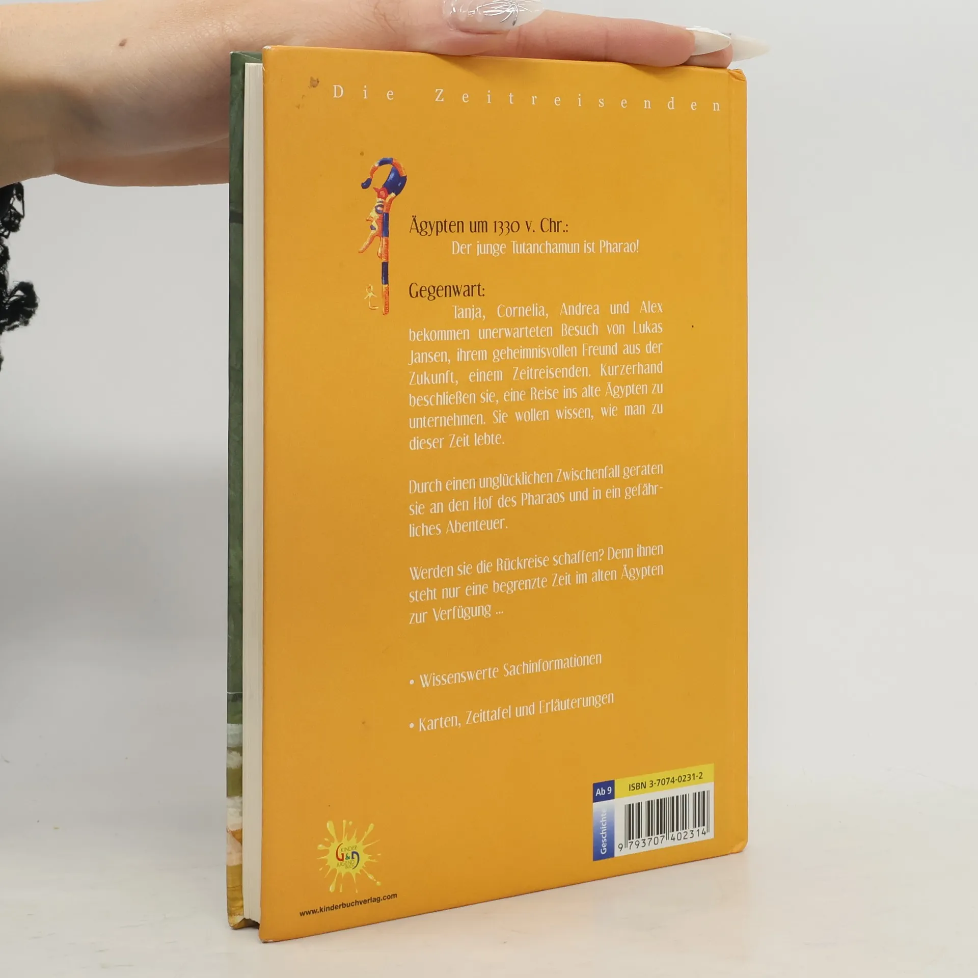 Ägypten um 1330 v. Chr.: Der junge Tutanchamun ist Pharao! Gegenwart: Tanja, Cornelia, Andrea und Alex bekommen unerwarteten Besuch von Lukas Jansen, ihrem geheimnisvollen Freund aus der Zukunft, einem Zeitrreisenden. Kurzerhand beschließen sie, eine Reise ins alte Ägypten zu unternehmen. Sie wollen wissen, wie man zu dieser Zeit lebt. Duch einen unglücklichen Zwischenfall geraten sie an den Hof des Pharaos und in ein gefährliches Abenteuer