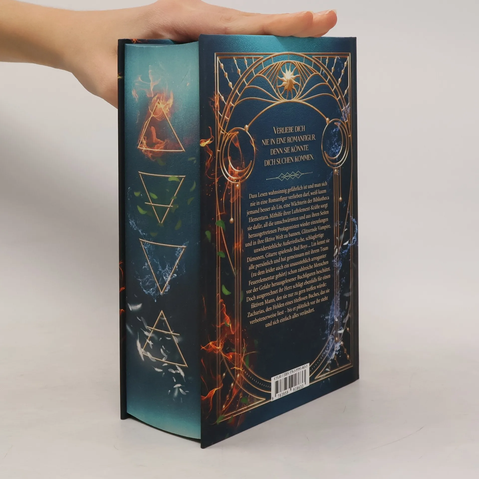 *Verliebe dich nie in eine Romanfigur, denn sie könnte dich suchen kommen.* Dass Lesen wahnsinnig gefährlich ist und man sich nie in eine Romanfigur verlieben darf, weiß kaum jemand besser als Lin, eine Wächterin der Bibliotheca Elementara. Mithilfe ihrer Luftelement-Kräfte sorgt sie dafür, all die umschwärmten und aus ihren Seiten herausgetretenen Protagonisten wieder einzufangen und in ihre fiktive Welt zu bannen. Glitzernde Vampire, unwiderstehliche Außerirdische, schlagfertige Dämonen, Gitarre spielende Bad Boys ... Lin kennt sie alle persönlich und hat gemeinsam mit ihrem Team (zu dem leider auch ein unausstehlich arroganter Feuerelementar gehört) schon zahlreiche Menschen vor der Gefahr herausgelesener Buchfiguren beschützt. Doch ausgerechnet ihr Herz schlägt ebenfalls für einen fiktiven Mann, den sie nur zu gern treffen würde: Zacharias, den Helden eines titellosen Buches, das sie verbotenerweise liest – bis er plötzlich vor ihr steht und sich einfach alles verändert. Sammelband beinhaltet die Einzelbände: Die Magie zwischen den Zeilen Die Welt hinter den Buchstaben Das Geheimnis unter der Tinte