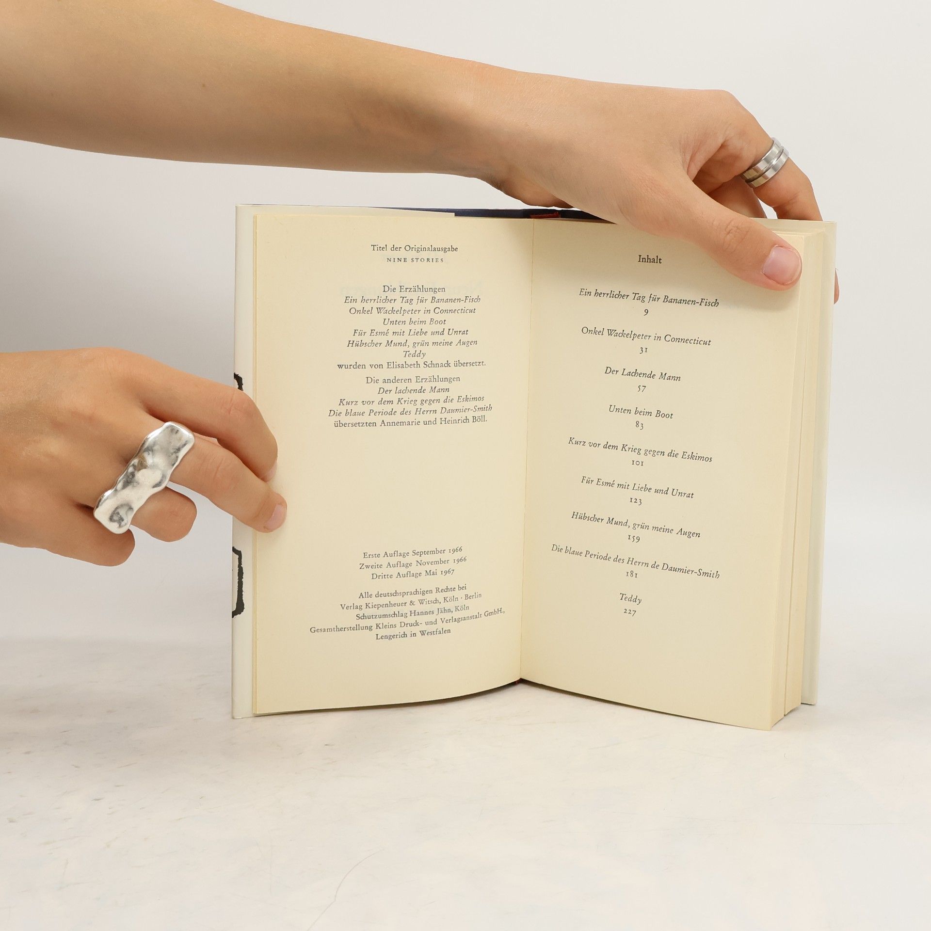 Die großartigen Erzählungen J. D. Salingers in der glänzenden Neuübersetzung von Eike Schönfeld. Neben dem «Fänger im Roggen» und den vier großen Erzählungen über die Glass-Familie hat Salinger nur einen Band mit Kurzgeschichten veröffentlicht: ein Glanzlicht der Literatur des 20. Jahrhunderts. Außenseiter und Verstörte, Einzelgänger und Mitglieder der aus «Franny und Zooey» vertrauten Glass-Familie bevölkern diese Geschichten. Vor allem Kinder: frühreife und altkluge, weise und naseweise und ein Wunderkind. Salinger schildert ihr Anderssein, ihren Eigensinn, ihre Methoden im Umgang mit Erwachsenen, ihre schmerzlichen und komischen Unternehmungen mit Witz, Melancholie und großer Zärtlichkeit.