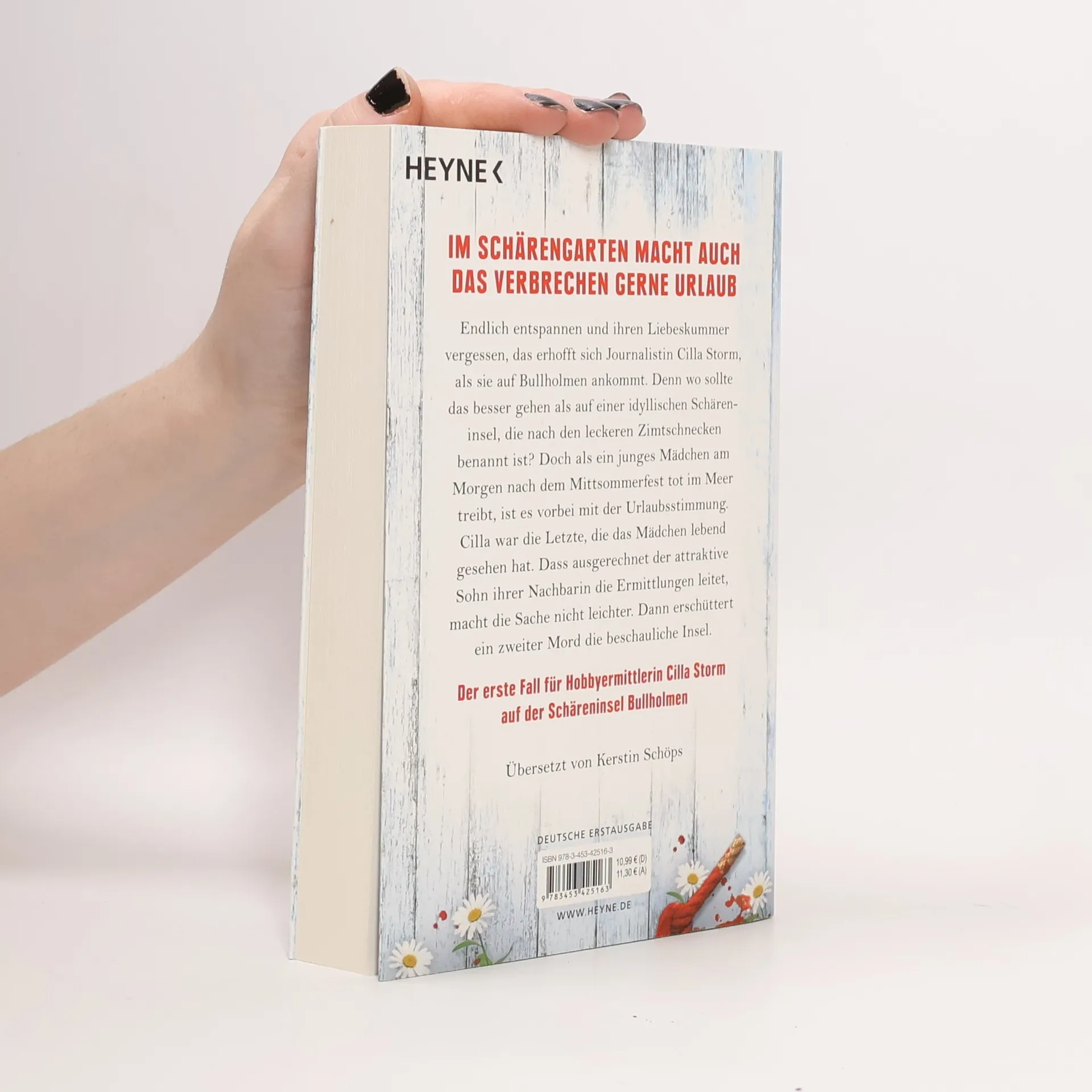 Mord und ein Glas Wein gefällig? Der erste von vier Fällen für Cilla Storm – Ein Schären-Krimi für jede Jahreszeit Endlich entspannen und ihren Liebeskummer vergessen, denkt Journalistin Cilla Storm, als sie auf Bullholmen ankommt. Und wo sollte das besser gehen als auf einer idyllischen Schäreninsel, die nach den leckeren Zimtschnecken benannt ist? Doch als ein junges Mädchen am Morgen nach dem Mittsommerfest tot im Meer treibt, ist es vorbei mit der Urlaubsstimmung. Denn Cilla war die Letzte, die das Mädchen lebend gesehen hat. Dass ausgerechnet der attraktive Sohn ihrer Nachbarin die Ermittlungen leitet, macht die Sache auch nicht leichter. Dann erschüttert ein zweiter Mord die beschauliche Insel.