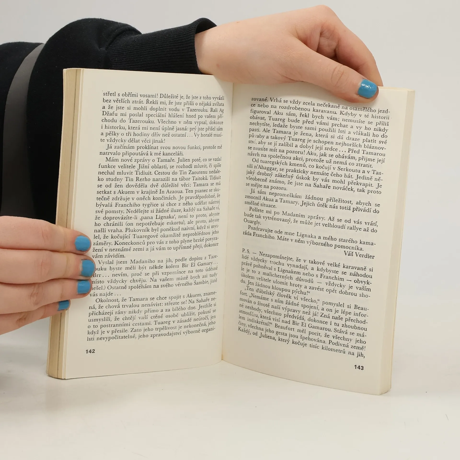Děj dobrodružného románu o hledání staré cesty napříč Saharou se odvíjí na konci dvacátých let tohoto století. Autor líčí obtížnou expedici, jejíž účastníky ohrožují lupiči a útrapy, a podává dramatický obraz Sahary.