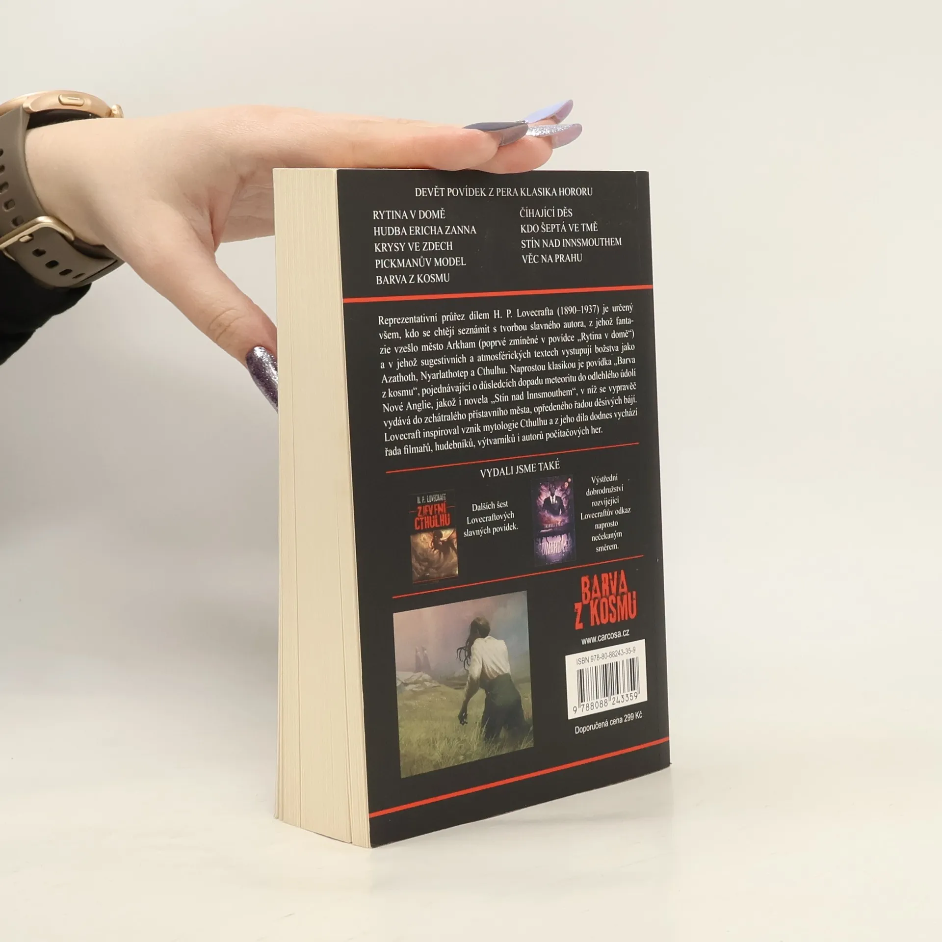 Druhý svazek toho nejlepšího z Lovecrafta. Reprezentativní průřez dílem H. P. Lovecrafta (1890–1937) je určený všem, kdo se chtějí seznámit s tvorbou slavného autora, z jehož fantazie vzešlo město Arkham (poprvé zmíněné v povídce „Rytina v domě“) a v jehož sugestivních a atmosférických textech vystupují božstva jako Azathoth, Nyarlathotep a Cthulhu. Naprostou klasikou je povídka „Barva z kosmu“, pojednávající o důsledcích dopadu meteoritu do odlehlého údolí Nové Anglie, jakož i novela „Stín nad Innsmouthem“, v níž se vypravěč vydává do zchátralého přístavního města, opředeného řadou děsivých bájí. Lovecraft inspiroval vznik mytologie Cthulhu a z jeho díla dodnes vychází řada filmařů, hudebníků, výtvarníků i autorů počítačových her.