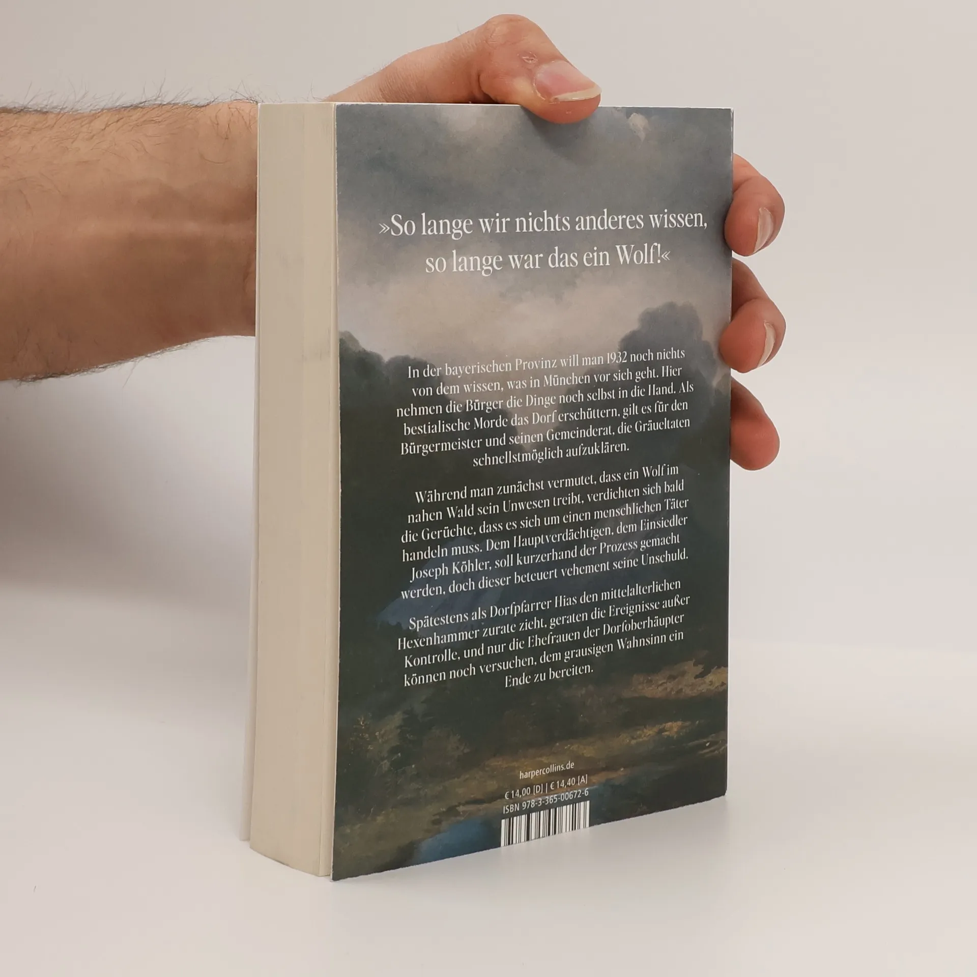 »So lange wir nichts anderes wissen, so lange war das ein Wolf!« In der bayerischen Provinz will man 1932 noch nichts von dem wissen, was in München vor sich geht. Hier nehmen die Bürger die Dinge noch selbst in die Hand. Als bestialische Morde das Dorf erschüttern, gilt es für den Bürgermeister und seinen Gemeinderat, die Gräueltaten schnellstmöglich aufzuklären. Während man zunächst vermutet, dass ein Wolf im nahen Wald sein Unwesen treibt, verdichten sich bald die Gerüchte, dass es sich um einen menschlichen Täter handeln muss. Dem Hauptverdächtigen, dem Einsiedler Joseph Köhler, soll kurzerhand der Prozess gemacht werden, doch dieser beteuert vehement seine Unschuld. Spätestens als Dorfpfarrer Hias den mittelalterlichen Hexenhammer zurate zieht, geraten die Ereignisse außer Kontrolle, und nur die Ehefrauen der Dorfoberhäupter können noch versuchen, dem grausigen Wahnsinn ein Ende zu bereiten.