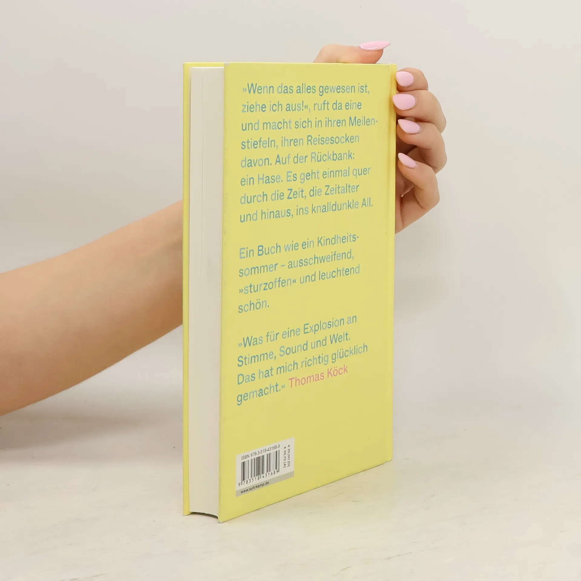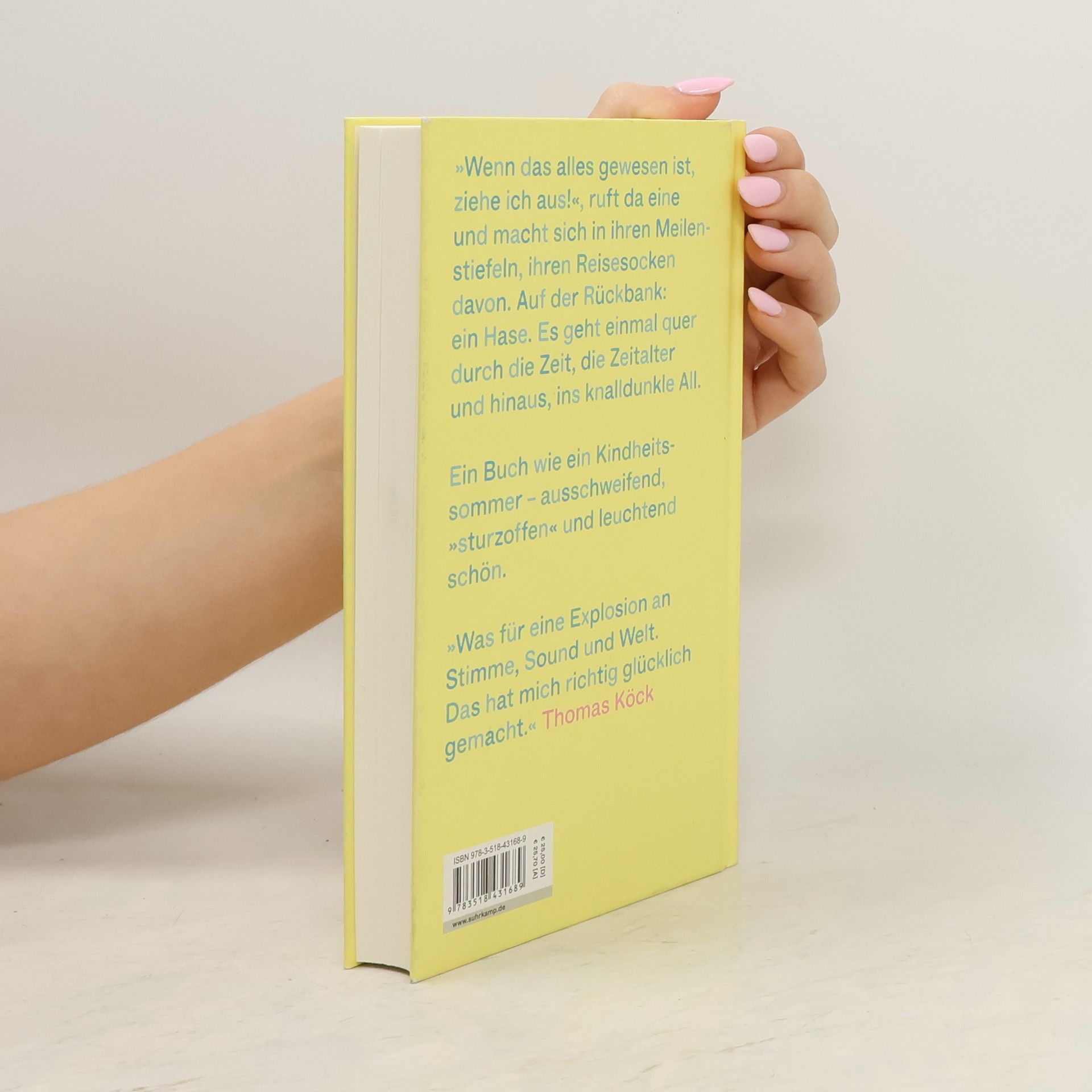 »Wenn das alles gewesen ist, ziehe ich aus!«, ruft da eine und macht sich in ihren Meilenstiefeln, ihren Reisesocken davon. Auf der Rückbank: ein Hase. Es geht einmal quer durch die Zeit, die Zeitalter und hinaus, ins knalldunkle All. Im Strichflieger durch den Himmel und die Erinnerung: an zwei Großmütter, eine helle, eine dunkle, eine heile, eine wunde. Einen Großvater, seine furchigen Hände. Einen Bruder und seinen Baum. An rasende Träume, krumme Märchen und einen Purple Rain.Maren Kames' Hasenprosa ist quecksilbrig und herznah. Sie ist voller »Punk, Punk, Punk« und Zärtlichkeit. Fein Gesponnenes steht neben präzise gebannter Weltwahrnehmung. Wir hören Glenn Gould und Billie Eilish, sehen Lionel Messi durchs Universum dribbeln und seilen uns mit dem Hasen von Fixsternen ab. Ein Buch wie ein Kindheitssommer, ausschweifend, »sturzoffen« und leuchtend schön.
