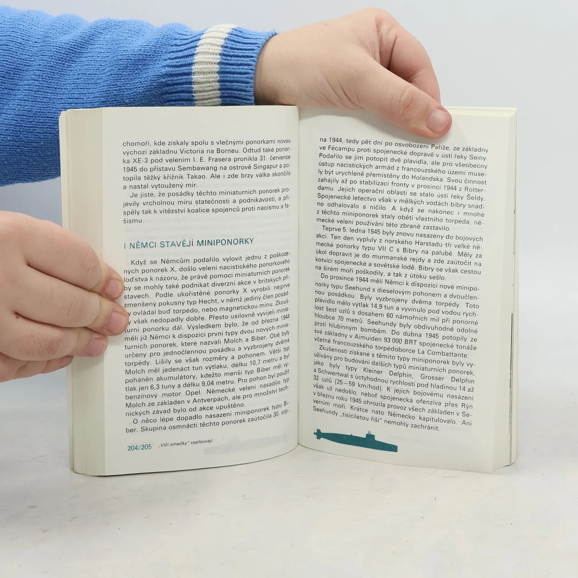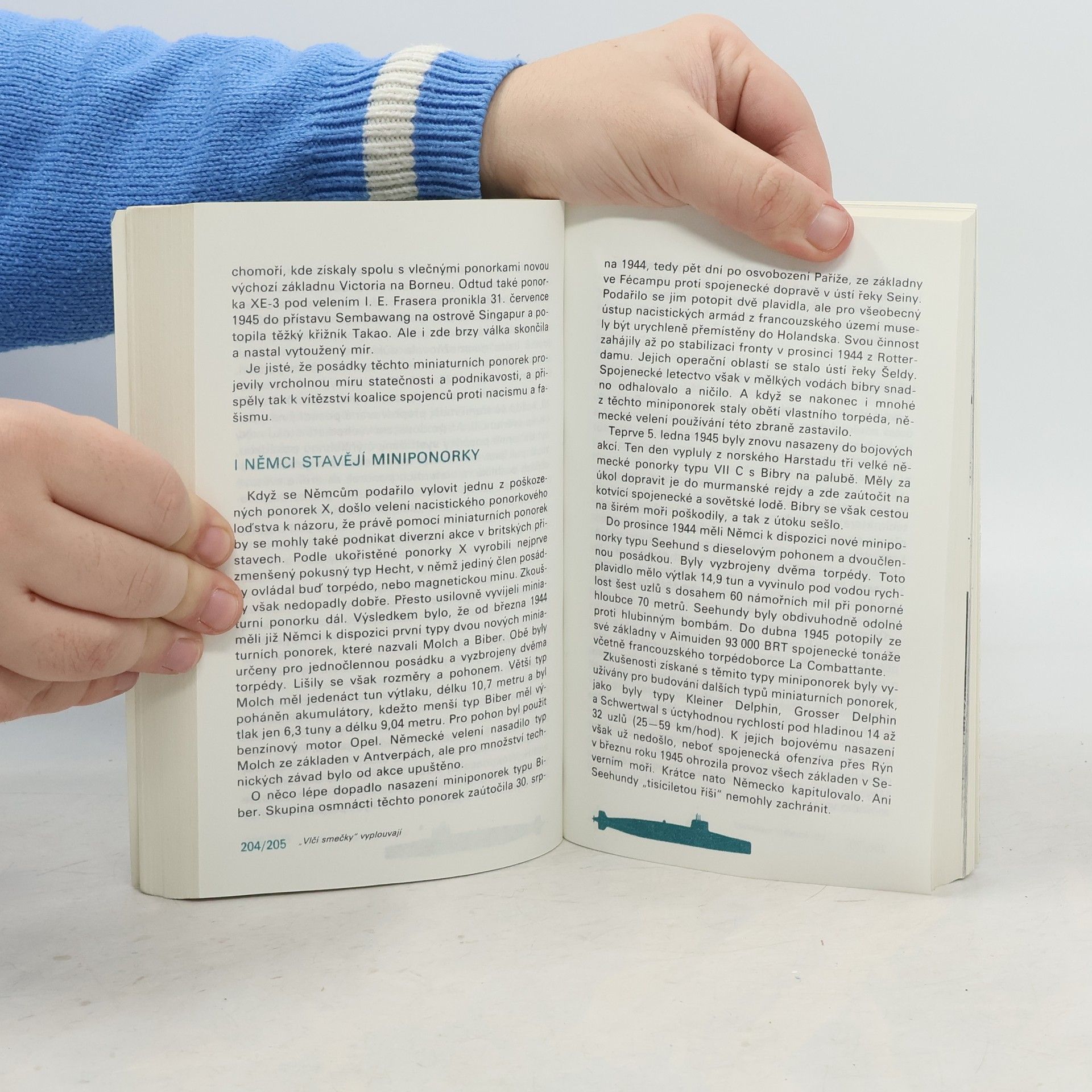 Historie ponorek od prvopočátku, přes obě světové války až po 80. léta 20. století. 40 stran příloh