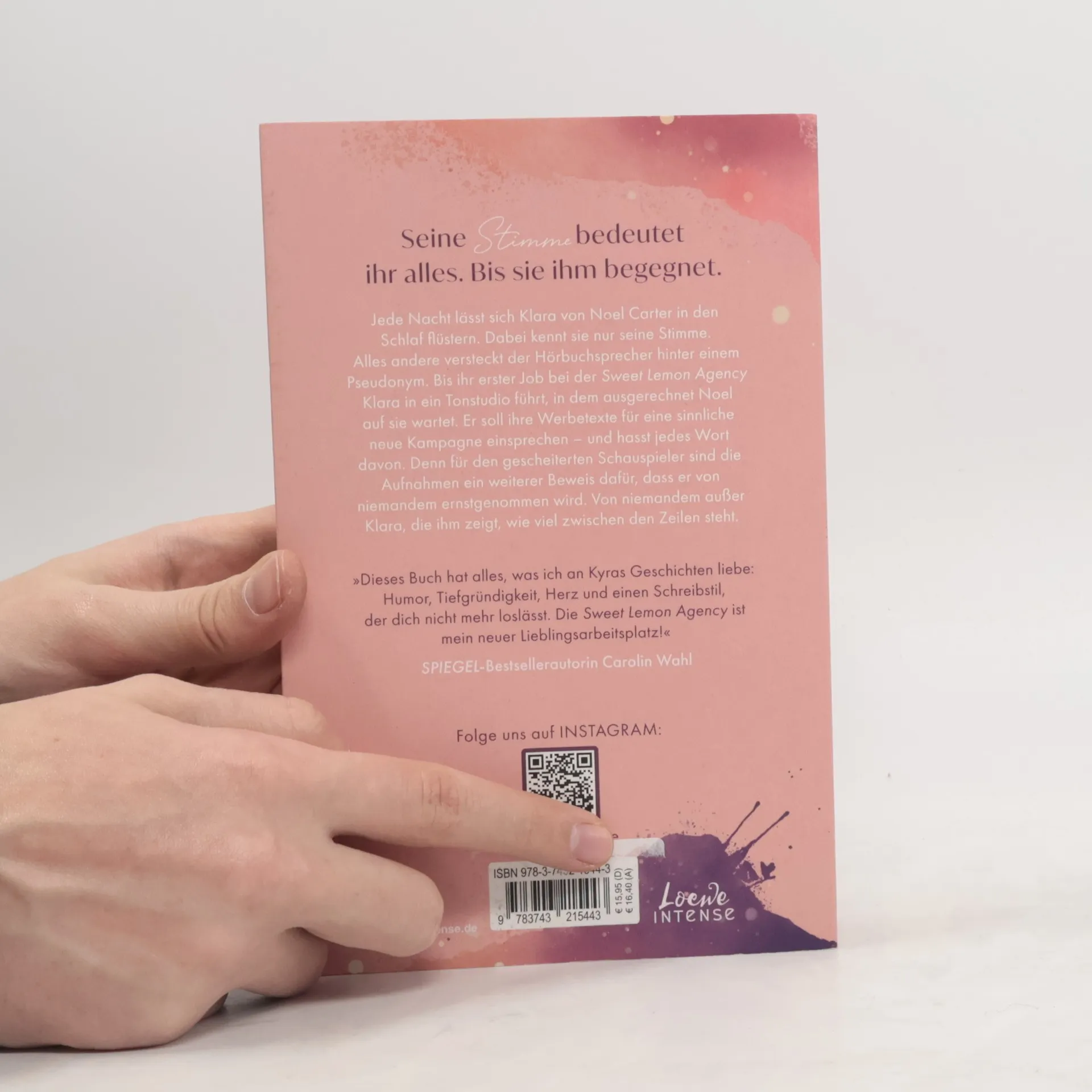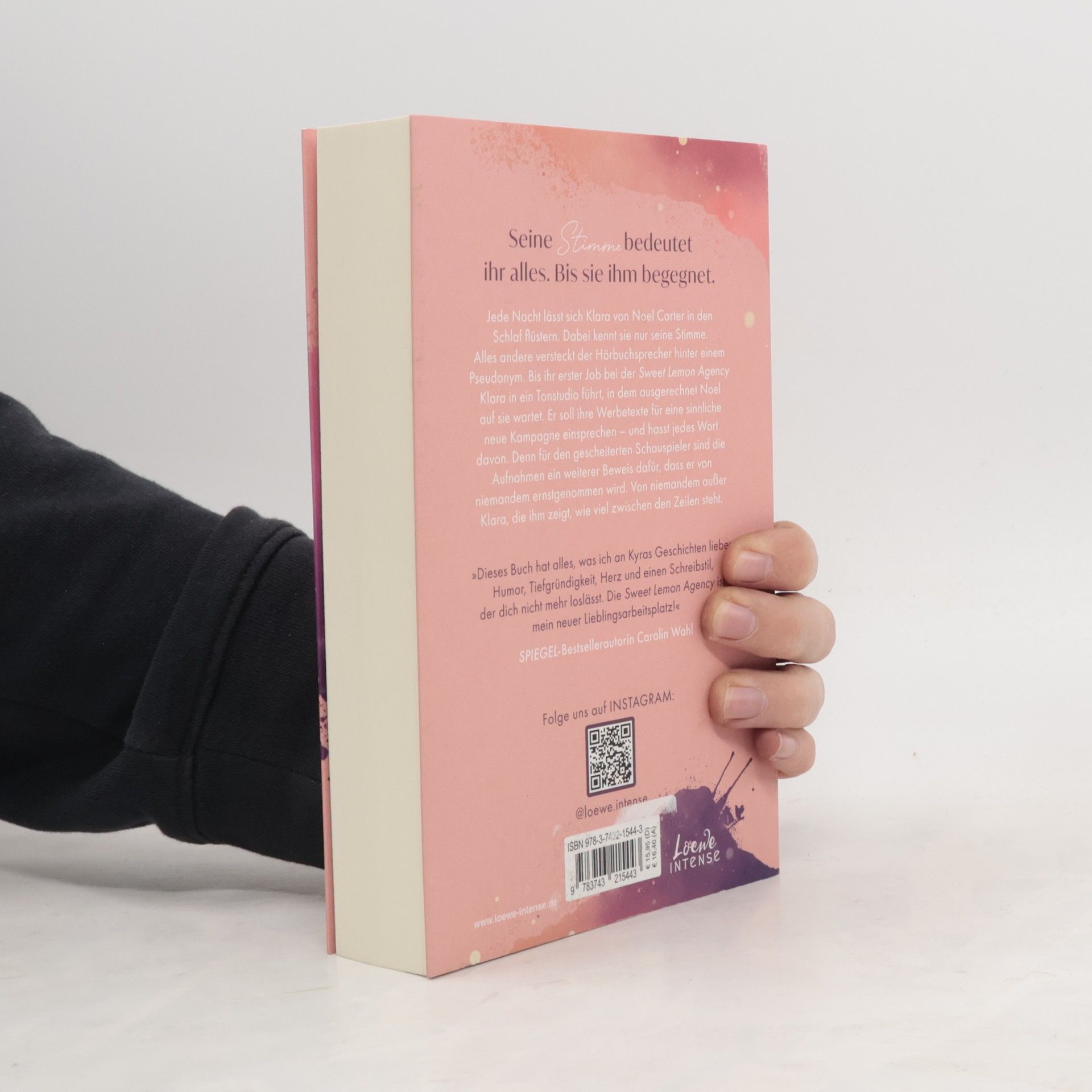 Das Buch ist bei deiner Buchhandlung vor Ort und bei vielen Online-Buchshops erhältlich! Mit edlem Farbschnitt - nur in der limitierten Erstauflage Seine Stimme bedeutet ihr alles – bis sie ihm begegnet Jede Nacht lässt sich Klara von Noel Carter in den Schlaf flüstern. Dabei kennt sie nur seine Stimme. Alles andere versteckt der Hörbuchsprecher hinter einem Pseudonym. Bis ihr erster Job bei der Sweet Lemon Agency Klara in ein Tonstudio führt, in dem ausgerechnet Noel auf sie wartet. Er soll ihre Werbetexte für eine sinnliche neue Kampagne einsprechen – und hasst jedes Wort davon. Denn für den gescheiterten Schauspieler sind die Aufnahmen ein weiterer Beweis dafür, dass er von niemandem ernstgenommen wird. Von niemandem außer Klara, die ihm zeigt, wie viel zwischen den Zeilen steht. Auftakt einer neuen New Adult-Reihe in der deutschen Werbebranche. Autorin Kyra Groh verwebt ihre Leidenschaft für Hörbücher in ihrer neuen New-Adult-Reihe rund um die Sweet Lemon Agency: She fell first but he fell harder ist das Motto, wenn CODA (Child of Deaf Adults) Klara und Hörbuchsprecher Noel für eine spicy Werbekampagne aufeinandertreffen.