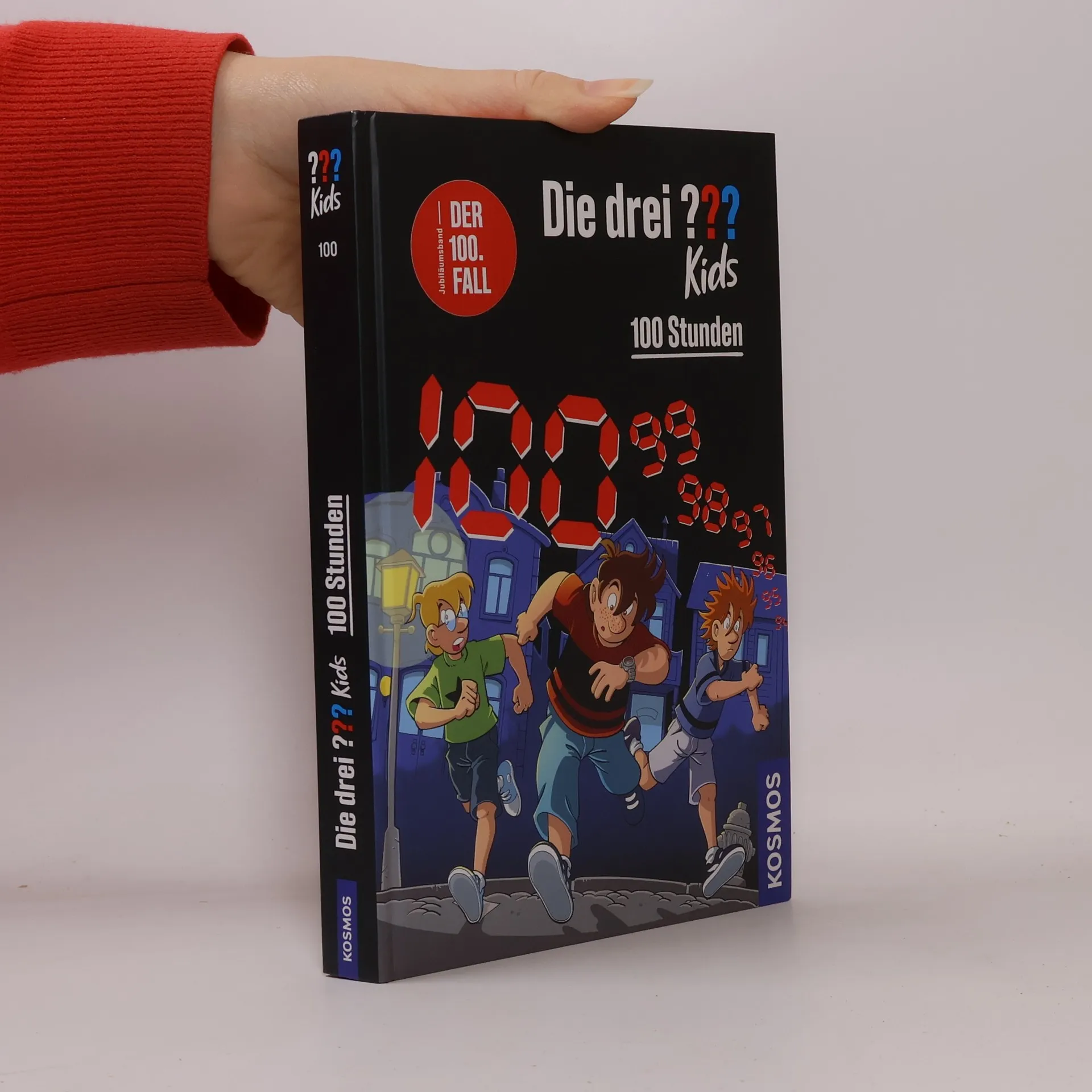 Kommissar Reynolds wundert sich: Wer hat den Erpresserbrief an die drei ??? geschrieben? Justus, Peter und Bob haben genau 100 Stunden Zeit, um die Forderungen des Erpressers zu erfüllen! In der Geschichte wird der Stunden-Countdown runtergezählt – das sorgt für Tempo. Es gibt viele Aufgaben und Rätsel zu lösen. Bei ihren Ermittlungen kommen die Detektive an bekannten Orten in Rocky Beach vorbei. Sie treffen Onkel Titus, Tante Mathilda, Skinny Norris und viele alte Bekannte. Dann führt die Spur die Detektive ins Gefängnis. Werden Justus, Peter und Bob den Bösewicht in der letzten Minute noch schnappen? Der 100. Band der Reihe „Die drei ??? Kids".