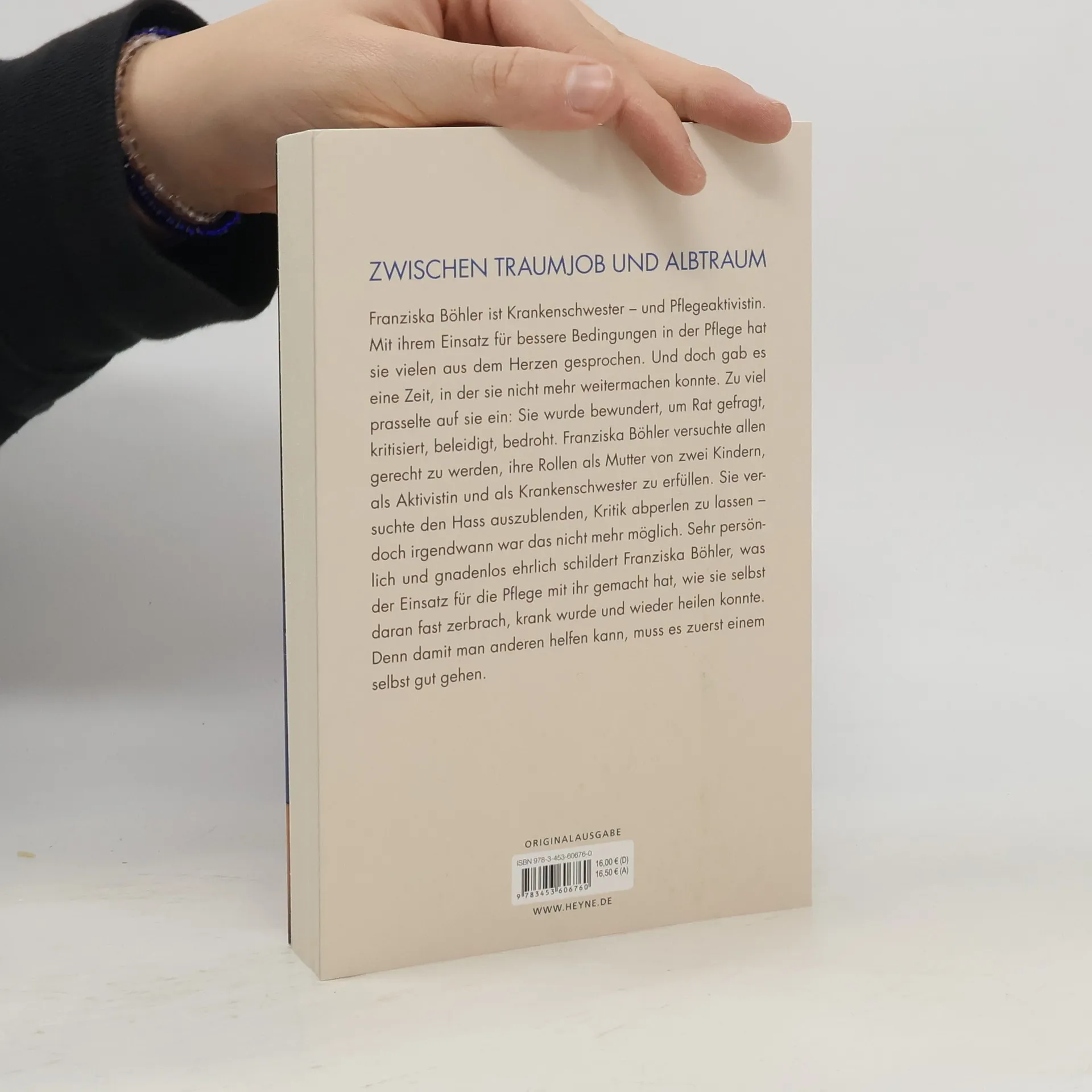 Franziska Böhler ist Krankenschwester – und Pflegeaktivistin. Mit ihrem Einsatz für bessere Bedingungen in der Pflege hat sie vielen aus dem Herzen gesprochen. Und doch gab es eine Zeit, in der sie nicht mehr weitermachen kann. Zu viel prasselt auf sie ein: Sie wird bewundert, um Rat gefragt, und sie wird kritisiert, beleidigt, bedroht. Franziska Böhler versucht allem gerecht zu werden, als Mutter von zwei Kindern, als Aktivistin und als Krankenschwester. Sie versucht den Hass auszublenden, Kritik abperlen zu lassen – doch irgendwann ist das nicht mehr möglich. Panikattacken und Burnout sind die Folge. Hinzu kommt der Frust, dass sich an den katastrophalen Bedingungen in der Pflege nichts ändert. Trotzdem: Die Krankenpflege ist und bleibt Franziska Böhlers Traumberuf. Sie identifiziert sich mit ihm, er erdet sie. Sehr persönlich und gnadenlos ehrlich schildert Franziska Böhler, was der Einsatz für die Pflege mit ihr gemacht hat, wie sie selbst daran fast zerbrach, krank wurde und wieder heilen konnte. Denn damit man anderen helfen kann, muss es zuerst einem selbst gut gehen. Und sie stellt die Frage, wie wir mit den Menschen umgehen, die sich für andere einsetzen – sei es im Krankenhaus oder im Aktivismus.