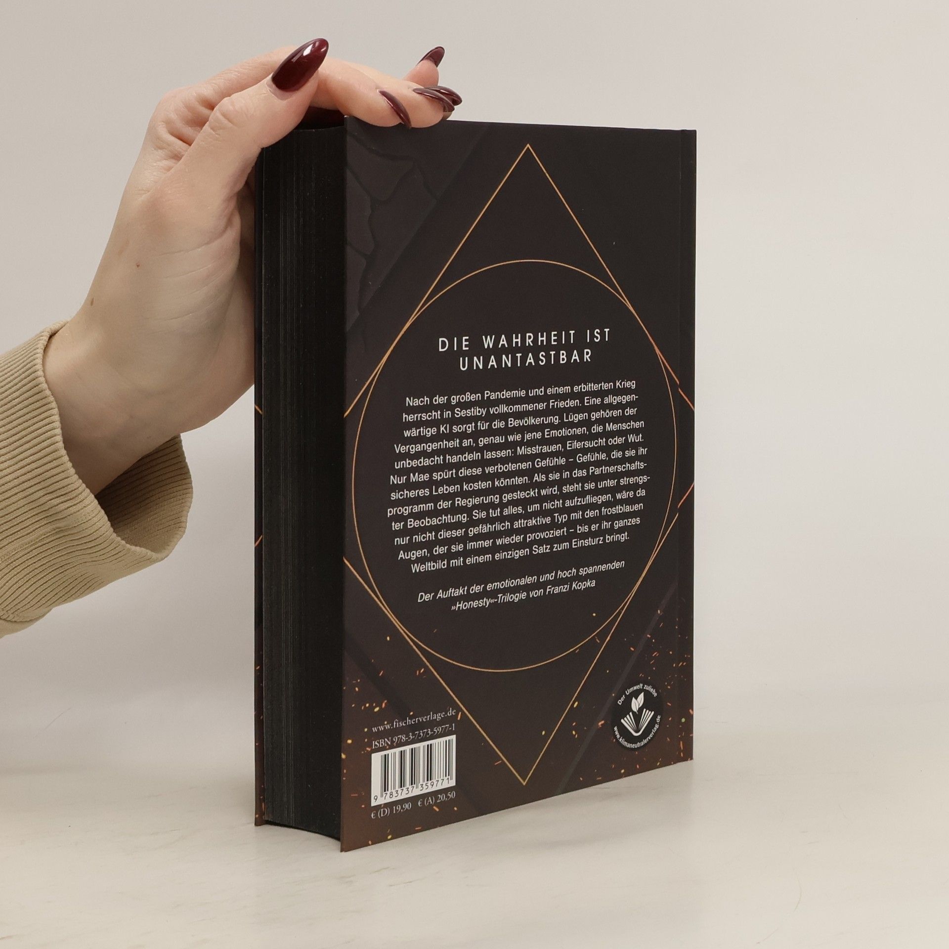 Nach der großen Pandemie und einem erbitterten Krieg herrscht in Sestiby vollkommener Frieden. Eine allgegenwärtige KI sorgt für die Bevölkerung. Lügen gehören der Vergangenheit an, genau wie jene Emotionen, die Menschen unbedacht handeln lassen: Misstrauen, Eifersucht oder Wut. Nur Mae spürt diese verbotenen Gefühle – Gefühle, die sie ihr sicheres Leben kosten könnten. Als sie in das Partnerschaftsprogramm der Regierung gesteckt wird, steht sie unter strengster Beobachtung. Sie tut alles, um nicht aufzufliegen, wäre da nur nicht dieser gefährlich attraktive Typ mit den frostblauen Augen, der sie immer wieder provoziert – bis er ihr ganzes Weltbild mit nur einem Satz zum Einsturz bringt. Der Auftakt der emotionalen und hoch spannenden »Honesty«-Trilogie von Franzi Kopka Perfekt für Fans von Dystopien wie »Gameshow« oder »Tribute von Panem«. Voller Spannung, Rebellion und Romantik! Eine neue hochspannende Jugendbuchreihe ab 14 Jahren.