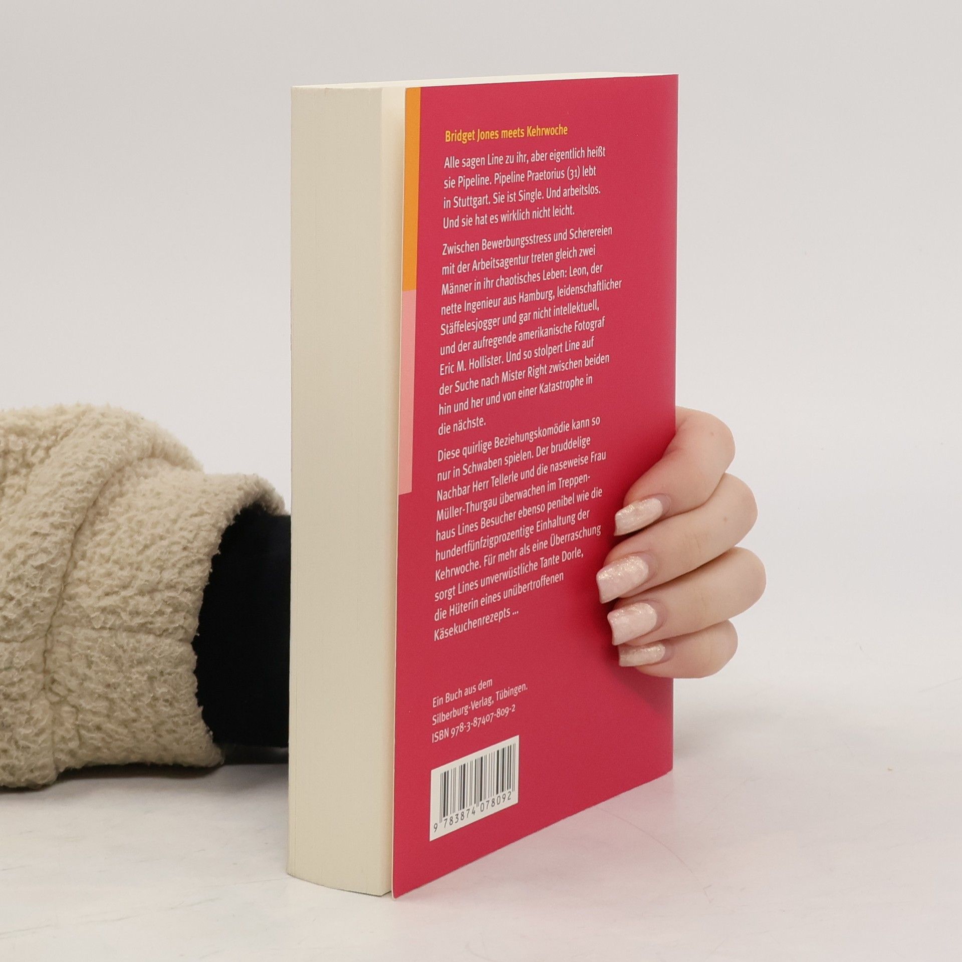 Alle sagen Line zu ihr, aber eigentlich heißt sie Pipeline. Pipeline Praetorius (31) lebt in Stuttgart. Sie ist Single. Und arbeitslos. Und sie hat es wirklich nicht leicht. Zwischen Bewerbungsstress und Scherereien mit der Arbeitsagentur treten gleich zwei Männer in ihr chaotisches Leben: Leon, der nette Ingenieur aus Hamburg, leidenschaftlicher Stäffelesjogger und gar nicht intellektuell, und der aufregende amerikanische Fotograf Eric M. Hollister. Und so stolpert Line auf der Suche nach Mister Right zwischen beiden hin und her und von einer Katastrophe in die nächste. Diese quirlige Beziehungskomödie kann so nur in Schwaben spielen. Der bruddelige Nachbar Herr Tellerle und die naseweise Frau Müller-Thurgau überwachen im Treppenhaus Lines Besucher ebenso penibel wie die hundertfünfzigprozentige Einhaltung der Kehrwoche. Für mehr als eine Überraschung sorgt Lines unverwüstliche Tante Dorle, Hüterin eines unübertroffenen Käsekuchenrezepts ... Frei nach dem Motto »Bridget Jones meets Kehrwoche« legt die Stuttgarter Autorin Elisabeth Kabatek einen frechen, turbulenten Frauenroman vor. Zum Brüllen komisch!