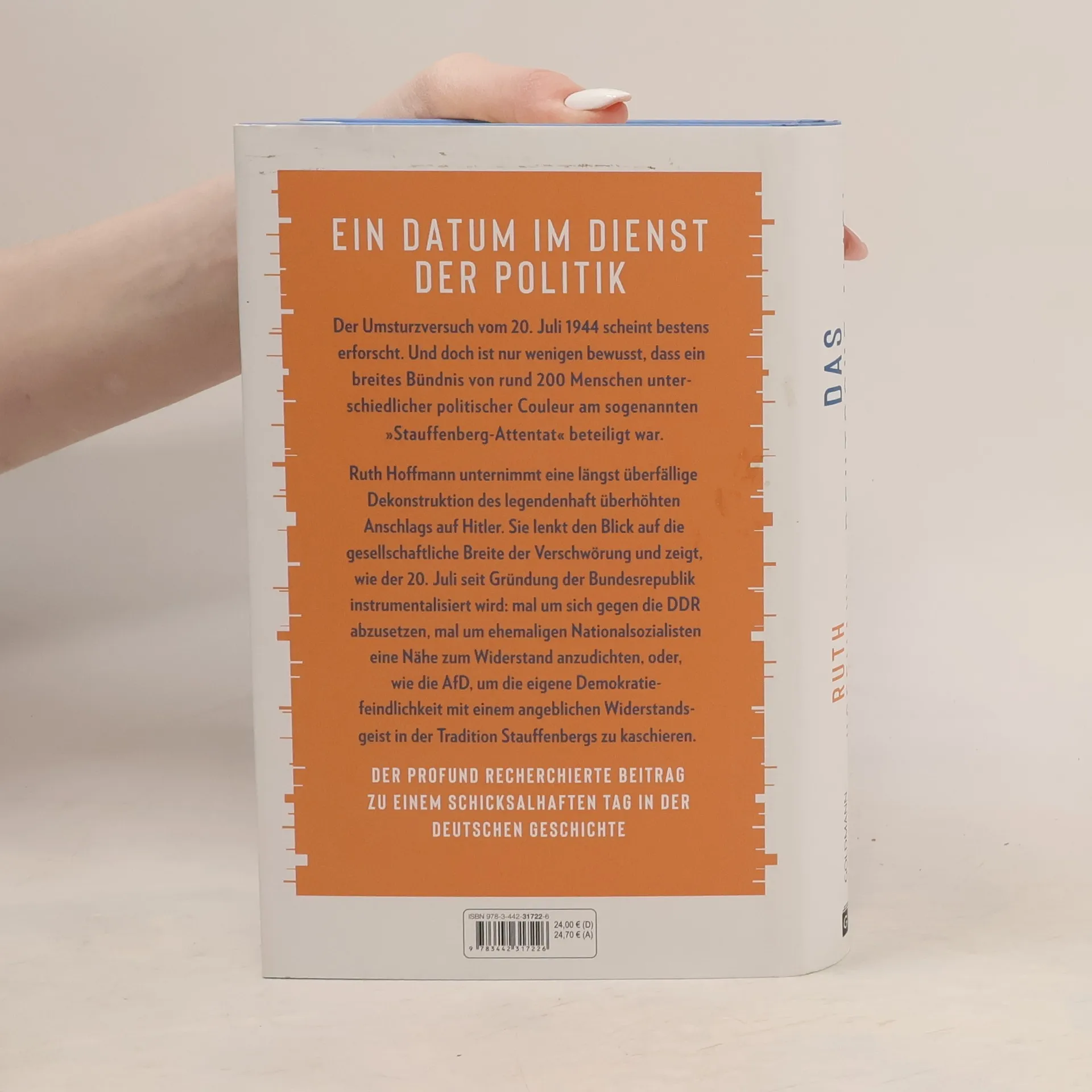 Ein Datum im Dienst der PolitikZum 20. Juli 1944 scheint alles gesagt. Wir wissen, wie Claus Schenk Graf von Stauffenberg die Bombe platzierte, warum der Anschlag misslang und dass es trotzdem aller Ehren wert ist. Dass aber in Wirklichkeit rund 200 Personen, ein breites Bündnis von Menschen aller sozialer Schichten und unterschiedlichster politischer Couleur am sogenannten »Stauffenberg-Attentat« beteiligt waren, ist nur wenigen bewusst. Noch heute gilt der 20. Juli 1944 als »Aufstand des Gewissens« einer kleinen Gruppe konservativer Militärs, noch heute verstellt diese legendenhafte Überhöhung unseren Blick auf die Ereignisse und die gesellschaftliche Vielfalt der Verschwörung. Die Journalistin Ruth Hoffmann unternimmt eine umfassende und längst überfällige Dekonstruktion des Mythos »Stauffenberg-Attentat« und zeichnet nach, wie der 20. Juli seit Gründung der Bundesrepublik politisch instrumentalisiert wird: mal um sich gegen die DDR abzusetzen und kommunistische Widerständler zu diffamieren; mal um Politikern, die mit dem NS-Regime kollaboriert hatten, eine Nähe zum Widerstand anzudichten; oder, wie neuerdings die AfD, um die eigene Demokratiefeindlichkeit mit einem angeblichen Widerstandsgeist in der Tradition Stauffenbergs zu kaschieren.Das deutsche Alibi ist der profund recherchierte Beitrag zu einem schicksalhaften Datum, in dem sich bis heute das schwierige Verhältnis zu unserer eigenen Geschichte spiegelt.