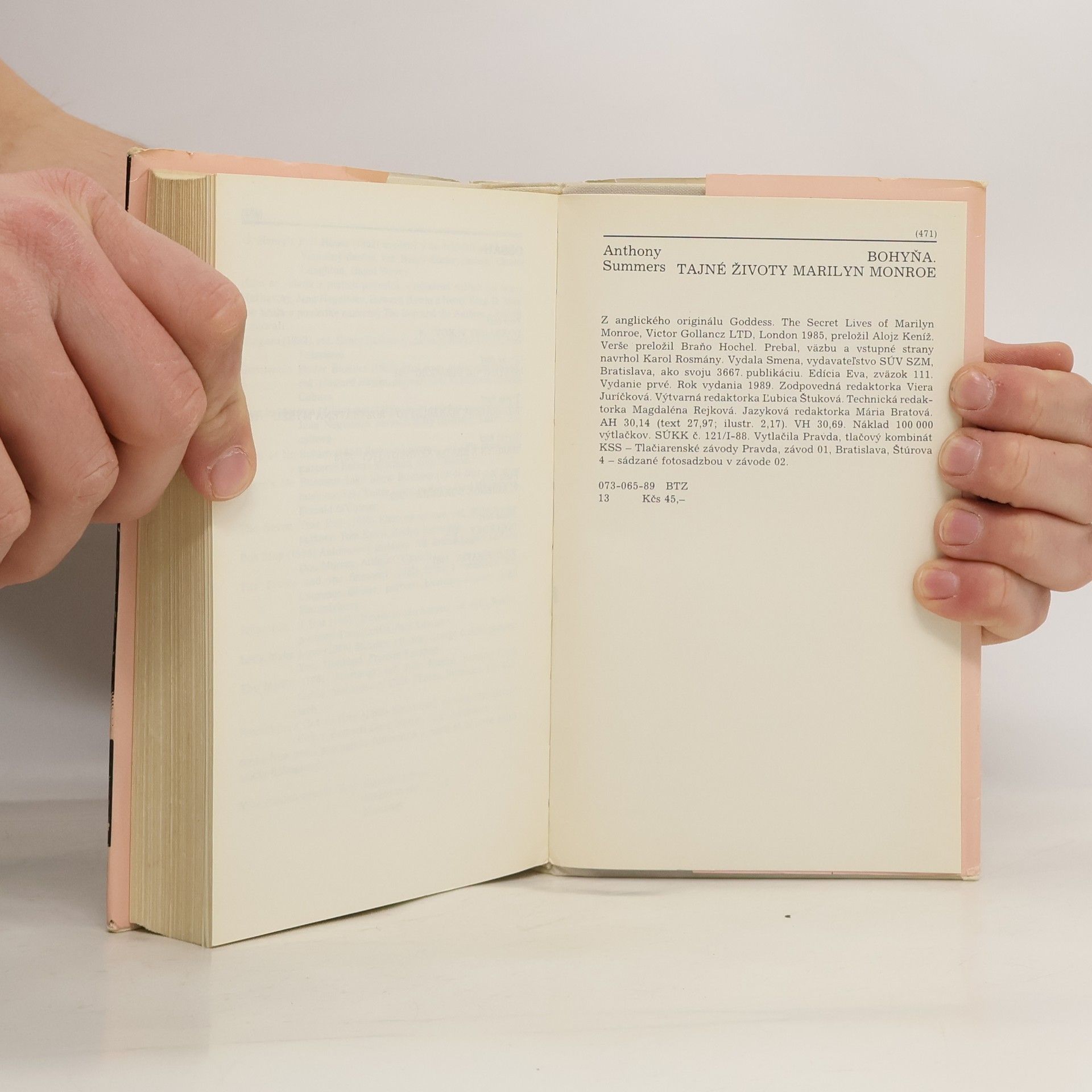 Už veľa kníh sa napísalo o živote slávnej americkej herečky Marilyn Monroe. Životné osudy tejto rozporuplnej osobnosti sa znovu odvíjajú pred zrakmi čitateľov v rôznych žánrových podobách - od reportáží až po rozsiahle biografie. No literárne hodnoty týchto diel sú rôzne, veľmi odlišné. V mnohých prípadoch prevláda úsilie vytvárať lacné efekty zo senzačných objavov, pričom zjevne dochádza k výraznému narušeniu proporcionality medzi fikciou, skutočnosťou a výmyslom. Kniha od anglického novinára Anthonyho Summersa je jednou z tých vzácnejších výnimiek literárneho spracovania životopisného materiálu Marylin Monroe, v ktorom prevláda seriózny prístup. Autor sitlivo vyhmatáva hranice medzi autentickým, potvrdeným javom a domnienkou, respektive polopravdou. Opiera sa o autentické výpovede autentických osôb, ale nepovyšuje jedny výpovede nad druhé, hľadá vzájomné súvislosti a konfrontuje jednotlivé názory, pohľady a predstavy. Takto vznikol portrét slávnej herečky, viacrozmerný, viacvrstevný, viacfarebný. Marilyn Monroe ožíva pred čitateľom ako žena plná paradoxov, ako symbol sexu, ktorý nenašiel šťastie v láske, ako herečka, ktorý bola vždy prestrašená, keď mala vystúpiť pred verejnosťou, ako žijúca legenda, umelo živený mýtus, za ktorým sa ukrýval psychický ztroskotanec.