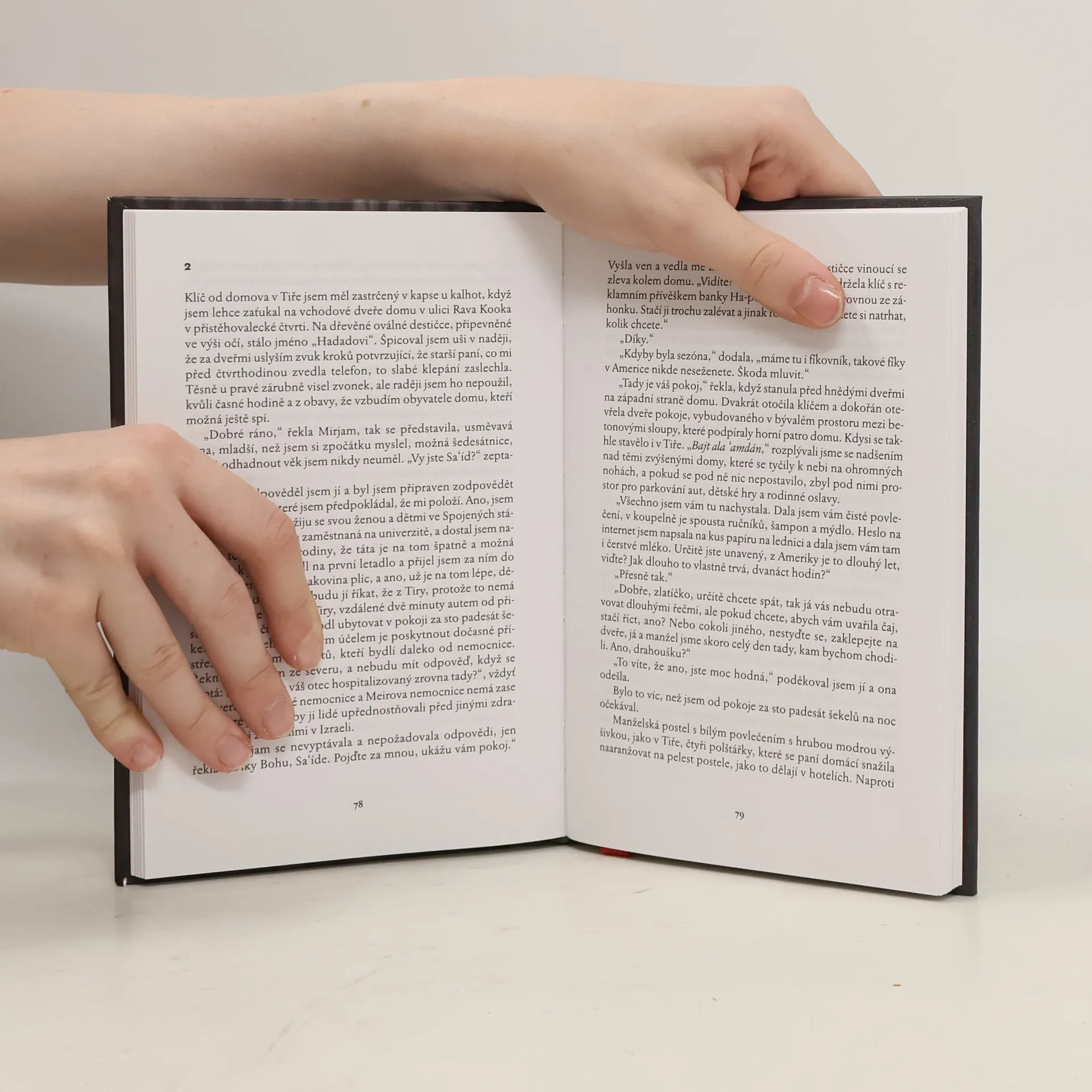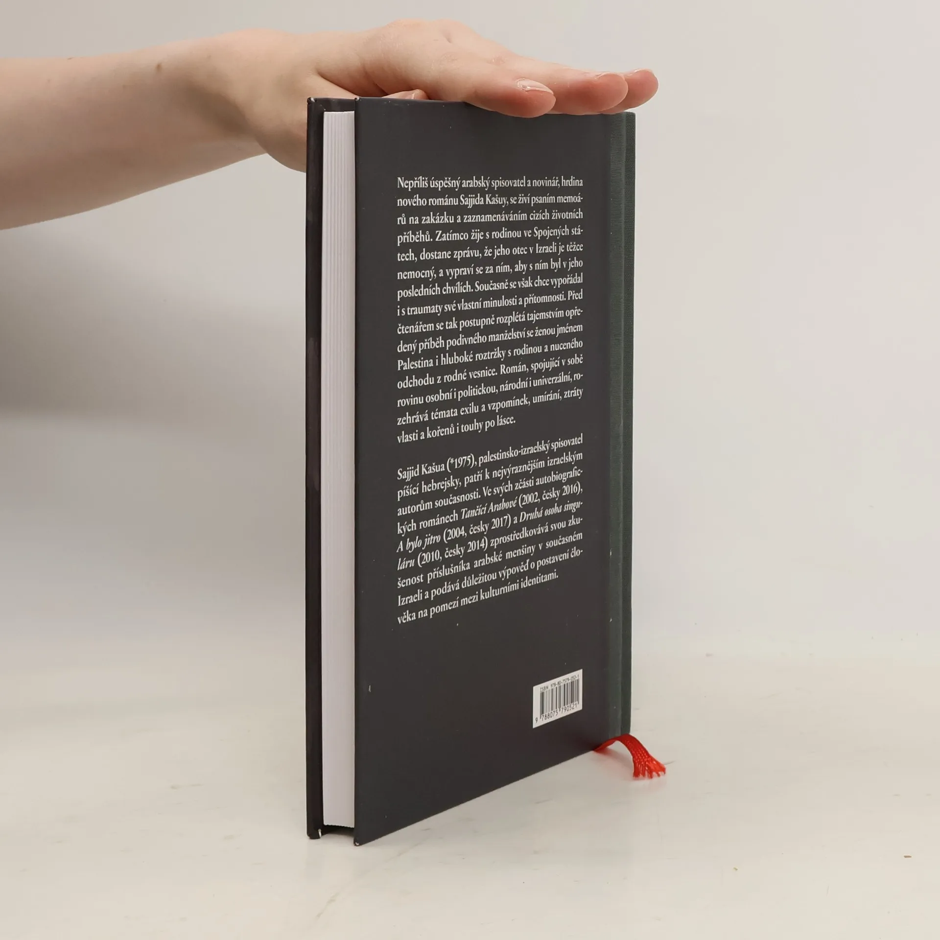 Nepříliš úspěšný arabský spisovatel a novinář, hrdina nového románu Sajjida Kašuy, se živí psaním memoárů na zakázku a zaznamenáváním cizích životních příběhů. Zatímco žije s rodinou ve Spojených státech, dostane zprávu, že jeho otec v Izraeli je těžce nemocný, a vypraví se za ním, aby s ním byl v jeho posledních chvílích. Současně se však chce vypořádal i s traumaty své vlastní minulosti a přítomnosti. Před čtenářem se tak postupně rozplétá tajemstvím opředený příběh podivného manželství se ženou jménem Palestina i hluboké roztržky s rodinou a nuceného odchodu z rodné vesnice. Román, spojující v sobě rovinu osobní i politickou, národní i univerzální, rozehrává témata exilu a vzpomínek, umírání, ztráty vlasti a kořenů i touhy po lásce. Je vrcholem dosavadní Kašuovy tvorby a potvrzuje jej v roli neobyčejně originálního hlubokého autora postihujícího odcizení v současném světě, autora, jehož tvůrčí hybnou silou je tragická rozpolcenost mezi vrozenými arabskými kořeny a osvojenou židovskou kulturou.