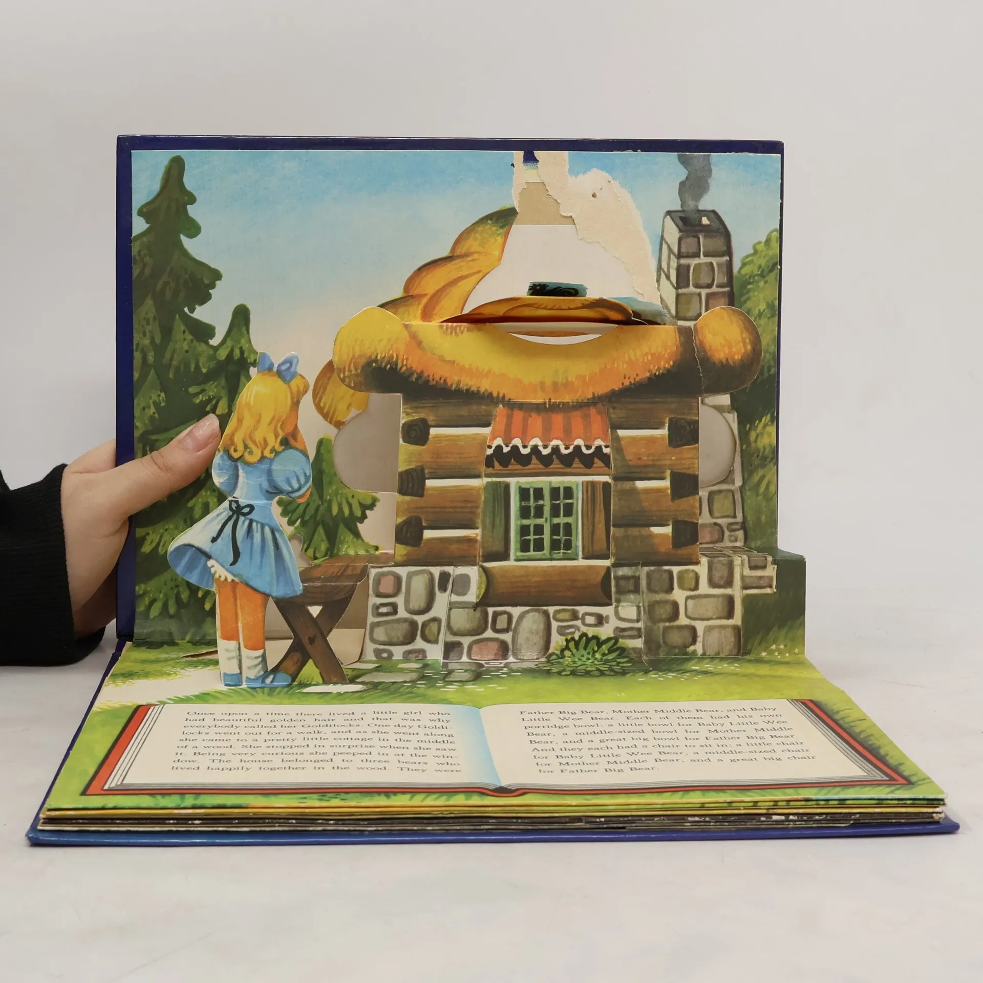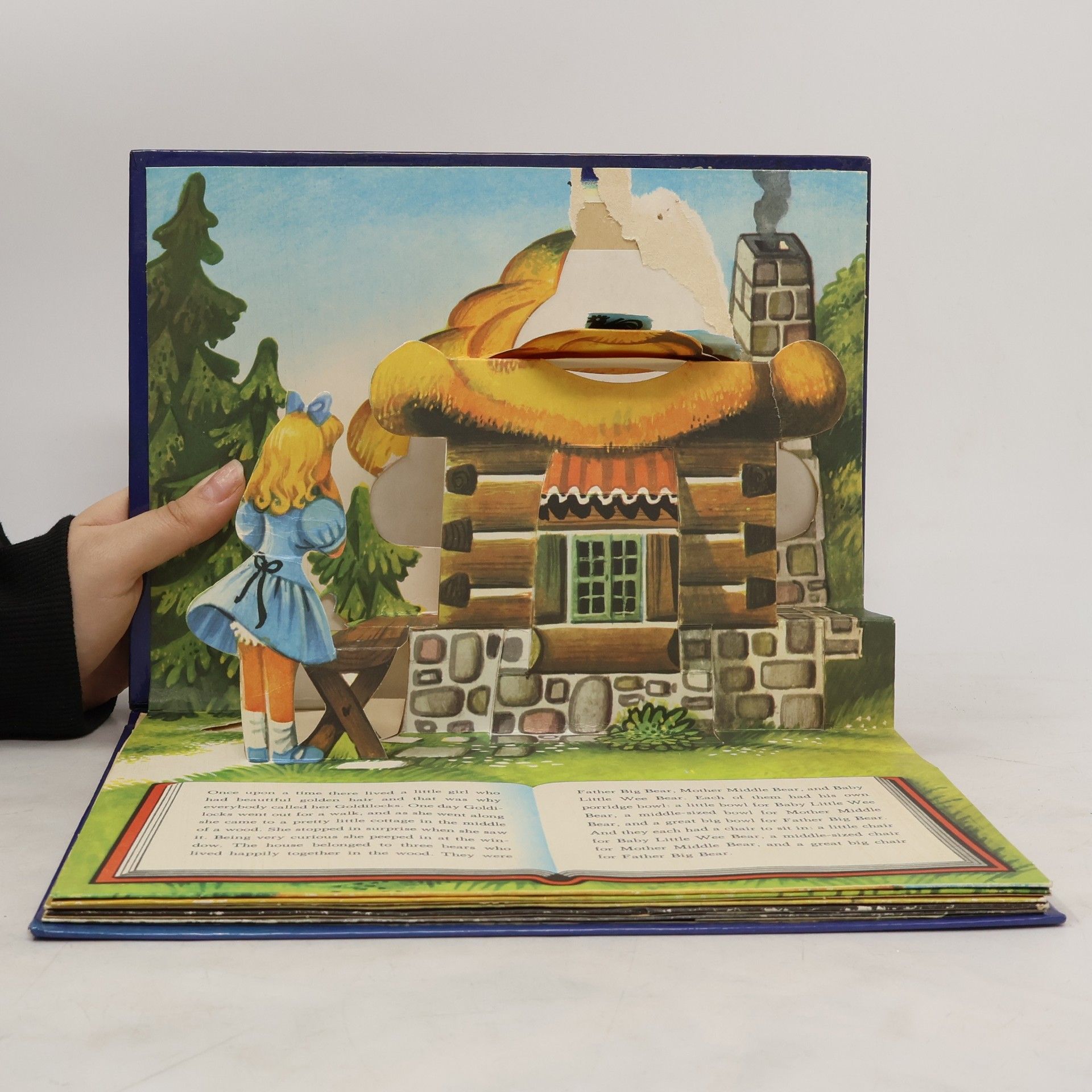 The story of Goldilocks and the three bears is illustrated in six pop-up scenes.