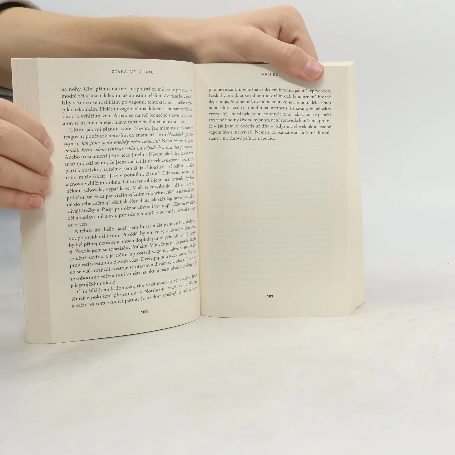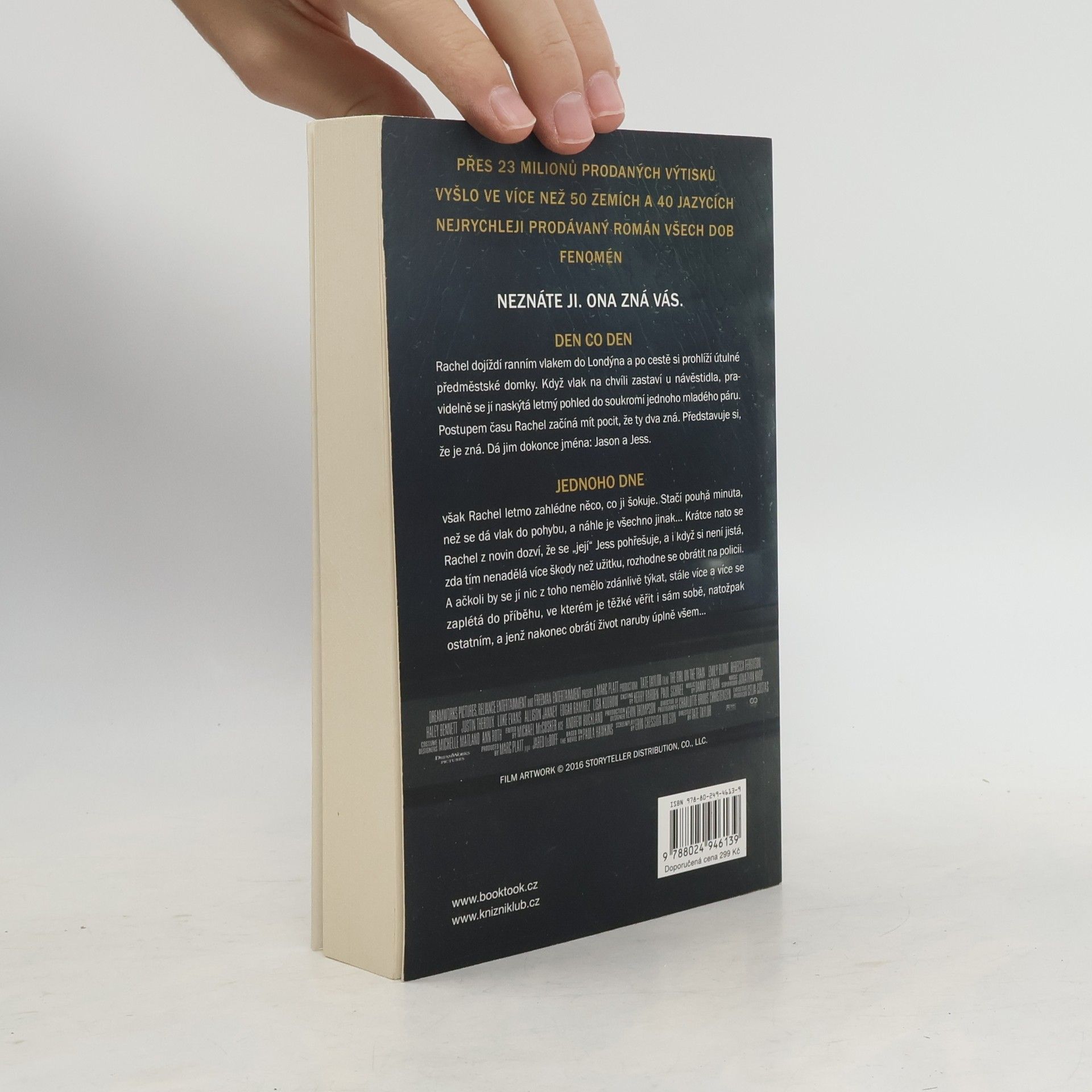Román, který si podmanil všechny žebříčky bestsellerů na obou stranách Atlantiku, trhá rekordy v rychlosti prodeje a je kritikou označován za letošní Zmizelou. Potřebujete vědět víc? Rachel dojíždí ranním vlakem do Londýna. Den co den si prohlíží útulné předměstské domky, a když vlak na chvíli zastaví u návěstidla, naskýtá se jí pravidelně letmý pohled do soukromí mladého páru. Postupem času Rachel začíná mít pocit, že ty dva lidi zná. Představuje si, že je zná. Dá jim dokonce jména: Jason a Jess. Jednoho dne však zahlédne něco, co ji šokuje. Stačí pouhá minuta, než se dá vlak zase do pohybu, a náhle je všechno jinak… Krátce nato se Rachel dozví, že se „její“ Jess pohřešuje, a proto se rozhodne obrátit na policii. Není si jistá, zda tím nenadělá více škody než užitku, zatímco se stále více zaplétá do příběhu, který není její, ale jenž nakonec obrátí naruby život úplně všem…