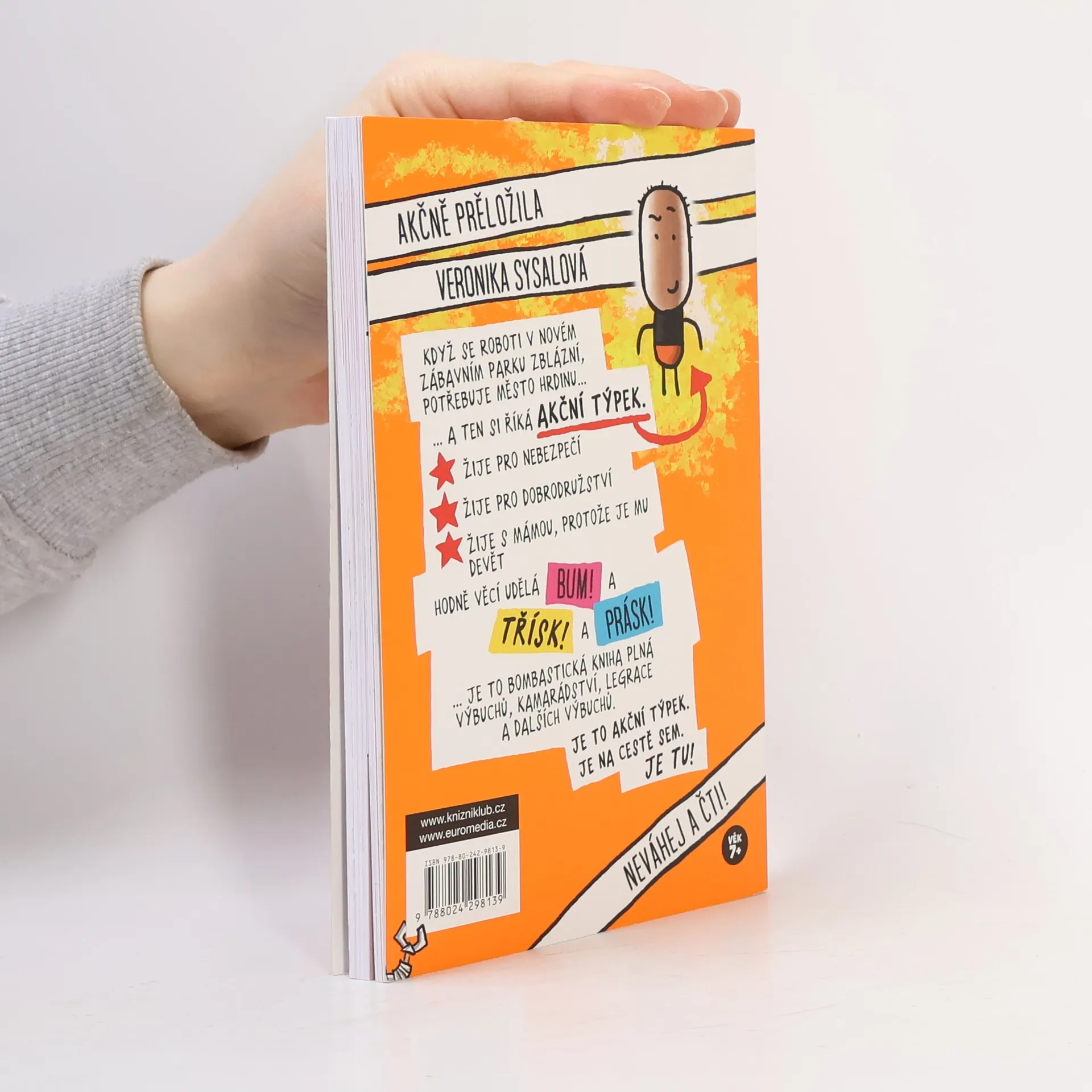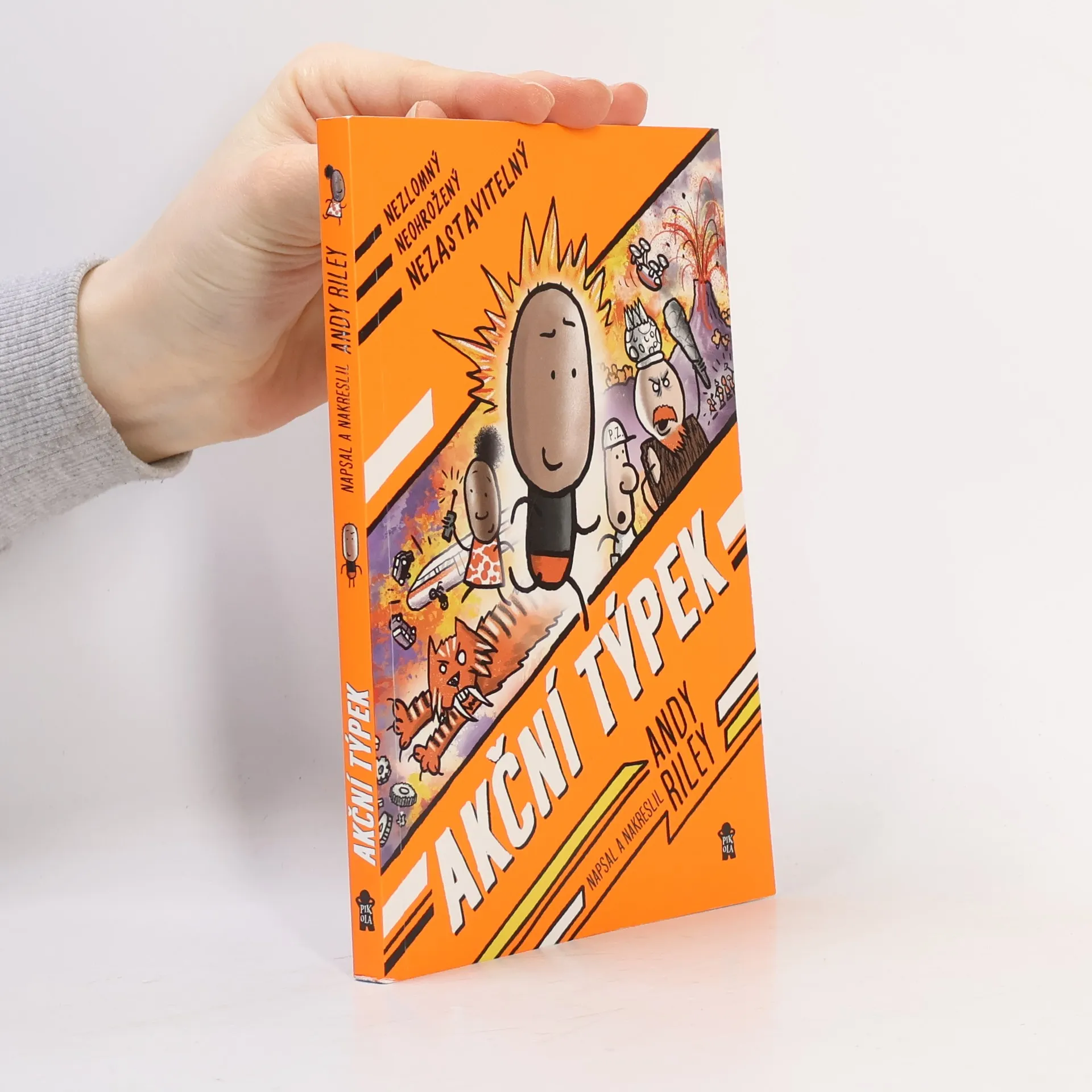 Akční týpek je opravdový akční hrdina! Skáče z vrtulníků, rozbíjí lodě, běhá po vrcholcích jeřábů a vychází z budov těsně před výbuchem. Je to ten nejodvážnější týpek, jaký kdy existoval! Až na to, že se bojí pavouků. (Ale to nikdy nikomu neříkejte!) Když se v zábavním parku plném robotů stane neštěstí, musí zasáhnout. Koneckonců nikdo jiný není takový blázen, aby tam jen tak vešel a všechny zachránil!