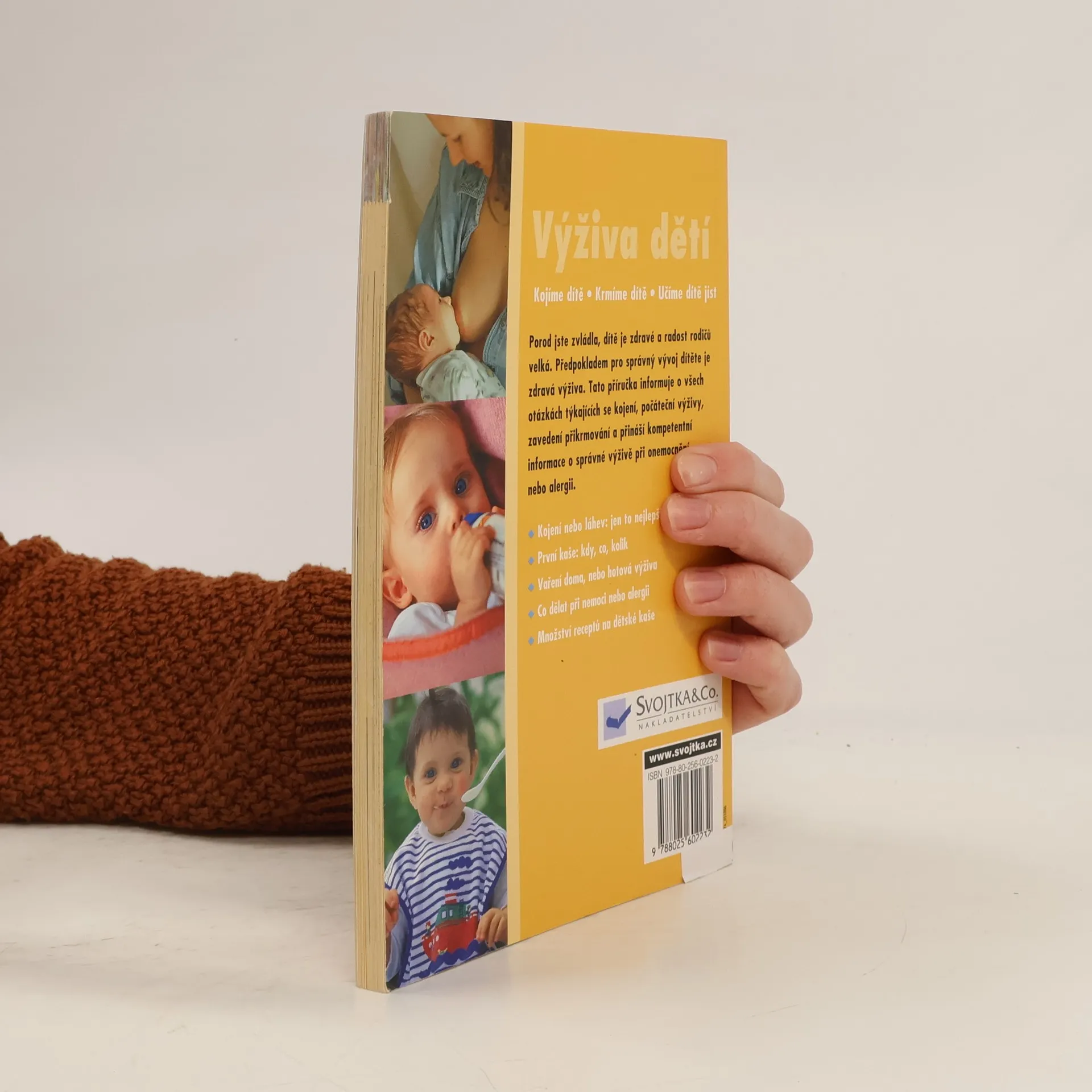 Předpokladem pro správný vývoj dítěte je zdravá výživa. Tato příručka informuje o všech otázkách týkajících se kojení, počáteční výživy, zavedení přikrmování a přináší kompetentní informace o správné výživě při onemocnění, alergii apod. Knížka vám poradí, zda preferovat kojení nebo láhev, kdy přejít na první kaše, kdy co a kolik vařit, zda vařit doma nebo používat hotovou výživu, jak se projeví nemoc nebo alergie a najdete zde i množství receptů na dětské kašičky.