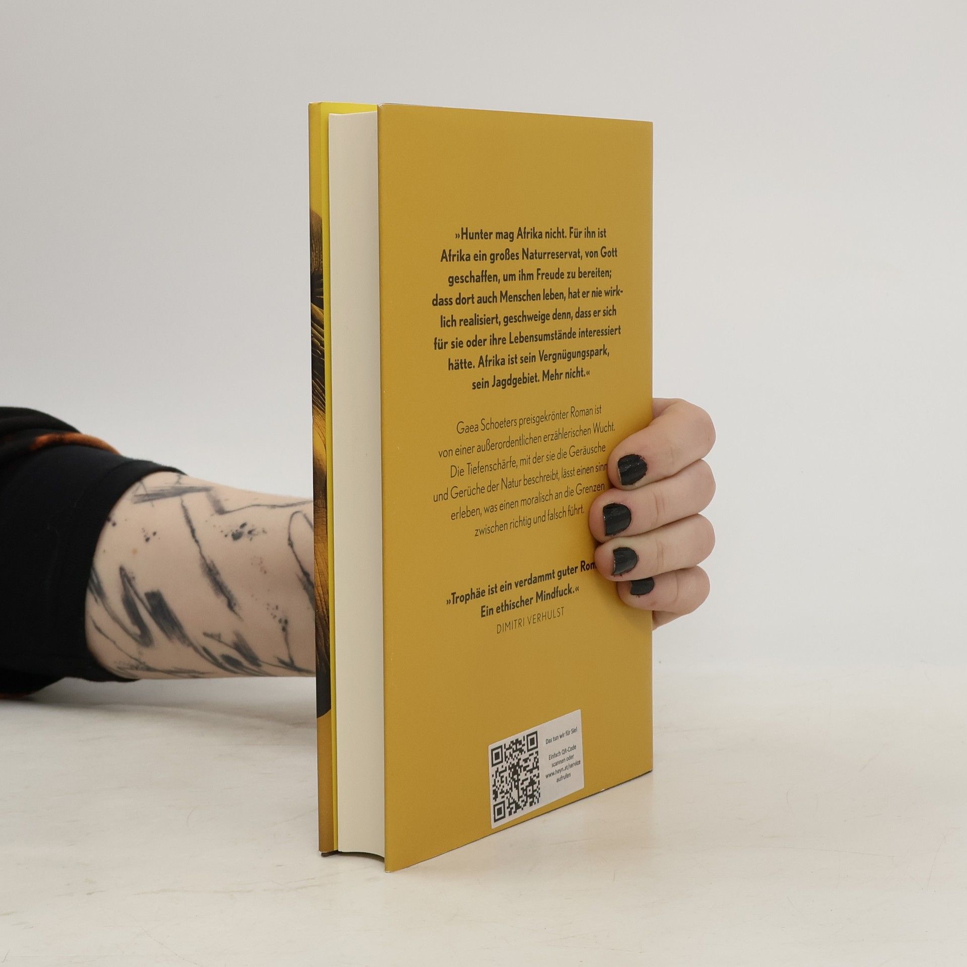Gaea Schoeters’ Roman ist ein „ethischer Mindfuck“ (Dimitri Verhulst) – provokant, radikal und eine erzählerische Ausnahmeerscheinung. Am Ende bleibt die Frage: Was ist ein Menschenleben wert? Gaea Schoetersʼ preisgekrönter Roman ist von einer außerordentlichen erzählerischen Wucht. Die Tiefenschärfe, mit der sie die Geräusche und Gerüche der Natur beschreibt, lässt einen sinnlich erleben, was einen moralisch an die Grenzen zwischen Richtig und Falsch führt. Hunter, steinreich, Amerikaner und begeisterter Jäger, hatte schon fast alles vor dem Lauf. Endlich bietet ihm sein Freund Van Heeren ein Nashorn zum Abschuss an. Hunter reist nach Afrika, doch sein Projekt, die Big Five vollzumachen, wird jäh von Wilderern durchkreuzt. Hunter sinnt auf Rache, als ihn Van Heeren fragt, ob er schon einmal von den Big Six gehört habe. Zunächst ist Hunter geschockt, aber als er die jungen Afrikaner beim flinken Jagen beobachtet … Ein Roman von radikaler Konsequenz.