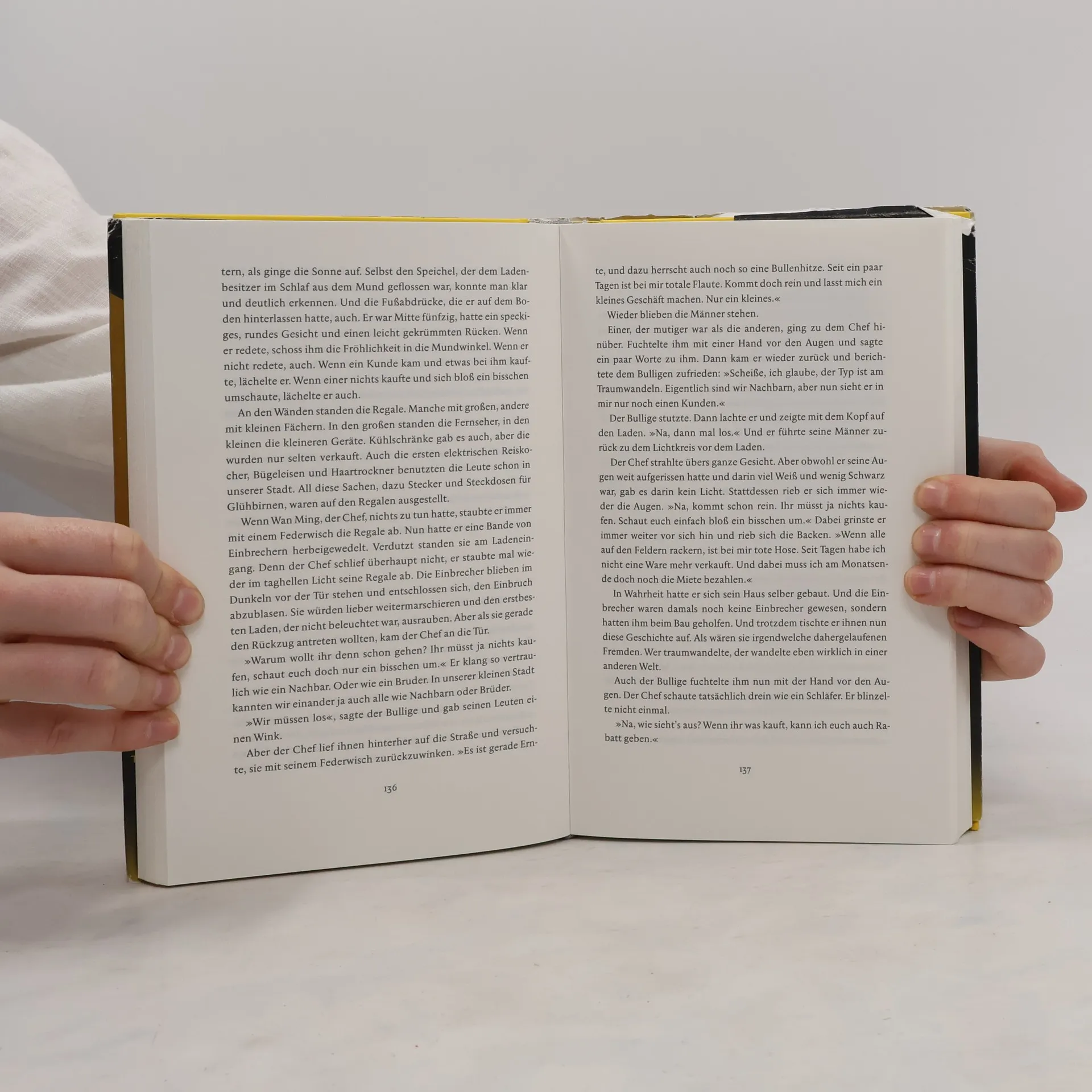 In einem kleinen Dorf in den Bergen, wie es in China zahllose gibt, lebt der vierzehnjährige Li Niannian mit seinen Eltern, die einen Bestattungsladen betreiben. Niannian bezeichnet sich als Niemand, »ein Staubkorn auf einem Haufen Sesam, eine Nisse auf einem Kamel, einem Ochsen oder Schaf«. Alle nennen ihn den dummen Niannian, doch gerade er wird zum unbestechlichen Chronisten der unheimlichen Begebenheiten, die sein Dorf heimsuchen und sich im Laufe einer zunehmend bizarrer werdenden Nacht zutragen. Zunächst bemerkt er ein seltsames Ereignis: Statt sich bettfertig zu machen, tauchen immer mehr Nachbarn auf den Straßen und Feldern auf und gehen ihren Geschäften nach, als wäre die Sonne noch nicht untergegangen. Ratlos bemerkt er, dass sie traumwandeln und dabei alle ihre Wünsche ausleben, die sie während der wachen Stunden unterdrückt haben. Immer mehr Traumwandler tauchen auf, und es dauert nicht lange, bis die Gemeinde im Chaos versinkt. Als der Morgen anbricht, die Sonne aber ausbleibt und die Nacht nicht zu enden droht, erhält das über Jahre von seinem Vater gesammelte Leichenfett der Kremierten eine neue Bedeutung, und es liegt nun an ihm und Niannian, die Stadt mit einem Sonnenaufgang in den neuen Tag zu führen.