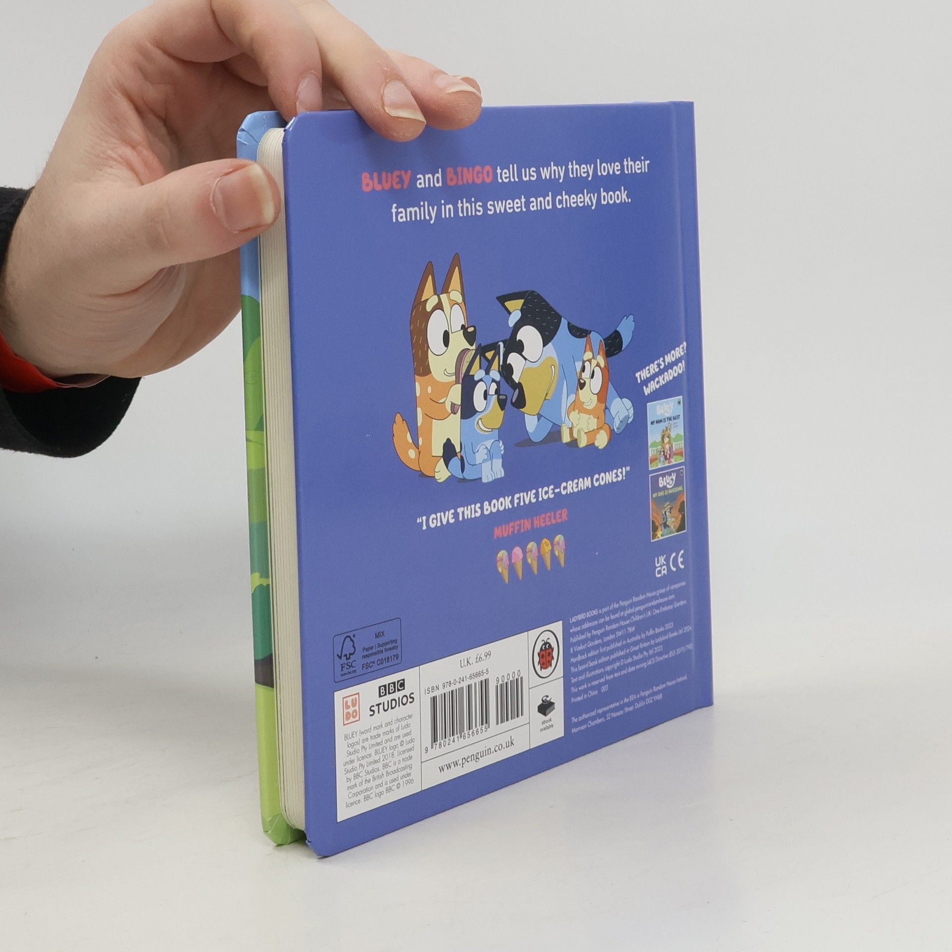 Bluey and Bingo share all the reasons why they love their family! From croc-catching to Horsey Rides, Bluey and Bingo discover that the Heeler family is full of laughter, playing, dancing and most importantly, love. Want more Bluey? Also available: Bluey: All About Bingo Bluey: Mini Bluey Bluey: Hammerbarn