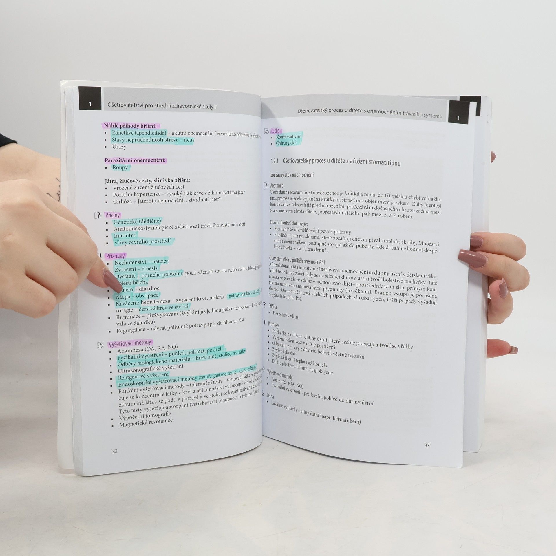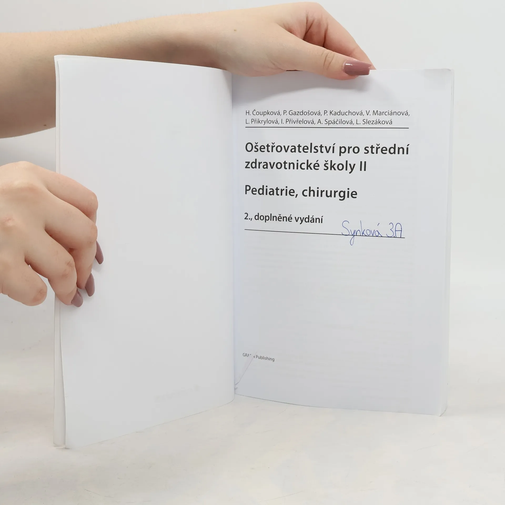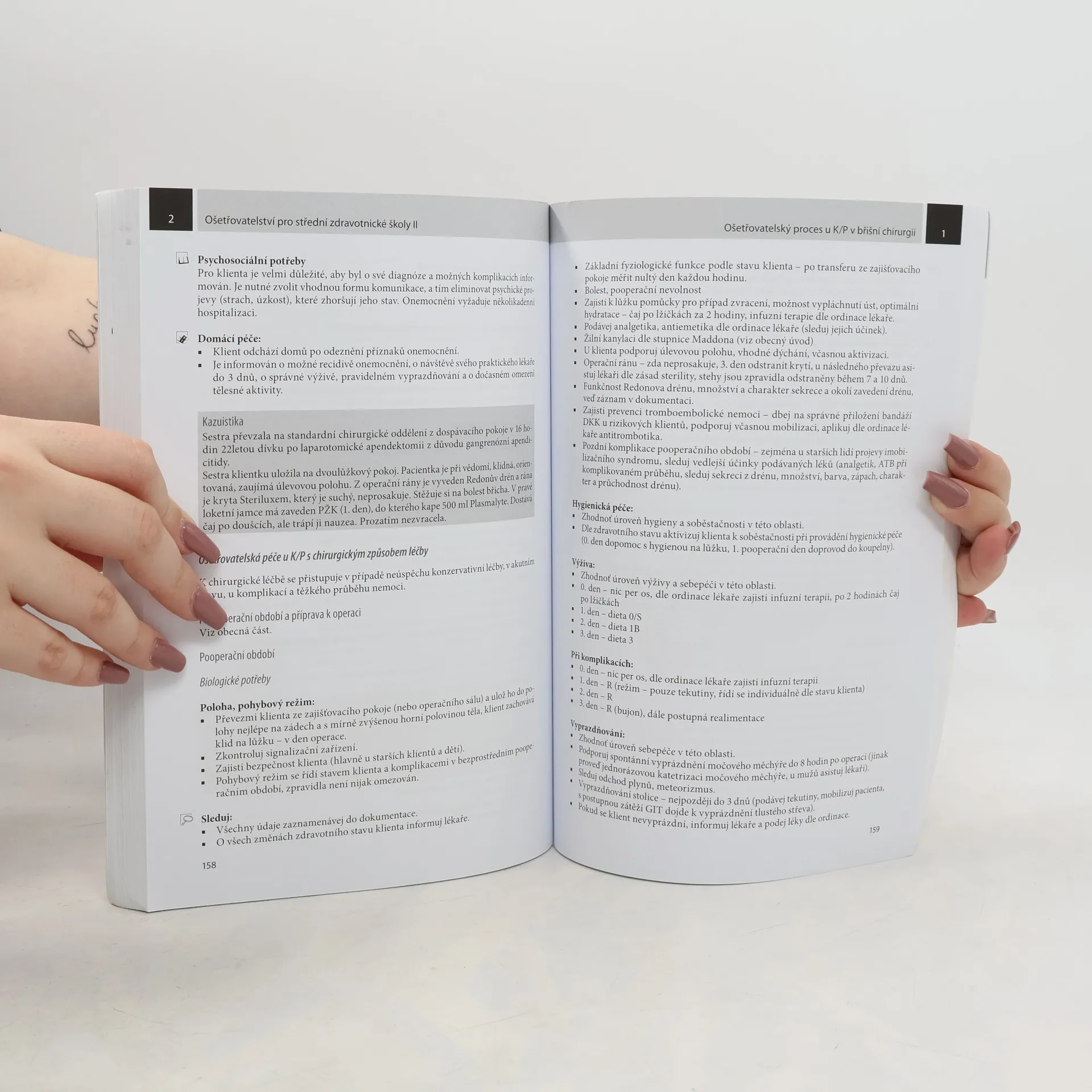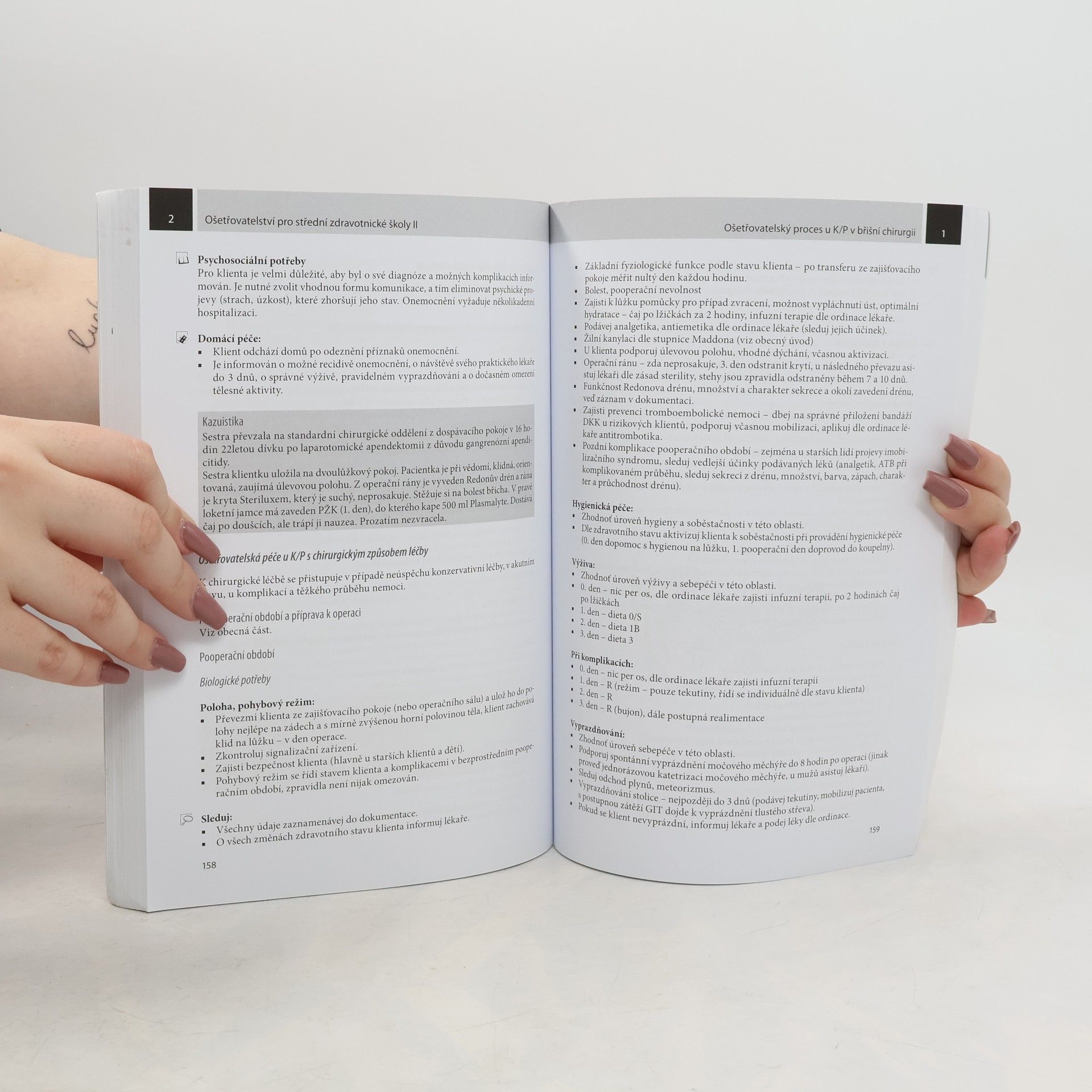 Druhé, doplněné vydání úspěšné učebnice zaměřené na ošetřovatelský proces v pediatrii a chirurgii je určené pro žáky 3. a 4. ročníku SZŠ jako základní učebnicí předmětu ošetřovatelství. Obsahuje informace a znalosti potřebné k vykonání maturitní zkoušky. Učebnici budou doplňovat dva pracovní sešity. Nové vydání učebnice je doplněné o moderní informace, vyšetřovací metody, postupy v léčbě a v péči o nemocného.
