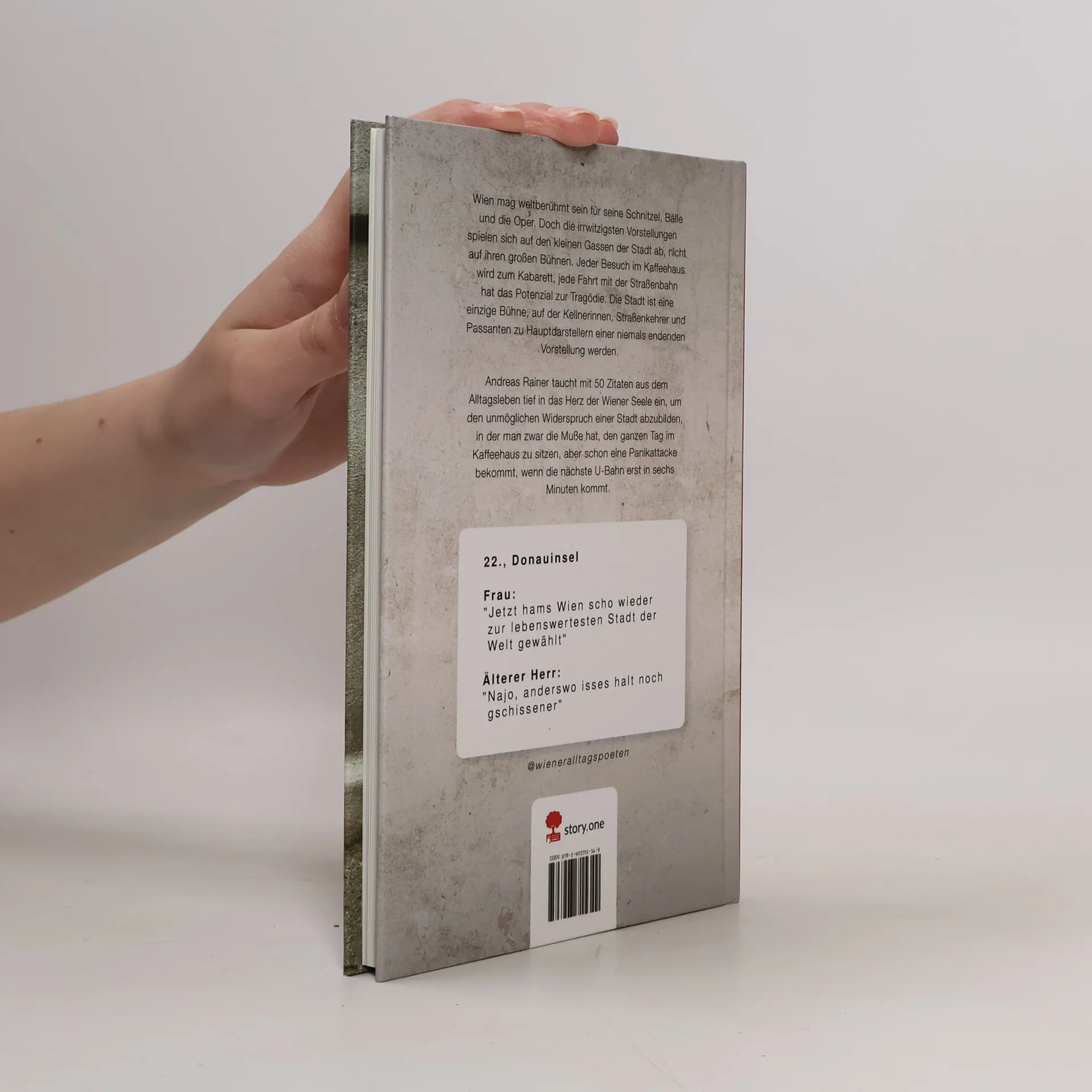 Wien mag weltberühmt sein für seine Schnitzel, Bälle und die Oper. Doch die irrwitzigsten Vorstellungen spielen sich auf den kleinen Gassen der Stadt ab, nicht auf ihren großen Bühnen. Jeder Besuch im Kaffeehaus wird zum Kabarett, jede Fahrt mit der Straßenbahn hat das Potenzial zur Tragödie. Wo auch immer man hingeht, die Stadt ist eine einzige Bühne, auf der Kellnerinnen, Straßenkehrer und Passanten zu Hauptdarstellern einer niemals endenden Vorstellung werden. Andreas Rainer taucht mit 50 Zitaten aus dem Alltagsleben tief in das Herz der Wiener Seele ein, um den unmöglichen Widerspruch einer Stadt abzubilden, in der man zwar die Muße hat, den ganzen Tag im Kaffeehaus zu sitzen, aber schon eine Panikattacke bekommt, wenn die U-Bahn erst in sechs Minuten kommt.