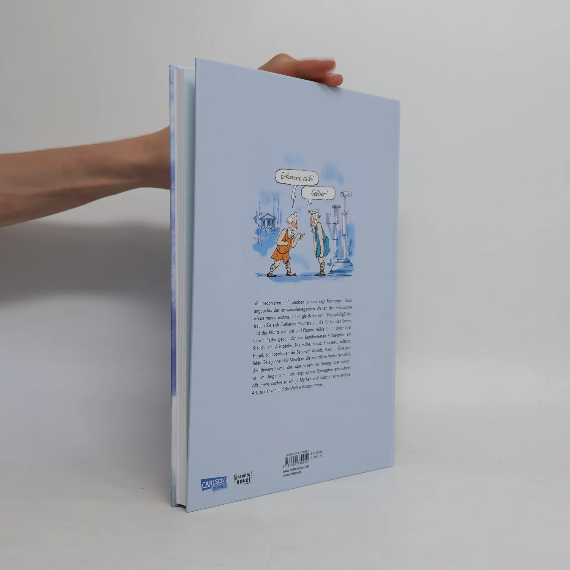 Menschliches, Allzumenschliches Ob Nietzsche, Kant oder Aristoteles – kein Philosoph kann sich dem modernen, feministischen Blick von Catherine Meurisse entziehen. Mit viel Humor widmet sie sich den populärsten philosophischen Theorien der Geschichte. Eine Graphic Novel voller unterhaltsamer Dialoge und burlesker Inszenierungen, die die Regeln und Codes des universellen philosophischen Denkens ausloten und hinterfragen. Freud, Sokrates, Schopenhauer, Voltaire, Rousseau, Simone de Beauvoir ... Sie alle sind hier versammelt. Um diese Philosoph*innen zu verstehen, inszeniert Catherine einen Austausch zwischen ihnen und einer modernen jungen Frau, die fest entschlossen ist, ihr Weltbild auf die Probe zu stellen. Die Leichtigkeit und der Humor sind hier der Schlüssel zum Erfolg.