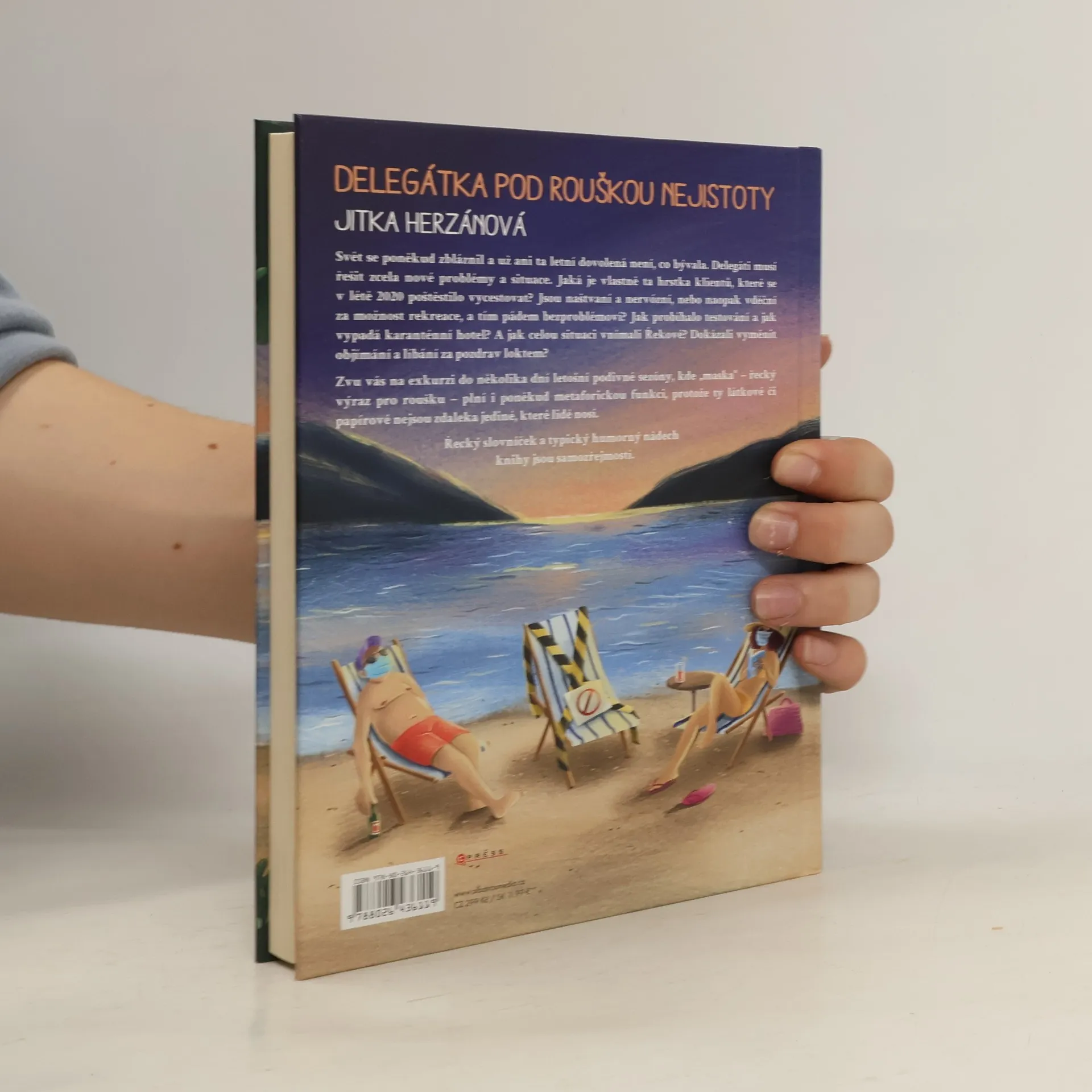 Přibalte si do kufru sbírku zábavných zážitků z odvrácené strany dovolené! Svět se poněkud zbláznil a už ani ta letní dovolená není, co bývala. Delegáti musí řešit zcela nové problémy a situace. Jaká je vlastně ta hrstka klientů, které se v létě 2020 poštěstilo vycestovat? Jsou naštvaní a nervózní, nebo naopak vděční za možnost rekreace, a tím pádem bezproblémoví? Jak probíhalo testování a jak vypadá karanténní hotel? A jak celou situaci vnímali Řekové? Dokázali vyměnit objímání a líbání za pozdrav loktem? Zvu vás na exkurzi do několika dní letošní podivné sezóny, kde „maska“ – řecký výraz pro roušku – plní i poněkud metaforickou funkci, protože ty látkové či papírové nejsou zdaleka jediné, které lidé nosí. Řecký slovníček a typický humorný nádech knihy jsou samozřejmostí.