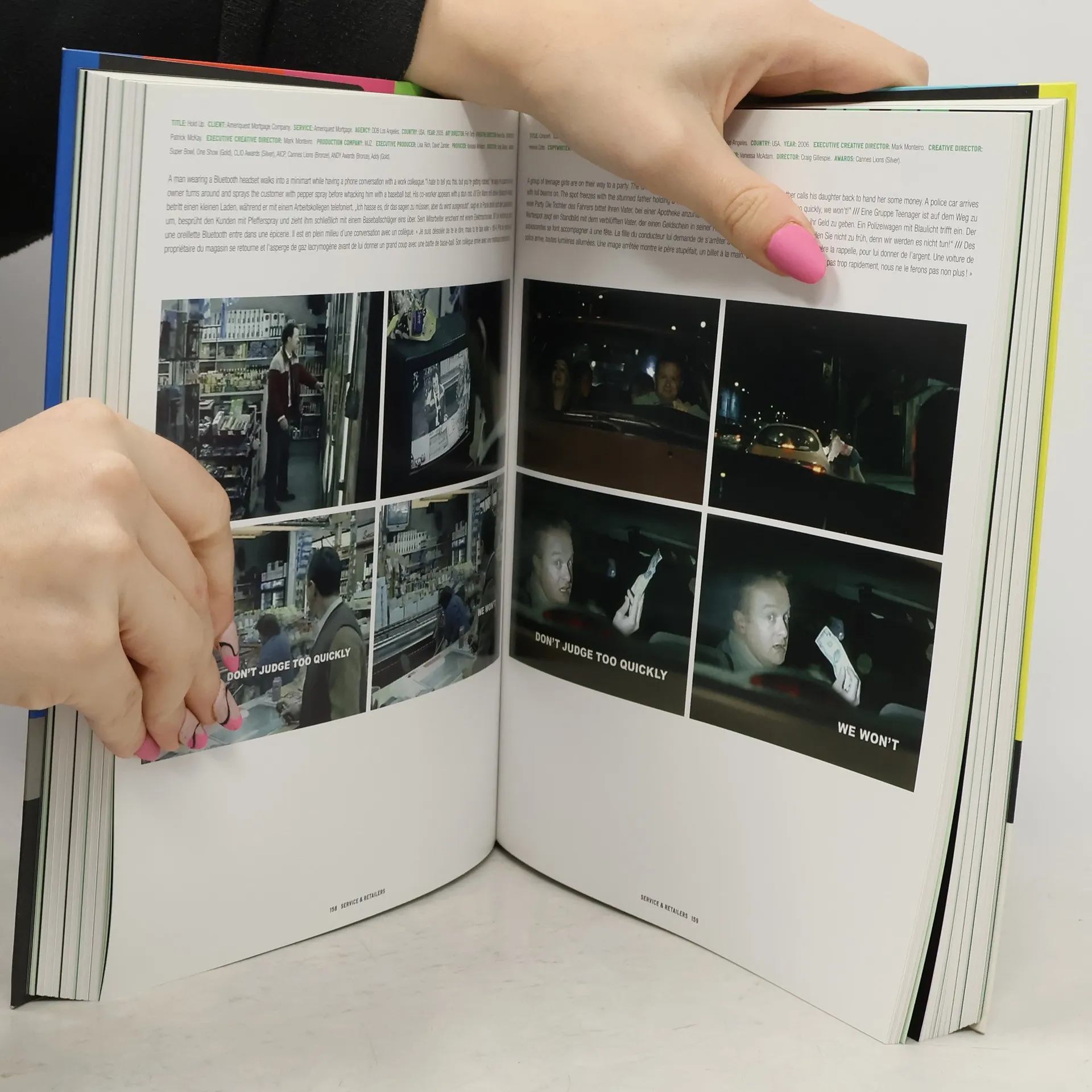 Obwohl wir meist umschalten oder Bier holen gehen, wenn Werbung droht, gibt es doch tatsächlich Werbespots, die eher Kurzfilmen gleichen und zum Nachdenken anregen, und nicht nur jene penetranten, eindimensionalen und aufdringlichen Spots, die wir alle kennen und hassen. Dabei ist es egal, ob der neueste Sneaker von Nike beworben wird oder die Gefahren des zu schnellen Fahrens bewusst gemacht werden. Ein Werbespot hat in weniger als einer Minute eine Menge zu kommunizieren. Also sind besonders findige und kreative Köpfe nötig, um herauszufinden, wie man Werbung so gestaltet, dass sie gleichzeitig unterhaltsam ist, Zusammenhänge erläutert und überdies die gewünschte Botschaft vermittelt. Dieses Buch trägt die besten Werbespots der letzten Jahre zusammen. Die Kapitel sind nach Themen geordnet, z. B. Essen und Trinken, Autos, Sport, Technologie und Medien. Die jeweiligen Einträge werden mit Screenshots, einer Beschreibung des Spots und einer Liste der Credits vorgestellt.