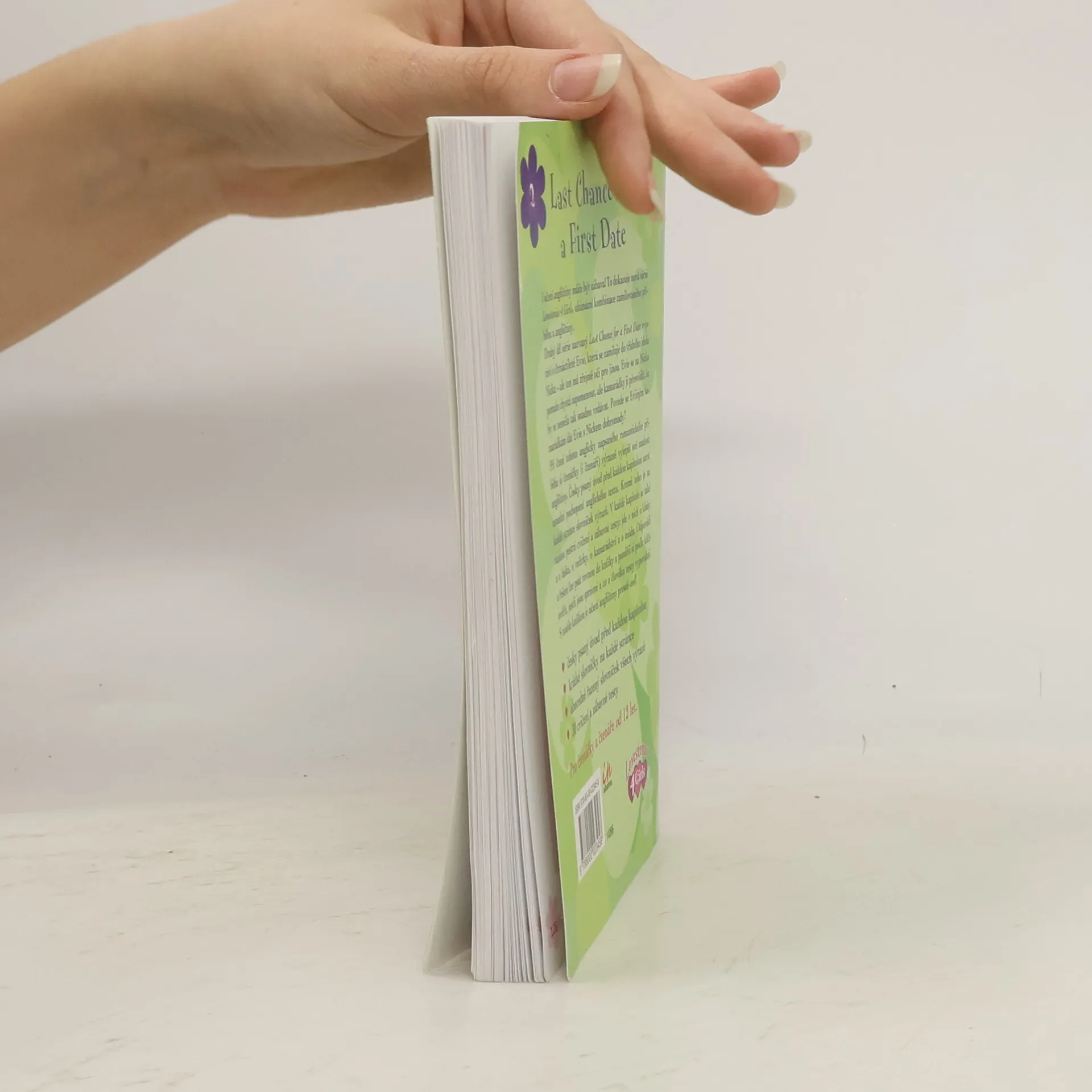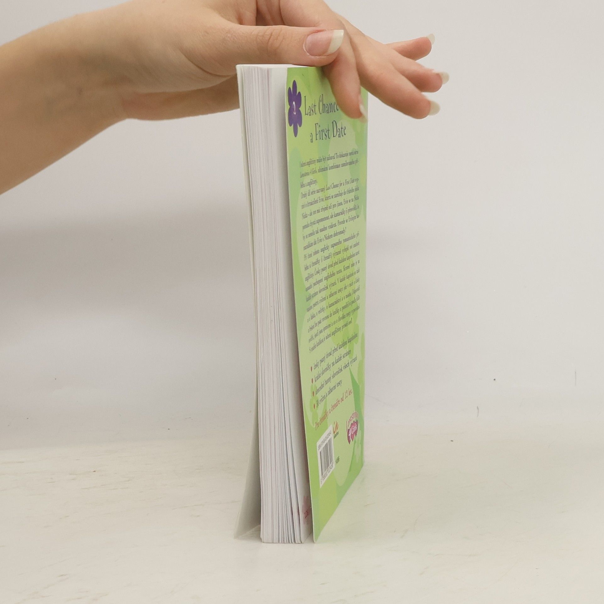 Nová série Lovestories 4 Girls je ultimátní kombinací zamilovaného příběhu a angličtiny! Druhý díl série nazvaný Last Chance for a First Date vypráví o čtrnáctileté Evie, která se zamiluje do třídního idola Nicka – ale ten má zřejmě oči jen pro jinou. Evie se na Nicka pomalu chystá zapomenout, ale kamarádky ji přesvědčí, že by se neměla tak snadno vzdávat. Povede se Eviiným kamarádkám dát Evie s Nickem dohromady? Při čtení tohoto anglicky napsaného romantického příběhu si čtenářky (i čtenáři) výrazně vylepší své znalosti angličtiny. Česky psaný úvod před kapitolou navíc usnadní pochopení anglického textu. Kromě toho je na každé stránce slovníček výrazů. V každé kapitole se také najdou pestrá cvičení a zábavné testy: jde v nich o kluky a o lásku, o večírky, o kamarádství a o módu. Odpovědi a řešení lze psát rovnou do knížky a později si podle klíče ověřit, jestli jsou správné a co o člověku testy vypovídají. S touhle knížkou je učení angličtiny prostě cool!