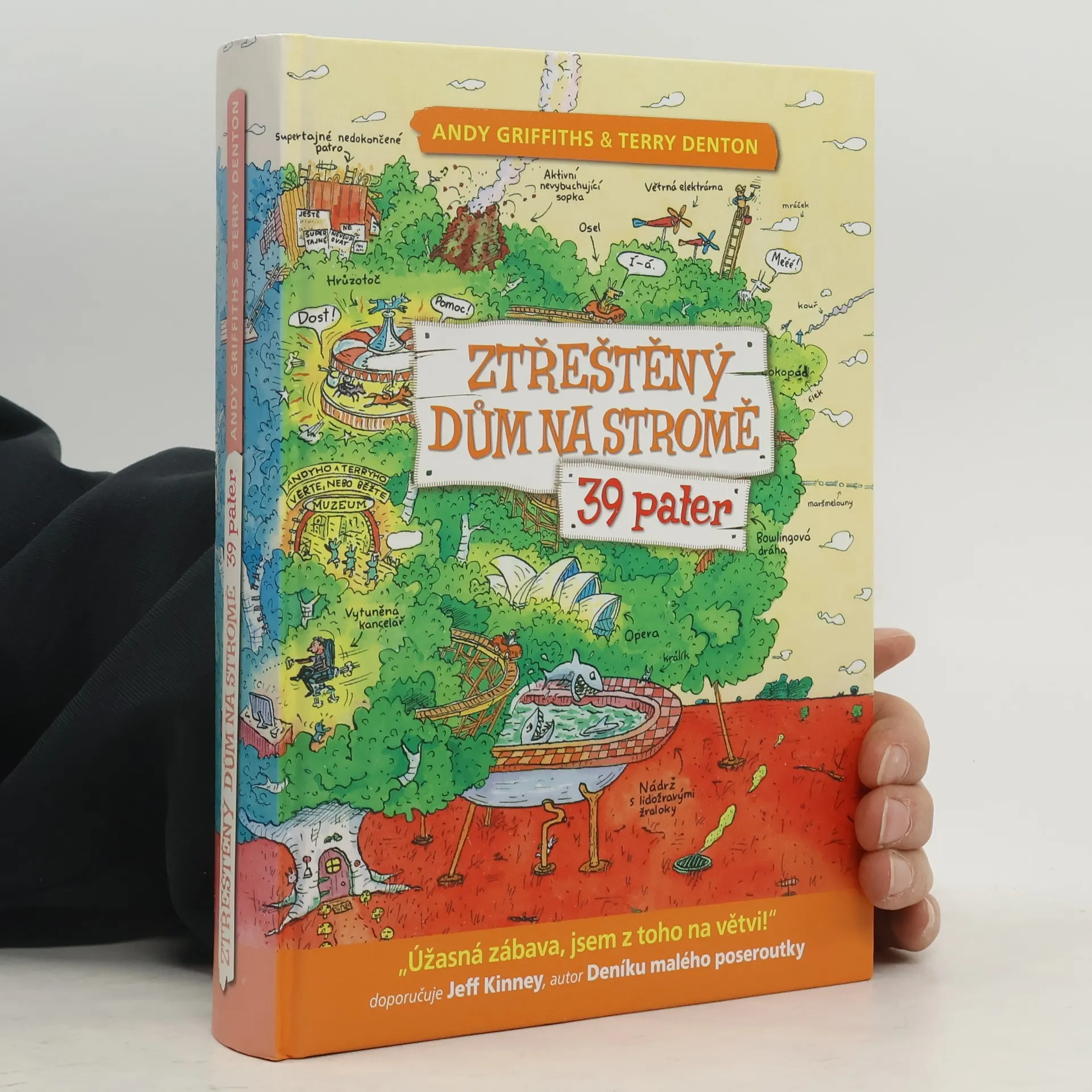 Pojďte se s námi podívat za Andym a Terrym do jejich nově rozšířeného devětatřicetipatrového domu na stromě! Čeká vás 13 zbrusu nových, akčních poschodí. Najdete tu například nejděsivější horskou dráhu na světě, operní dům, buldozerové bitevní pole, diskotéku se světelnou podlahou a obří disko-koulí, arénu s boxovacím slonem, který si říká Troubinátor, špičkově vybavenou kancelář s opakovacími poloautomatickými sešívačkami, laserovými gumami a katapultovacími kancelářskými křesly. Tak na co čekáte? Čtěte!