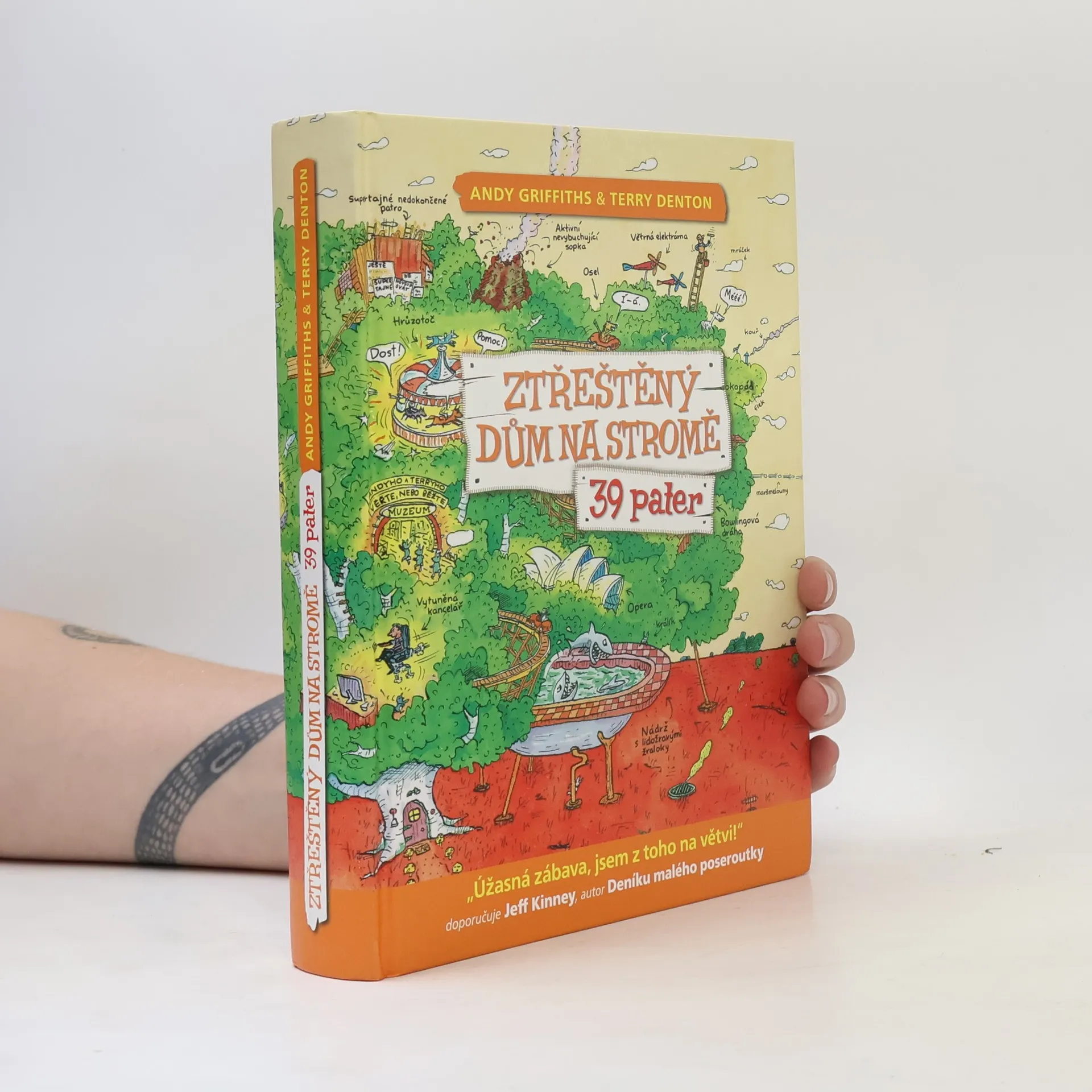 Pojďte se s námi podívat za Andym a Terrym do jejich nově rozšířeného devětatřicetipatrového domu na stromě! Čeká vás 13 zbrusu nových, akčních poschodí. Najdete tu například nejděsivější horskou dráhu na světě, operní dům, buldozerové bitevní pole, diskotéku se světelnou podlahou a obří disko-koulí, arénu s boxovacím slonem, který si říká Troubinátor, špičkově vybavenou kancelář s opakovacími poloautomatickými sešívačkami, laserovými gumami a katapultovacími kancelářskými křesly. Tak na co čekáte? Čtěte!