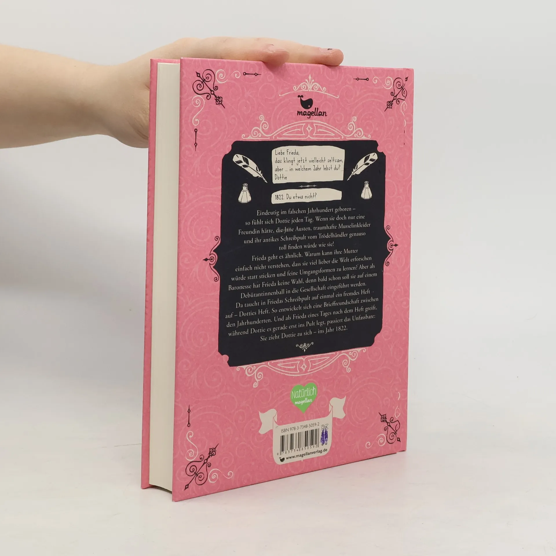 Ein Jugendroman ab 12 Jahren über eine Reise in die Vergangenheit und eine besondere Freundschaft. Es muss an einem Fehler im System liegen, dass Dottie eindeutig im falschen Jahrhundert auf die Welt kam. Viel spannender als Smartphones findet sie nämlich alles aus der Zeit von Jane Austen, weshalb sie sich zum Geburtstag ein antikes Schreibpult wünscht. Frieda geht es ähnlich: Sie würde lieber in ferne Länder reisen, anstatt feine Umgangsformen zu lernen. Doch es steht ein Debütantinnenball an und ihre Mutter, die Baronin von Frankenhofen, will sie in die Gesellschaft einführen. Da taucht in Friedas Schreibpult auf einmal ein Heft auf, in dem ihr jemand eine Nachricht hinterlassen hat. So entwickelt sich eine Brieffreundschaft zwischen den Jahrhunderten. Und als Frieda eines Tages nach dem Heft greift, während Dottie es gerade erst ins Pult legt, passiert das Unfassbare: Sie zieht Dottie zu sich – ins Jahr 1822 und das Abenteuer beginnt!