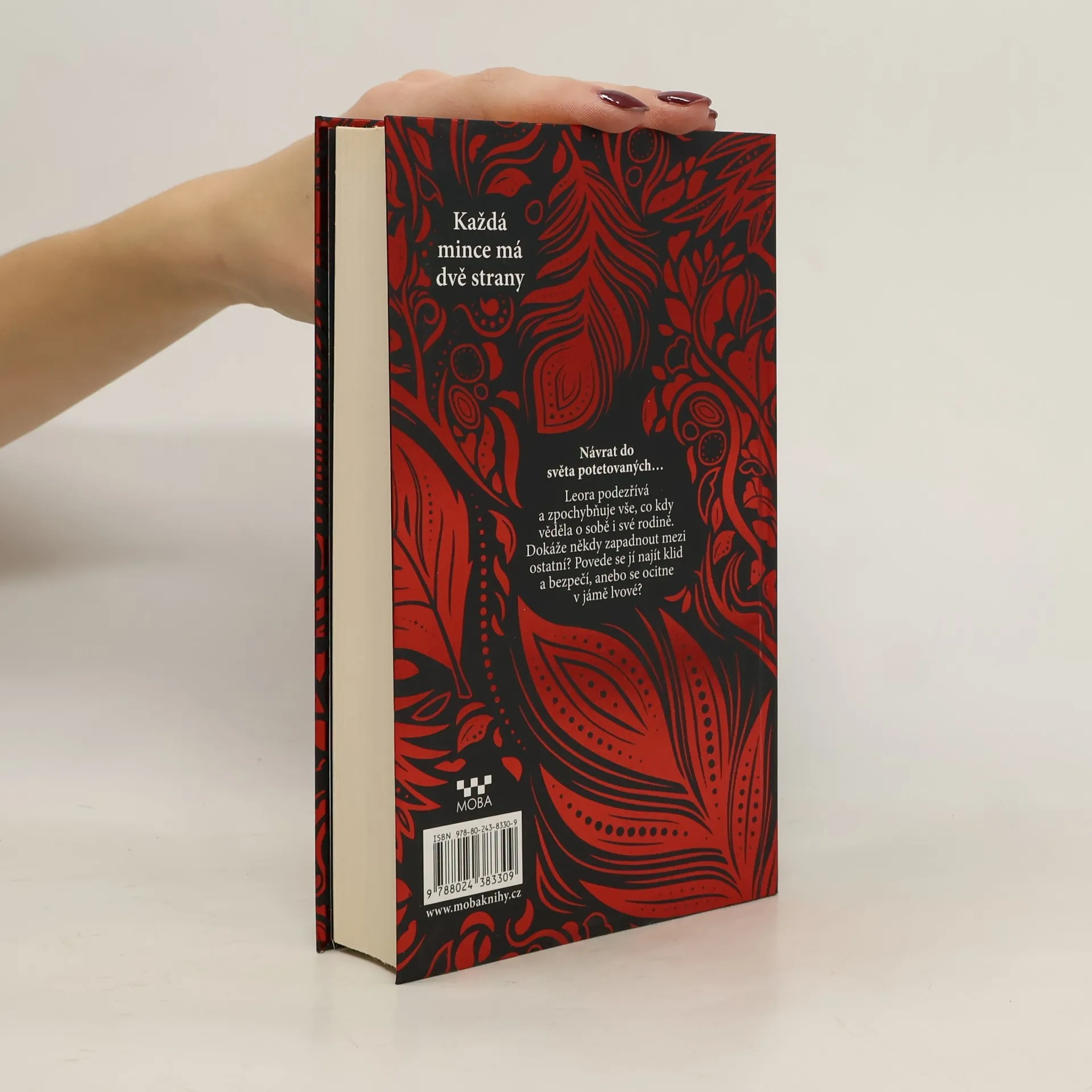 Leora je v šoku: zpochybňuje všechno, co kdy věděla o sobě i své rodině, a všechny ve svém okolí podezřívá. Dokáže se svým původem někdy zapadnout mezi ostatní? Ve snaze najít odpovědi na nespočet otázek, které jí víří hlavou, se vydává na cestu za svou tajemnou kmotrou. Najde tam klid, bezpečí a útěchu, anebo se ocitne v jámě lvové? Nová kniha autorky, jejíž kniha INK – Tajemství kůže se stala světovou literární senzací, krok za krokem odhaluje tajemství Leořiny rodiny i celého společenství, ve kterém se vám každý zásadní životní moment dostane doslova pod kůži – jako tetování.