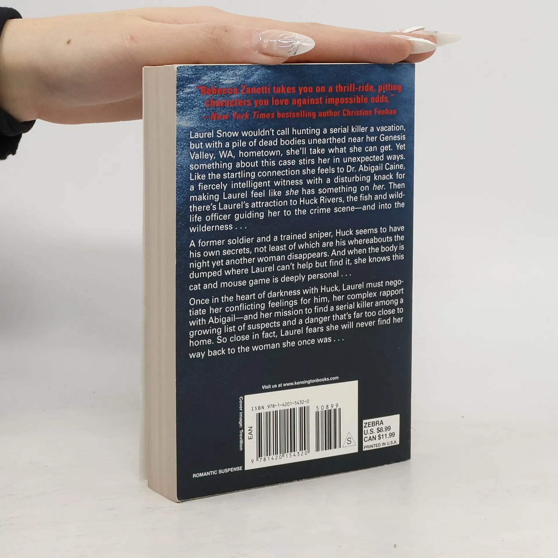 With a serial killer on the loose in Genesis Valley, WA, FBI profiler Laurel Snow must negotiate her conflicting feelings for the fish and wildlife officer she is working with, while dealing with a growing list of suspects and a danger that's far too close to home