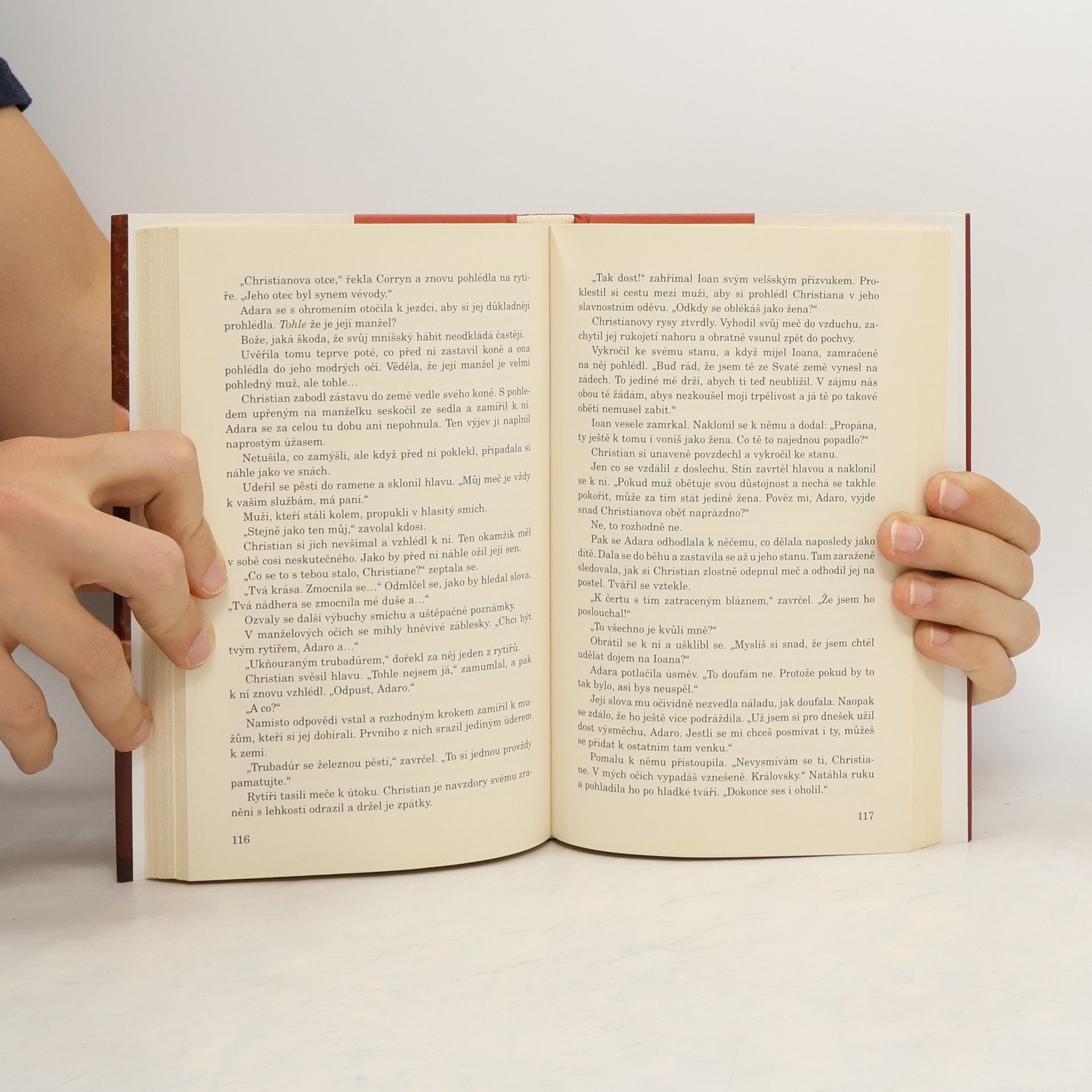 Královna Adara se ocitla v zoufalé situaci. Své zemi vládne sice dobře, ale přesto k ní ze všech stran doléhají hlasy, že žena by neměla panovat bez muže. Adara pochopí, že nemá-li se koruny zmocnit sousední regent, musí bez prodlení vyhledat svého manžela. Celá věc má ovšem háček: Adara jej spatřila naposledy v dětství, kdy za něj byla provdána z dynastických důvodů. Hrdý a životem ošlehaný Christian z Akru nikdy nepoznal, co je to skutečný domov. Po smrti rodičů pobýval v saracénském zajetí a nyní skrývá svou totožnost pod mnišskou kutnou. Jeho těžce nabytý vnitřní klid však rozmetala záhadná dáma, která se jednoho dne zjevila a oznámila mu, že jsou manželé. A jako by toho ještě nebylo dost, vyžaduje po něm, aby s ní odjel, a co víc – aby jí pomohl přivést na svět následníka královského trůnu! Christian si sice nadevše cení své svobody, ale rytířská čest mu nedovolí nechat Adaru napospas nepřátelům. Pevně rozhodnut nepodlehnout tělesným svodům slíbí zoufalé královně pomoc. Bude ovšem jeho vůle dostatečně silná, aby si dokázal odpírat něco, co mu právem patří, a zůstat lhostejný k ženě, jež je pevně odhodlána dobýt jeho srdce?