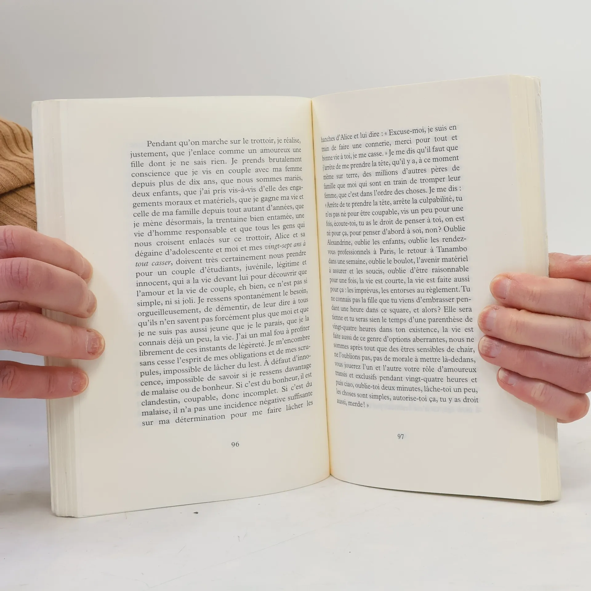 « C’est dans la trentaine que la vie m’a sauté à la figure. J’ai alors cessé de me prendre pour le roi du monde et je suis devenu un adulte comme les autres, qui fait ce qu’il peut avec ce qu’il est. J’ai attendu la trentaine pour ne plus avoir à me demander à quoi cela pouvait bien ressembler, la souffrance et le souci, la trentaine pour me mettre, comme tout le monde, à la recherche du bonheur. Qu’est-ce qui s’est passé ? Je n’ai pas connu de guerre, ni la perte d’un proche, ni de maladie grave, rien. Rien qu’une banale histoire de séparation et de rencontre. »