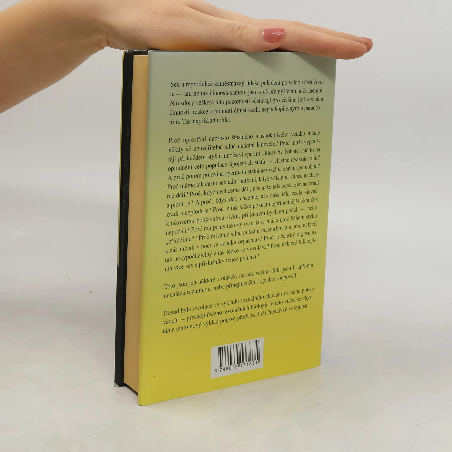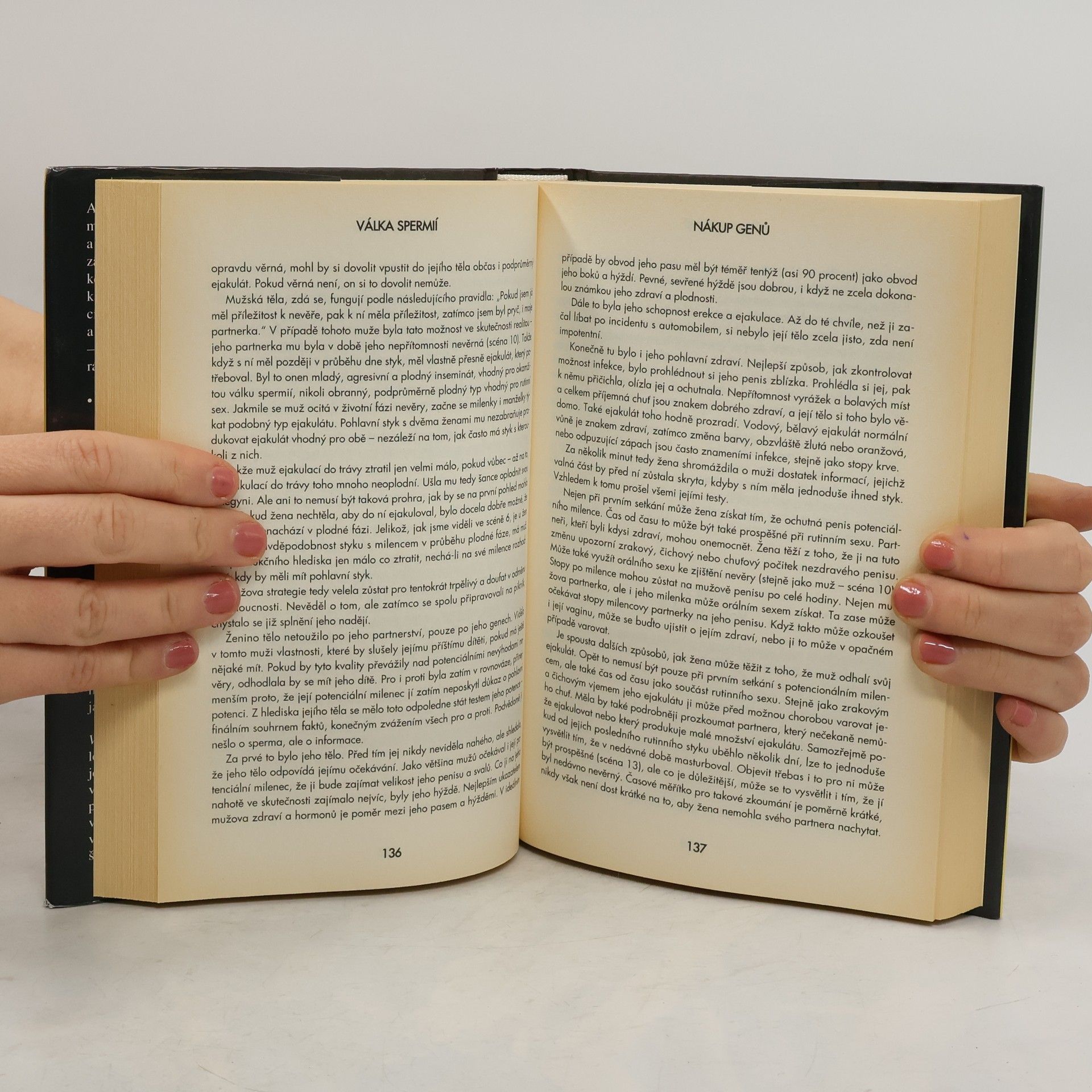 Vysvětlení lidského sexuálního a reprodukčního chování z pohledu evoluční biologie. Základem našeho sexuálního chování je z hlediska evoluční biologie válka spermií. Naše sexuální chování je podřízeno konkurenčnímu boji o nejlepší sperma pro oplodnění vajíčka. Sex tedy řídí vývojové síly, které působily již na naše předky a dodnes působí i na nás, naše tělo. Kniha je napsána jako série fiktivních příběhů, na nichž autor dokazuje svoji teorii a které doplňuje podrobnějším odborným výkladem. Vše se opírá výhradně o biologické zákonitosti; sociální, kulturní či psychologické aspekty jsou zde ponechány stranou.