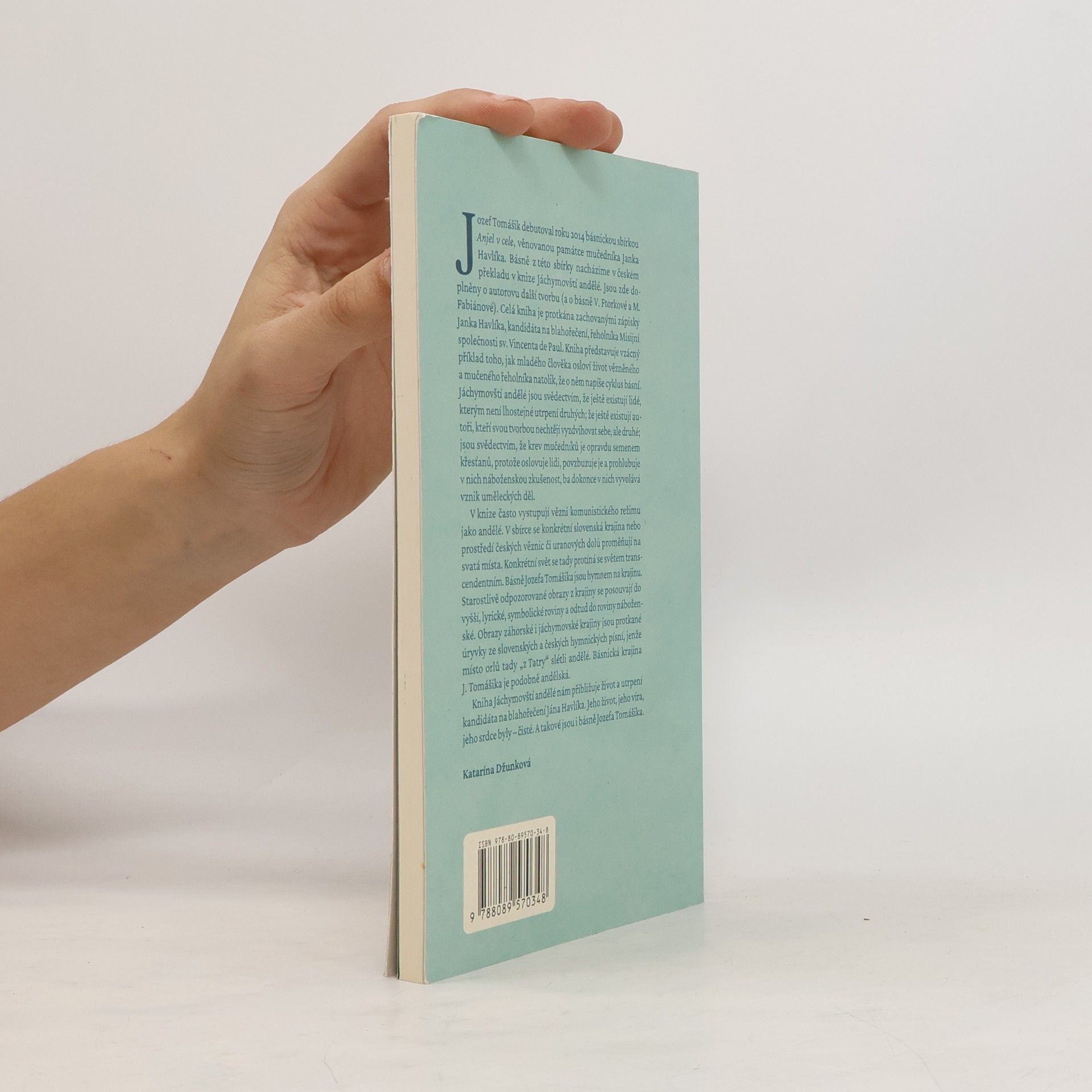 Jozef Tomášik debutoval roku 2014 básnickou sbírkou Anjel v cele, venovanou památce mučedníka Janka Havlíka. Básně z této sbírky nacházíme v českém překladu v knize Jáchymovští andělé. Jsou zde doplněny o autorovu další tvorbu (a o básně V. Ftorkové a M. Fabiánové). Celá kniha je protkána zachovanými zápisky Janka Havlíka, kandidáta na blahořečení, řeholníka Misijní společnosti sv. Vincenta de Paul. Kniha představuje vzácný příklad toho, jak mladého člověka osloví život vězněného a mučeného řeholníka natolik, že o něm napíše cyklus básní. Jáchymovští andělé jsou svědectvím, že ještě existují lidé, kterým není lhostejné utrpení druhých; že ještě existují autoři, kteří svou tvorbou nechtějí vyzdvihovat sebe, ale druhé; jsou svědectvím, že krev mučedníků je opravdu semenem křesťanů, protože oslovuje lidi, povzbuzuje je a prohlubuje v nich náboženskou zkušenost, ba dokonce v nich vyvolává vznik uměleckých děl. V knize často vystupují vězni komunistického režimu jako andělé. V sbírce se konkrétní slovenská krajina nebo prostředí českých věznic či uranových dolů proměňuji na svátá místa. Konkrétní svět se tady protíná se světem transcendentním. Básně Jozefa Tomášika jsou hymnem na krajinu. Starostlivě odpozorované obrazy z krajiny se posouvají do vyšší, lyrické, symbolické roviny a odtud do roviny náboženské. Obrazy záhorské i jáchymovské krajiny jsou protkané úryvky ze slovenských a českých hymnických písní, jenže místo orlů tady „z Tatry” slétli andělé. Básnická krajina J. Tomášika je podobně andělská. Kniha Jáchymovští andělé nám přibližuje život a utrpení kandidáta na blahořečení Jána Havlíka. Jeho život, jeho víra, jeho srdce byly- čisté. A takové jsou i básně Jozefa Tomášika. Katarína Džunková