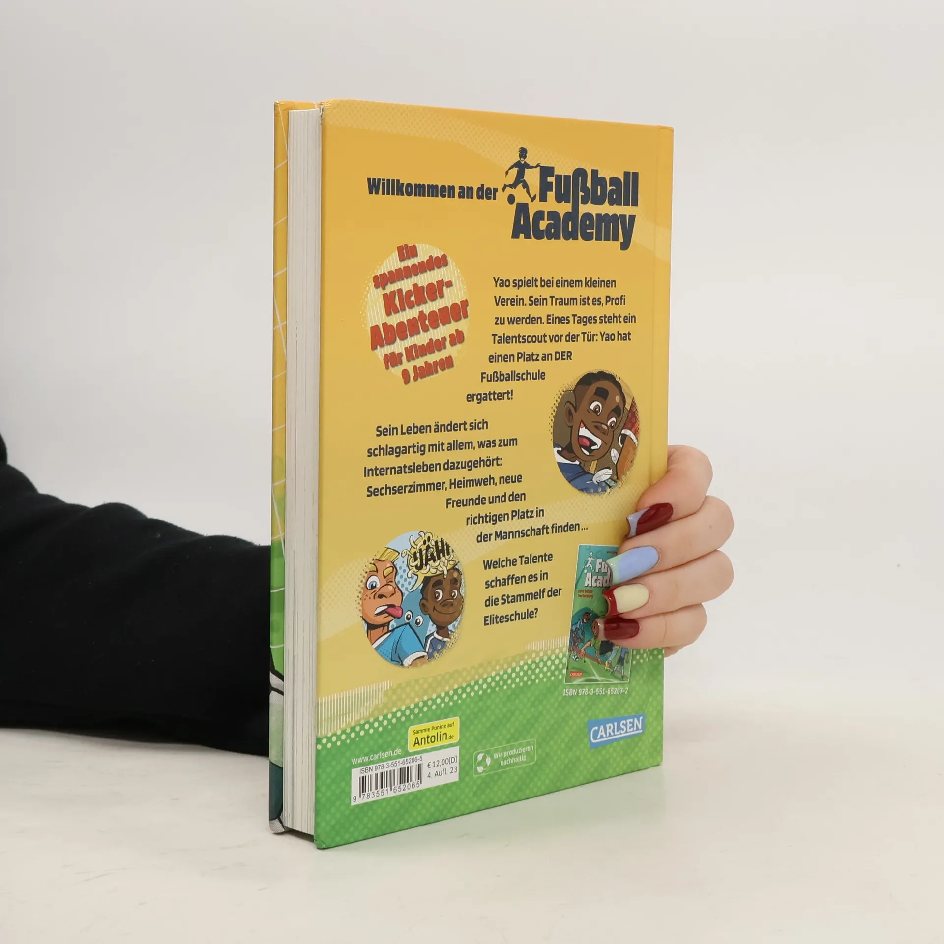 Das eingespielte Autorenteam hat bereits mit den Berliner Straßenkickern "Fußball-Haie" Erfolg. Nach der WM müssen wohl die Weltmeister in spe ran, und dafür wird eine Fußball-Academy gegründet, die Fußball und Schule gleichermaßen fördern will. Der Protagonist ist Yao, Sohn einer Deutschen und eines Ghanesen, der in einem kleinen Verein spielt und dort einem Talentscout auffällt. Und darf als einer der Ersten in das Fußballinternat einziehen. Doch statt Fußball geht es erstmal um Hausordnung und Unterrichtspläne. Langsam verliert der zurückhaltende Yao seine Scheu, findet Freunde und freut sich darauf, dass es endlich mit dem Training losgeht. antolin.