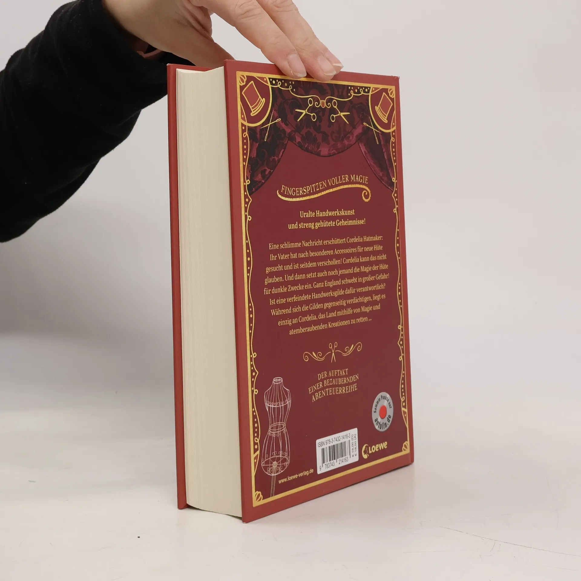 Der Auftakt einer wundervollen Abenteuerreihe Uralte Handwerkskunst und streng gehütete Geheimnisse – die magischen Gilden fertigen atemberaubende Kreationen! Fingerspitzen voller Magie Eine schlimme Nachricht erschüttert Cordelia Hatmaker: Ihr Vater hat nach besonderen Accessoires für neue Hüte gesucht und ist seitdem verschollen! Cordelia kann das nicht glauben. Und dann setzt auch noch jemand die Magie der Hüte für dunkle Zwecke ein. Ganz England schwebt in großer Gefahr! Ist eine der verfeindeten Handwerksgilden dafür verantwortlich? Während sich die Gilden gegenseitig verdächtigen, liegt es einzig an Cordelia, das Land mithilfe von Magie und atemberaubenden Kreationen zu retten … In dieser abenteuerlichen Kinderbuchreihe mit Mode und voller Magie nimmt eine mutige Heldin ihr Schicksal selbst in die Hand und gibt niemals auf. In einem bezauberndem Setting im historischen London wird das Thema Fashion mit dem beliebten Do-it-yourself -Trend und geheimnisvoller Handwerkskunst kombiniert – wunderschöner Lesestoff mit vielen hochwertigen Schwarz-Weiß-Illustrationen für Kinder ab 10 Jahren. Der Titel ist bei Antolin gelistet.