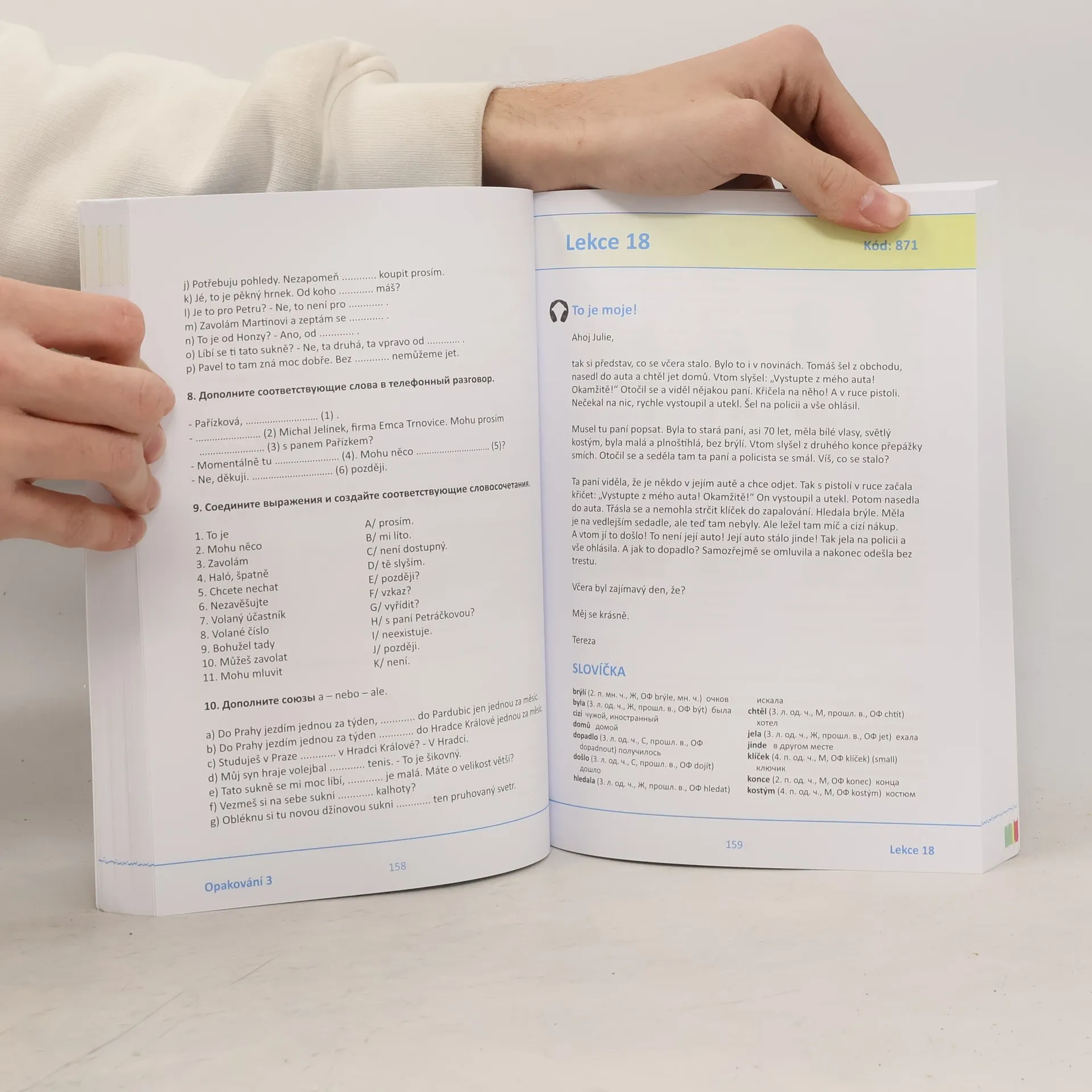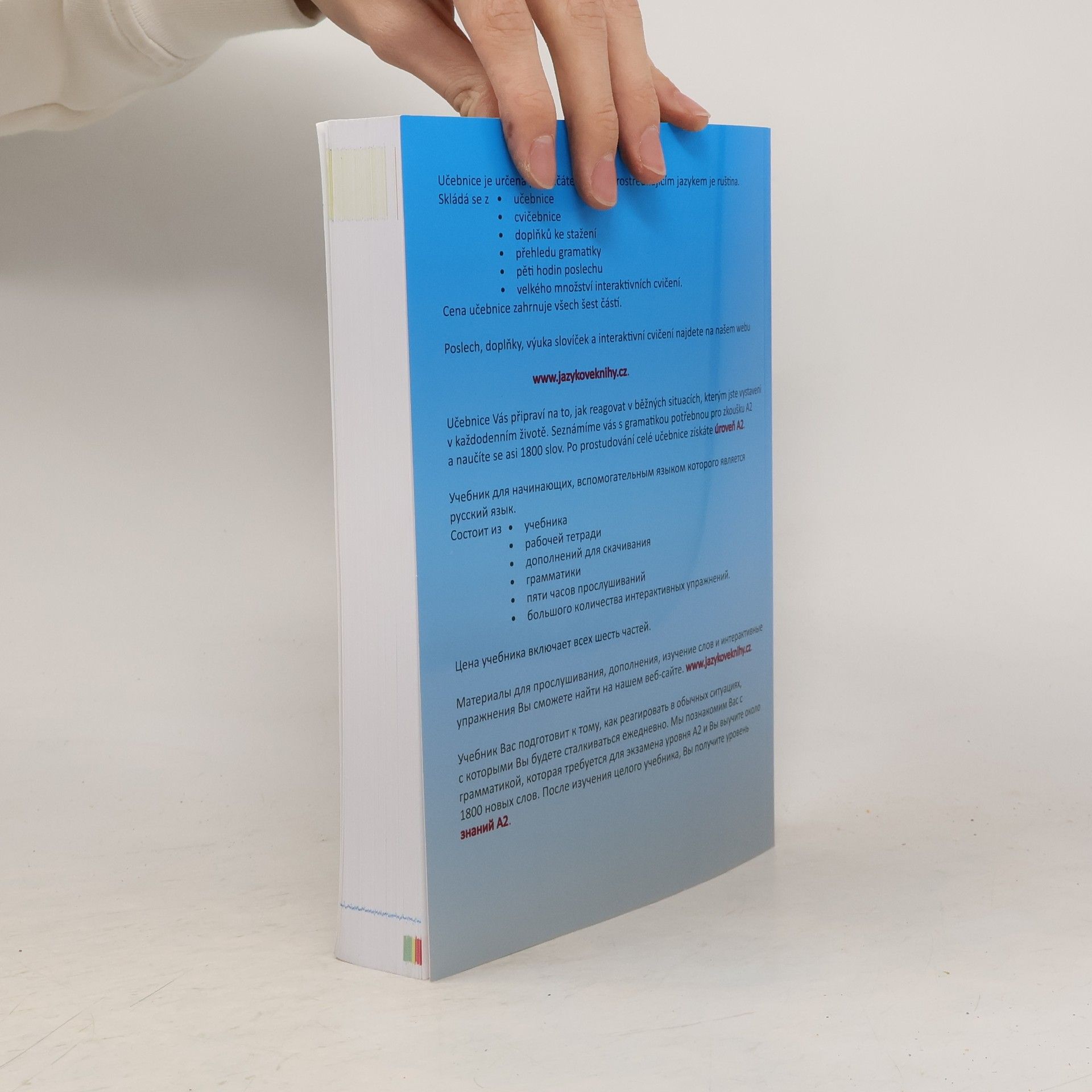 Potřebujete si přečíst inzerát, dojít si na úřad vyřídit povolení k pobytu, do agentury a vyplnit tam formulář? Nebo si chcete popovídat se spolupracovníky a rozumět nadřízenému? Na tyto situace cizince, který se chce učit češtinu, připravíme a vybavíme potřebnou slovní zásobou a gramatikou. Učebnice češtiny pro rusky mluvící dovede studenta češtiny v gramatice až na úroveň A2. Naučí ho konverzační témata důležitá pro cizince, kteří začínají bydlet v České republice. Učebnice poskytuje široký pomocný aparát. Skládá se z učebnice, cvičebnice, doplňků, přehledu gramatiky, poslechu a rozsáhlého souboru interaktivních cvičení. Všechny tyto materiály student získá při koupi kompletu učebnice a cvičebnice. Koupí tedy dvě a získá další čtyři.